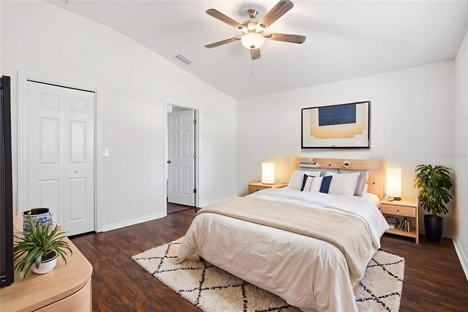 Comfortable single-story home located in the established South Fork community. The open floor plan offers easy everyday living with vaulted ceilings and a split-bedroom layout for added privacy. The primary bedroom features a private bath and walk-in closet, while additional bedrooms provide flexibility for guests or a home office. An attached two-car garage and outdoor space complete the home, with access to community amenities including a pool, playground, and park. Conveniently situated near major roadways, shopping, dining, and everyday conveniences.