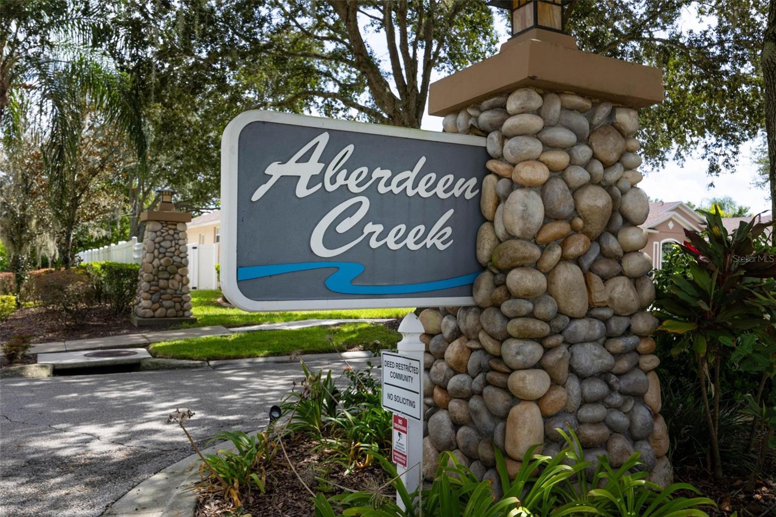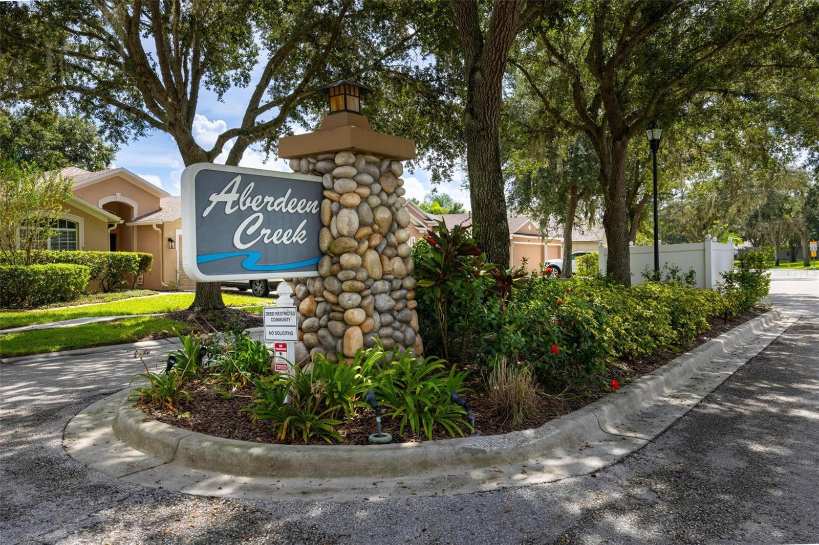 Welcome to Aberdeen Creek. This beautiful home is in a quaint Riverview community of only 51 homes centrally located within a mile of a public boat launch with access to the Alafia river and Tampa bay. Easy commute to I-75, Tampa and MacDill Air Force base, this 2003 Inland built home "Gardenia" model boast over 2450 sq. ft of living space with an additional 550 sq. ft added Florida room to enjoy. 4 bedrooms with 3 full baths located on just shy of a .25 of an acre brings an open floor plan with an in-law suite and full bath for that expanding family. Engineered wood floors, chair rail, 24 x 24 porcelain tile, crown molding, new light fixtures, new ceiling fans, outside paint allows this home to be move in ready for the new owners. Kitchen offers granite counter tops with coordinated back splash, 42" maple cabinets, stainless steel appliances and gas range with wide open area to family room for the ease of conversation and social gatherings. Backyard is fully fenced and offers mature landscaping with a well-maintained space for those back-yard BBQ’s. NO CDD community with a low annual HOA, this home will not last. YMCA is around the corner open 7:00AM-6:00 PM with everything you can imagine. You will love it! Large lot near shopping, restaurants and schools. Enjoy living in this quaint, desirable community.