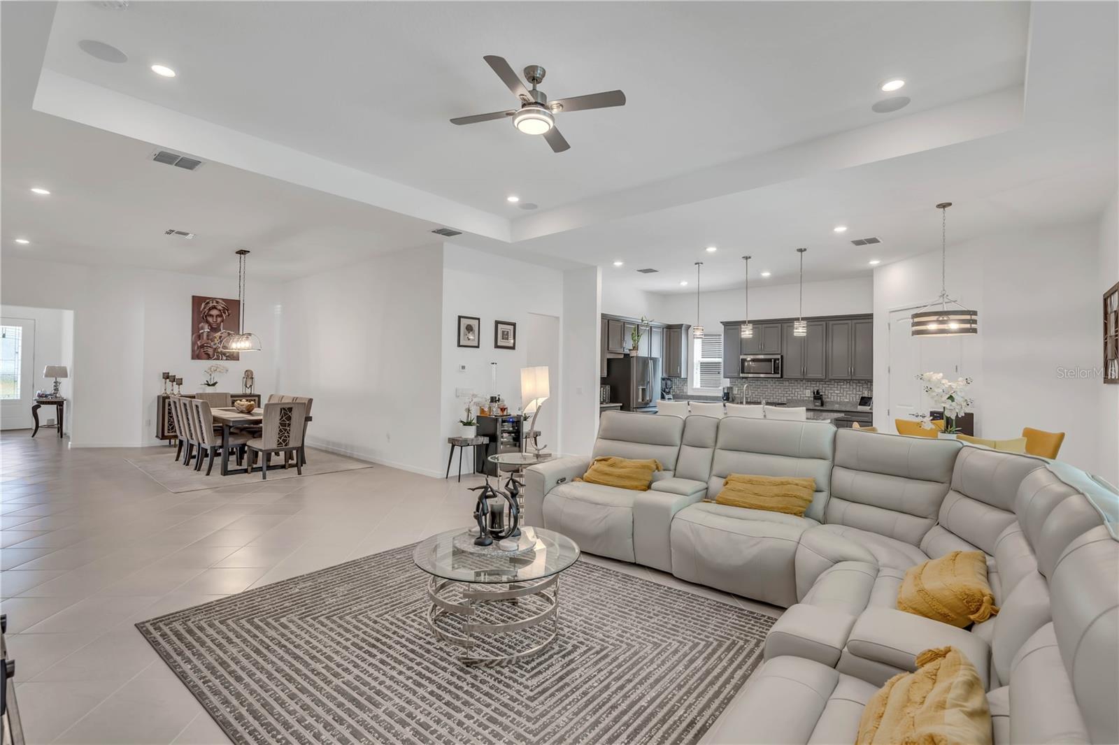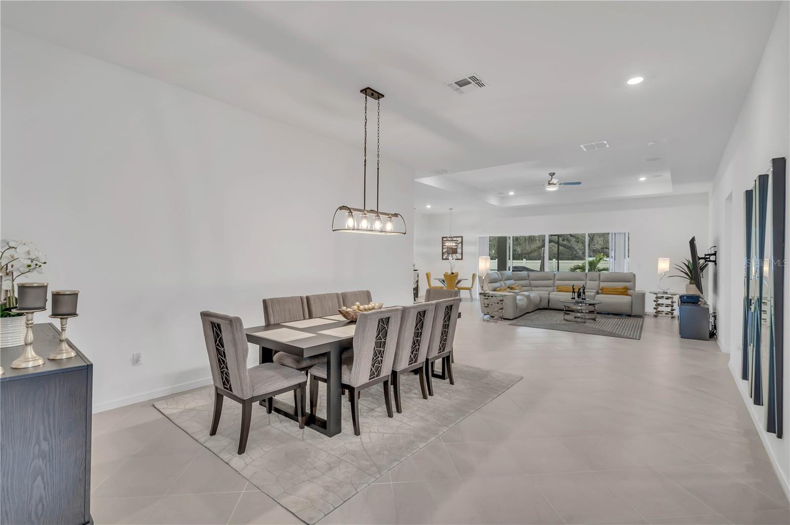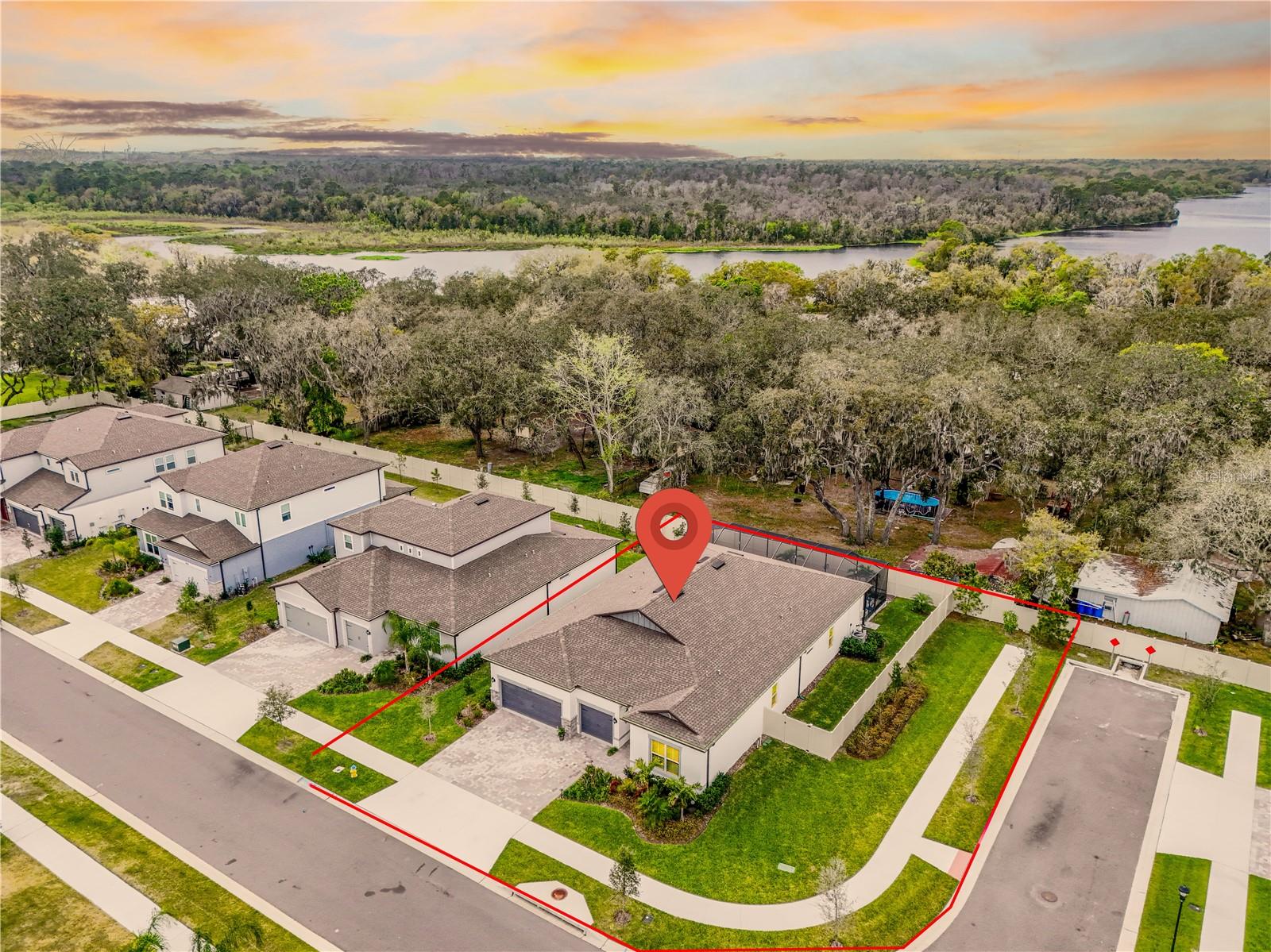 Welcome to your DREAM HOME! This stunning 3+ bedroom, 4-bathroom residence is situated on a corner lot in the beautiful Hawk Reserve Private Gated community, offering the perfect blend of luxury and tranquility. Step inside and experience the grandeur of soaring vaulted ceilings and a thoughtfully designed open floor plan, boasting 8 ft tall doors and entry ways. The heart of the home, the kitchen, boasts a gas stove top oven, with beautiful granite countertops, solid wood cabinets, up graded GE stainless steel appliances. The kitchen seamlessly flows into both a formal dining room and a cozy breakfast nook with a beautiful view of your backyard oasis. The kitchen/living room combo floor plan is ideal for entertaining, featuring a custom lighting creating a warm and inviting atmosphere. The spacious living room is bathed in natural light, thanks to a stunning 4-panel cascading sliding door. The 8 feet tall entryway makes this a true luxury open floor plan. The primary bedroom is a true retreat, complete with a his/hers walk-in closet featuring built-in shelving, a separate shower made for a king/queen. A sliding glass door leads from the primary bedroom to your own private entrance to the oversized covered Lanai/pool area. Step outside to the covered salt water pool lanai, complete with full separate 4th bathroom – perfect for al fresco dining and entertaining guests. Outside lanai makes living space add to over 3200 sq ft. Enjoy surround sound entertainment throughout this beautiful oasis all the way out to your private enclosed piece of heaven lanai. The property also includes a three-car attached garage. This property includes a fenced yard, surrounded by mature trees providing privacy. For peace of mind, you will find this home is equipped for propane tank hook-ups, dually ready with both electric and gas as well. Sellers have added every upgrade to make this truly your sanctuary. Window treatments, entire home floors have been sealed, custom Marlin tile work on gunite pool surface, gorgeous neutral pavers to boast beautifully custom lit lanai area. No expense has been spared. Enjoy the best of both worlds with the peaceful surroundings while still being in close proximity to Tampa and local beaches. Don't miss out on the opportunity to call this exceptional property HOME. Hawk's Reserve is a NEW Development. Schedule your private showing today!