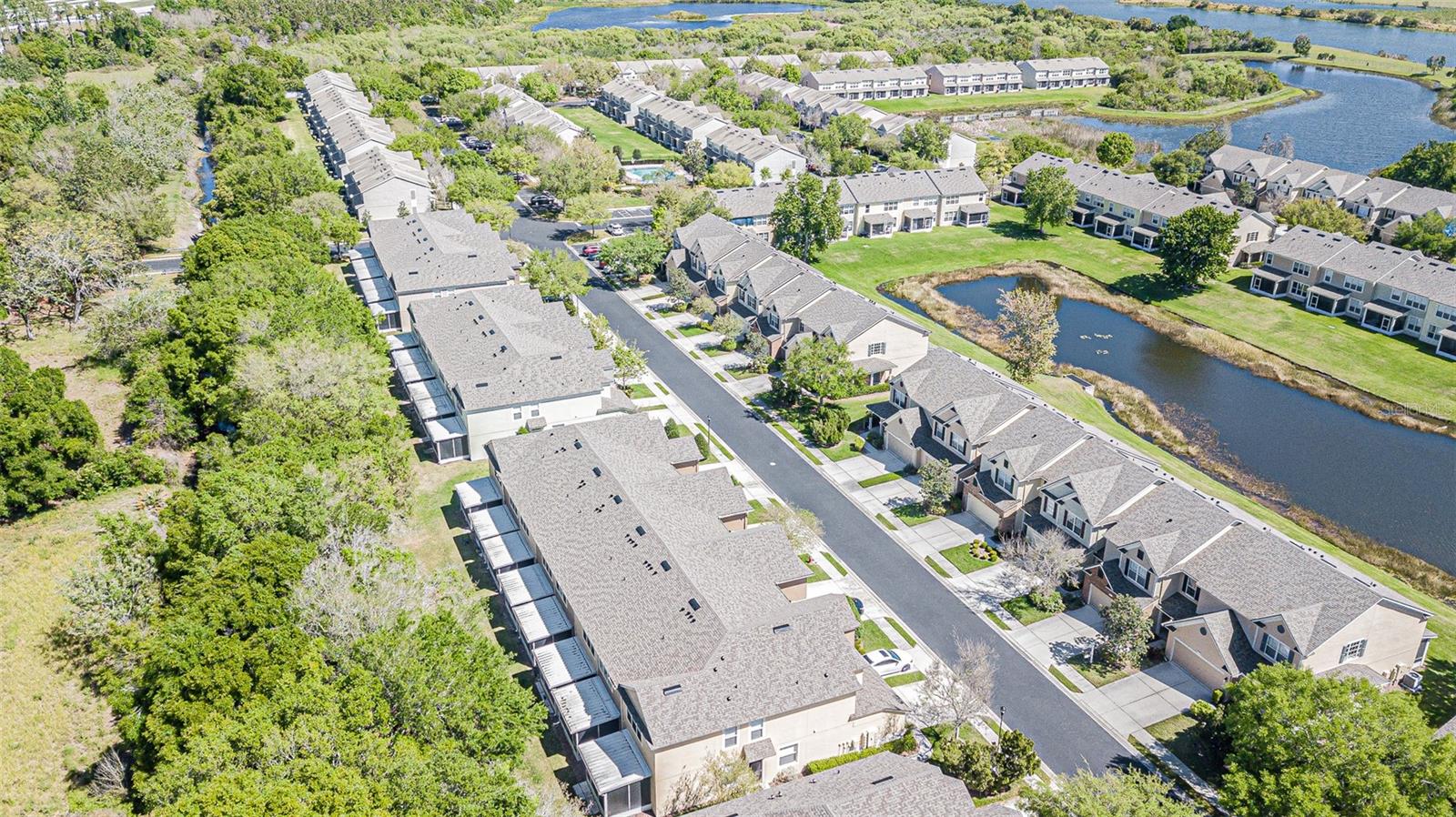 Large and comfortable 3 bedroom townhouse in gated community, with brand new roof! Thoughtfully remodeled kitchen with superior craftsmanship. Gleaming quartz countertops adorn abundant white cabinetry with soft close feature, and are a perfect compliment to the newer stainless steel appliances. With a deep undermount sink, large closet pantry, eating space in the kitchen, and views straight out to the rear conservation area; this kitchen will be a chef's delight and certainly a frequent gathering space in the home. Large living room was originally designed to be a dining / living room combo, and can easily be utilized that way. The original dining light fixture junction box has been professionally capped off, and is ready for you to hang a new fixture if desired. Current owner has chosen to use the eating space in the kitchen and expand the living room. Triple sliders lead to fantastic screened lanai with tile floor, privacy screening on the side, and peaceful views of the wooded conservation area. Downstairs half bath is perfect for guests. Extended length single car garage provides ample space for even an SUV. Upstairs you will find 3 large bedrooms and 2 bathrooms, along with the laundry closet featuring an included Bosch dryer and Whirlpool Duet washer. The primary bedroom faces the rear of the building and includes a very large walk-in closet, and ensuite bath with dual vanities, big soaking tub/shower combo featuring magnetic handheld shower head, and separate water closet. The other two spacious bedrooms are at the opposite end of the hall, facing the front of the building, and share the spacious secondary bath with tub/shower combo. High efficiency air conditioning system is just 8 years old. Valhalla is a well kept gated community in a prime commuter location. Five minute drive gets you to multiple locations for shopping, dining, convenience/gas, and interstate. Public transportation nearby. This carefully planned community sits 38 feet above sea level and is encompassed by a series of connected drainage ponds that have gates to control water levels. This one sits high and dry! Reasonable HOA fee includes gate, cable, internet, trash, sewer, water, pool, amenities, building insurance and exterior maintenance including roof.