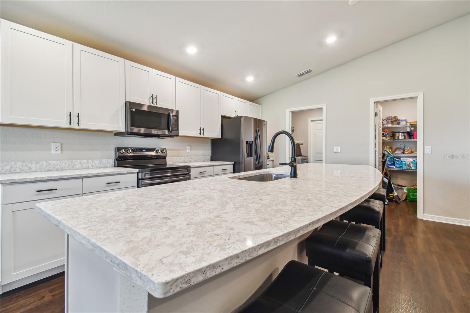 Stunning 4/2 single family home in Ridgewood Souith, with an abundance of upgrades and a wide open floor plan! Situated on a premium lot with upgraded elevation in the back yard. This home also has a beautiful tranquil view of the pond. The inside boasts an array of upgrades designed for modern living and guaranteed to indulge and impress! Revel in the joy of cooking with soft-close wood cabinets and drawers in the kitchen and a huge island with shimmering quartz countertops, complemented by state-of-the-art stainless-steel appliances. The kitchen’s sleek design invite both casual family meals and festive gatherings. The bathrooms are also upgraded with quartz counter, and soft close cabinets and drawers. Premium Premium wood-look vinyl is throughout all main areas throughout, upgraded carpet and pads in the bedrooms. The garage has its own upgrades with the added 4 ft extension for extra space and a beautiful finish on the garage floor and a garage keypad on the outside of the garage. The back patio is already pre-wired for a hot tub should ever desire one. This home also features a pest control system the company can service from an outside port to spray solution into the walls, without ever having to come inside. Minimize future maintenance concerns as this home is less than a year old and comes with 10 full years of structural warranty for load bearing components, and two full years of systems surety coverage against defects in wiring, piping, and ductwork in electrical plumbing, heating, cooling, ventilating and mechanical systems and protection from the nation’s leading home warranty company. Located minutes from major roadways including US Highway 301 and I-75, close to lots of shopping and restaurants! Your new home puts you at the center of Riverview’s bustling activity hubs yet provides a tranquil retreat from the urban rush. Seize the opportunity to claim this masterfully constructed home where every inch radiates modern comfort. Perfectly located, this single-family home is the epitome of convenience and style in one of Riverview’s most desirable areas. Ridgewood South boasts an array of amenities that include a community pool, cubana and playground!