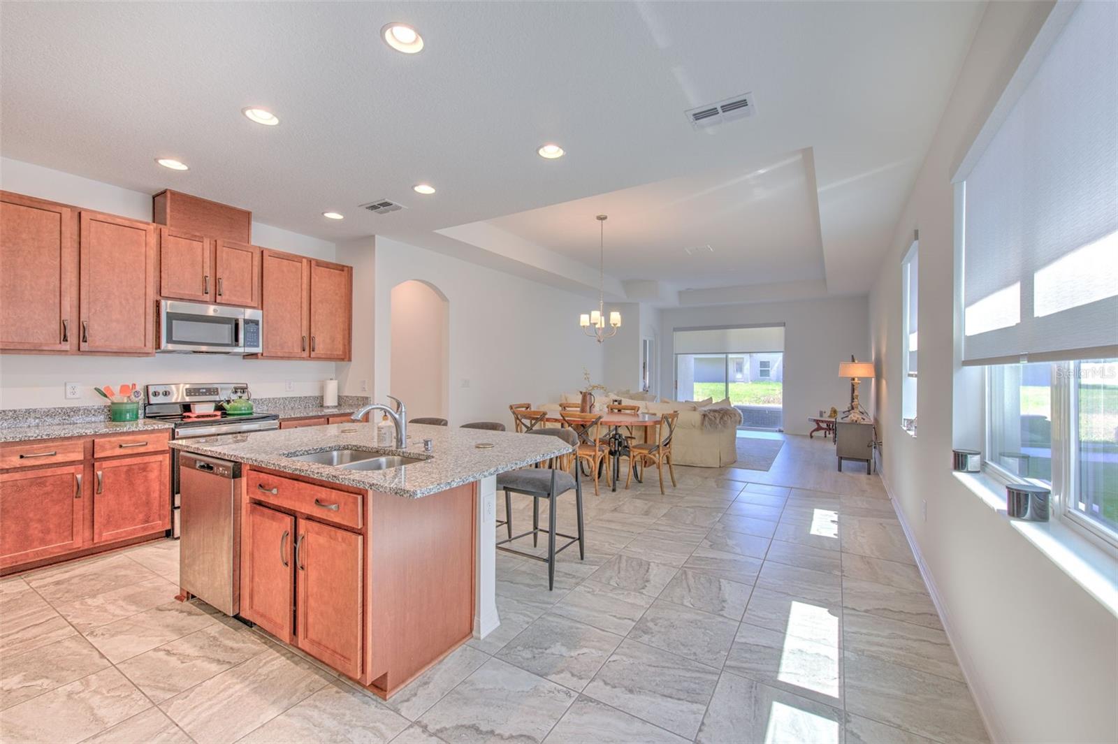 Welcome to your dream home in Belmond Reserve, Riverview, FL! This 4-bed, 2-bath sanctuary combines modern elegance with spacious comfort. The open floorplan, illuminated by recessed lighting and high ceilings, creates an airy sophistication. Enjoy a versatile bonus room/den and practical vinyl flooring. The expansive kitchen features stainless steel appliances, granite countertops, and a large island, perfect for entertaining. With a split bedroom layout, privacy and convenience are ensured. The king-sized Master Retreat offers a luxurious bath with double sink vanity and garden tub. Additional features include a 2-car garage and custom blinds. Belmond Reserve boasts amenities like a pool, clubhouse, tennis courts, and playground. Conveniently located near schools, shopping, dining, and highways. Don't miss out – schedule your tour today!