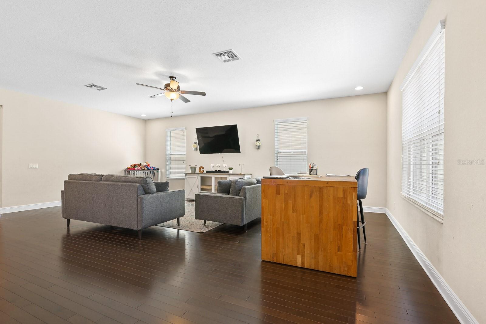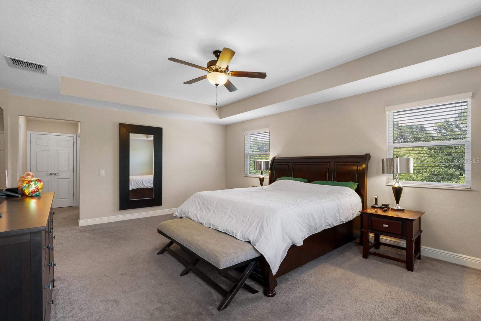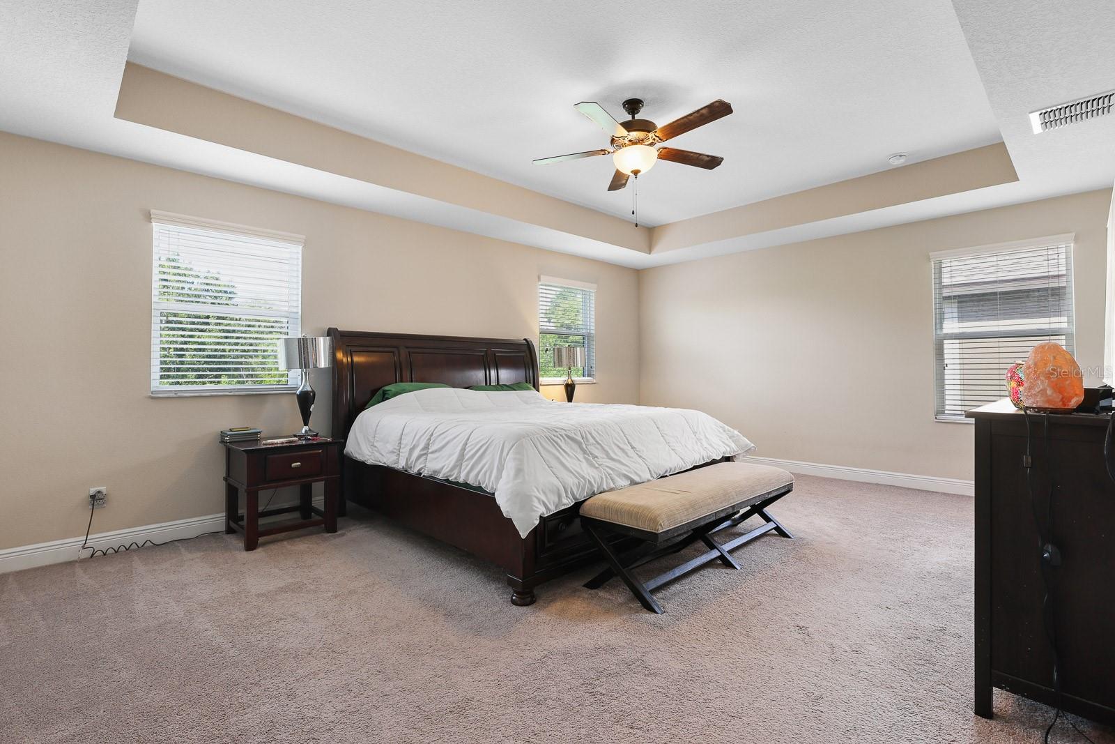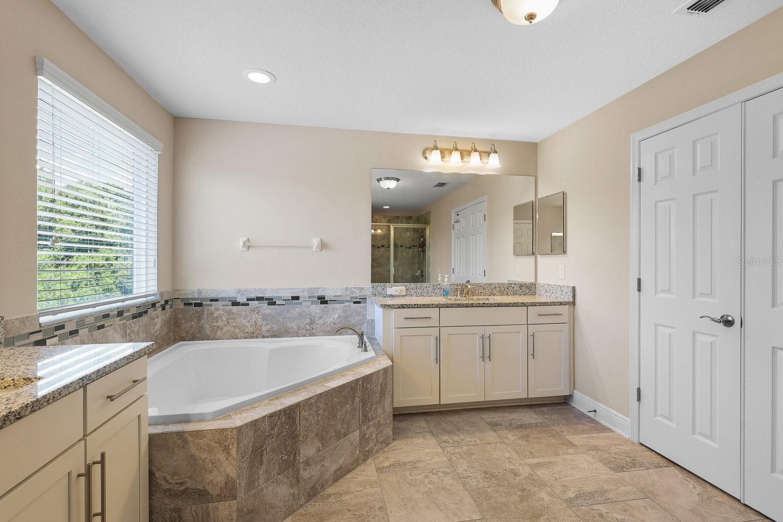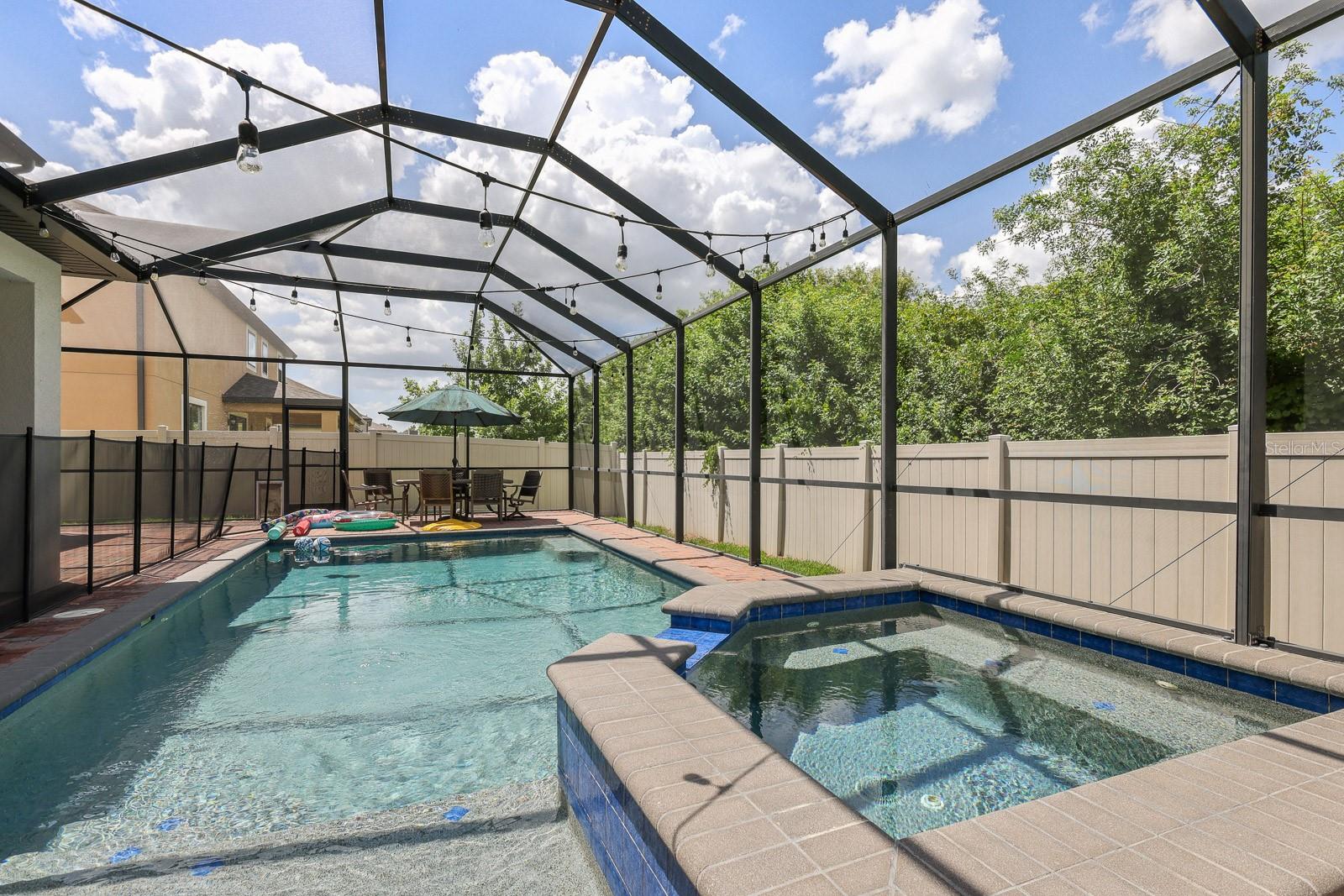 Welcome to this exquisitely maintained home nestled in The Estates at South Cove, an exclusive gated community with 47 executive homes. Step into luxury with this meticulously crafted M/I home, the Grandshore II model. This home boasts 5 bedrooms and 4.5 bathrooms with a media room, bonus room, in-law suite and a den. Upon entering the home, you are greeted by a wide entry way with an adjacent dining room and den. The den has been upgraded with a beautifully designed barn door for privacy. As you make your way through the first floor, you will be in awe of the open floor concept and size of the great room and kitchen which make for a wonderful gathering space for family and friends. With large cabinets and an extended butler's pantry, the kitchen is a culinary sanctuary with a double oven, large island, expansive counterspace and ample storage. As an added incentive, adjacent to the kitchen is a bedroom that can be used as an in-law suite with a private bathroom. This bedroom is the only bedroom on the first floor and offers ample privacy for your overnight visitors. On the second floor, you will find an oversized bonus room, wet bar with wine cooler, a large laundry room plus a separate media/theater room that is perfect for family movie nights or gaming with friends. The second floor is also home to four bedrooms, and three bathrooms, including the master bedroom and a bedroom with a private, en suite bathroom. Speaking of master bedrooms, unwind after a long day in your tranquil owner's retreat. The spacious master suite is a haven with two walk in closets, double vanities, beautifully tiled shower and large tub. The backyard is an oasis with a covered patio plus a heated pool and spa. The backyard backs up to a conservation area for additional privacy. Imagine hosting unforgettable evenings poolside in your backyard escape. This home also features the M/I 15 year warranty that transfers to new owner. Call today for your showing! You don't want to miss this.