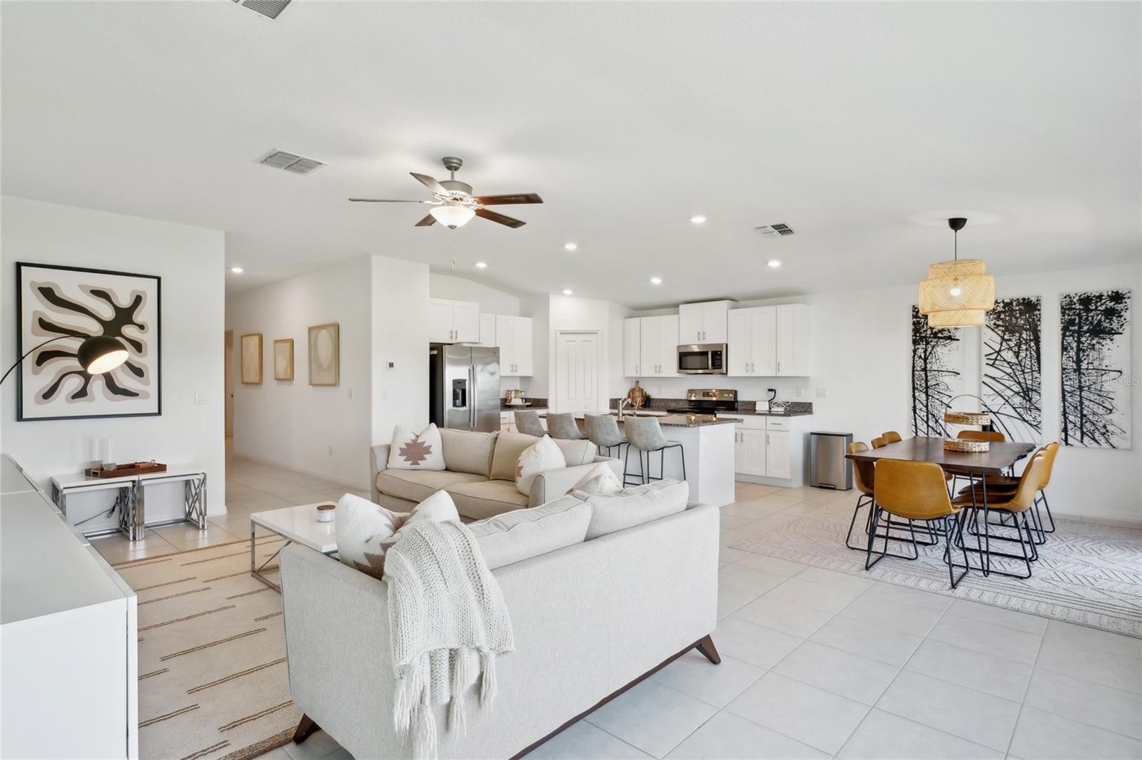 Modern luxury in the heart of Riverview! Welcome to the Lennar Hartford model that is just over ONE YEAR NEW! Nestled in the highly sought-after Triple Creek community, this charming 4-bedroom, 2-bath boasts contemporary elegance as well as comfort. As you enter, you are immediately greeted by a gorgeous pond view. The split floor plan features three generously sized bedrooms, each offering ample closet space, an upgraded bathroom and tons of windows all at the front of the home. The expansive open concept family room, dining room and kitchen area is adorned with even more oversized windows, flooding the entire space with natural light. The kitchen is a chef's dream, with new appliances, granite countertops, center island, and large pantry. The primary suite is found at the back of the property and offers a blend of style and functionality. It is complete with a huge walk-in closet, oversized shower, granite countertops and dual vanities. Additionally, you'll find serene views of the backyard and pond, making the space a true sanctuary. The community is well known for its resort style amenities that "reflect your passion for the active life". Residents can enjoy a playground, fitness center, pools, athletic fields and sports courts. The new lucky owner of this home has just a short walk along the sidewalk (just one house down) to the BRAND NEW community center and pool across the water! No need to wait to build, this one is move-in ready and waiting for YOU! Book your showing today & come experience the epitome of luxury living in Triple Creek.