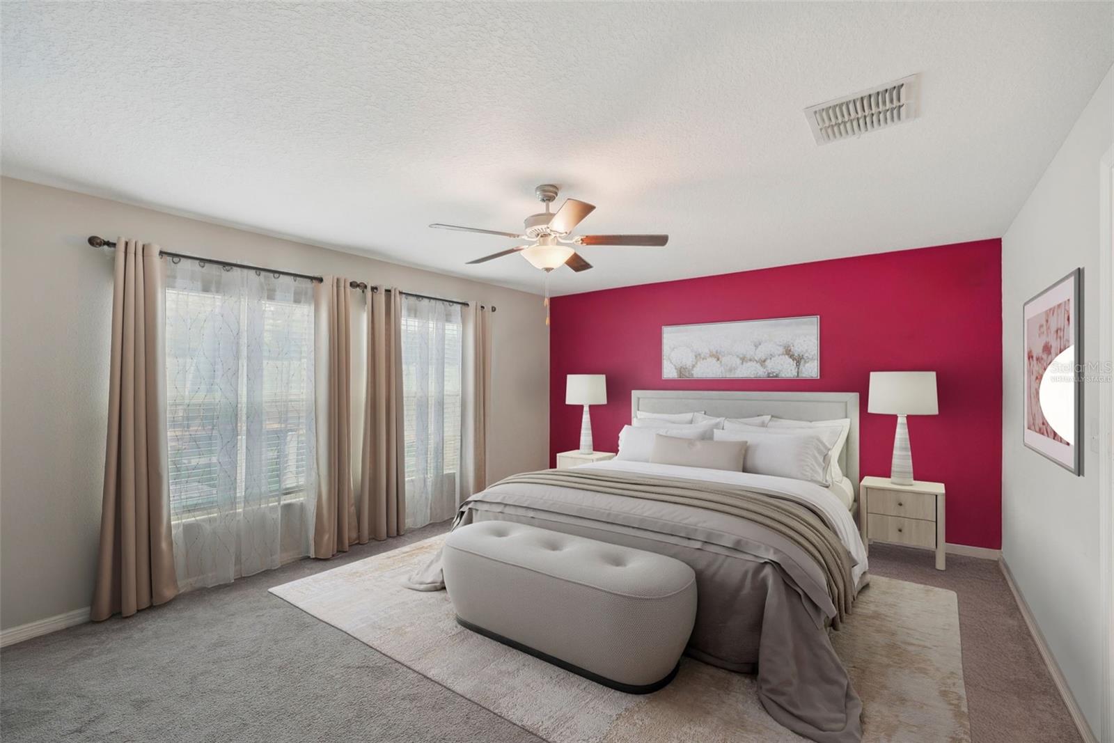 One or more photo(s) has been virtually staged. SOLAR PANELS PAID AT CLOSING with appropriate offer. Step into an oasis of modern luxury with this meticulously upgraded residence. Embraced by new palm trees swaying in the breeze, the exterior welcomes you with a tasteful fence enclosing a refreshing pool area, complete with all equipment and a robotic pool vacuum for effortless maintenance. Inside, a grand 24ft wide sliding door beckons you into an expansive living space where natural light cascades across a newly organized pantry, enhancing daily convenience. The heart of the home boasts a revitalized primary bathroom showcasing a sleek new tub and shower, complemented by an upgraded closet in the primary bedroom. This versatile layout includes a flex room currently utilized as a home office but can effortlessly transform into a fifth bedroom to suit evolving needs. With solar panels ensuring eco-friendly energy savings and a water softener for optimal comfort, every detail has been carefully considered for modern living. Whether you're relaxing by the poolside, enjoying the seamless indoor-outdoor flow, or preparing gourmet meals in the updated kitchen, this home promises an unparalleled lifestyle. Discover a blend of elegance and functionality where every corner reflects thoughtful design and quality craftsmanship.
