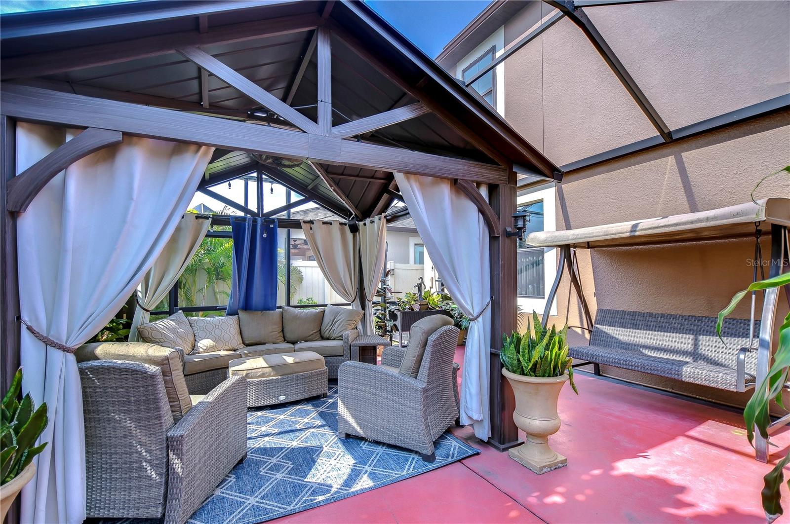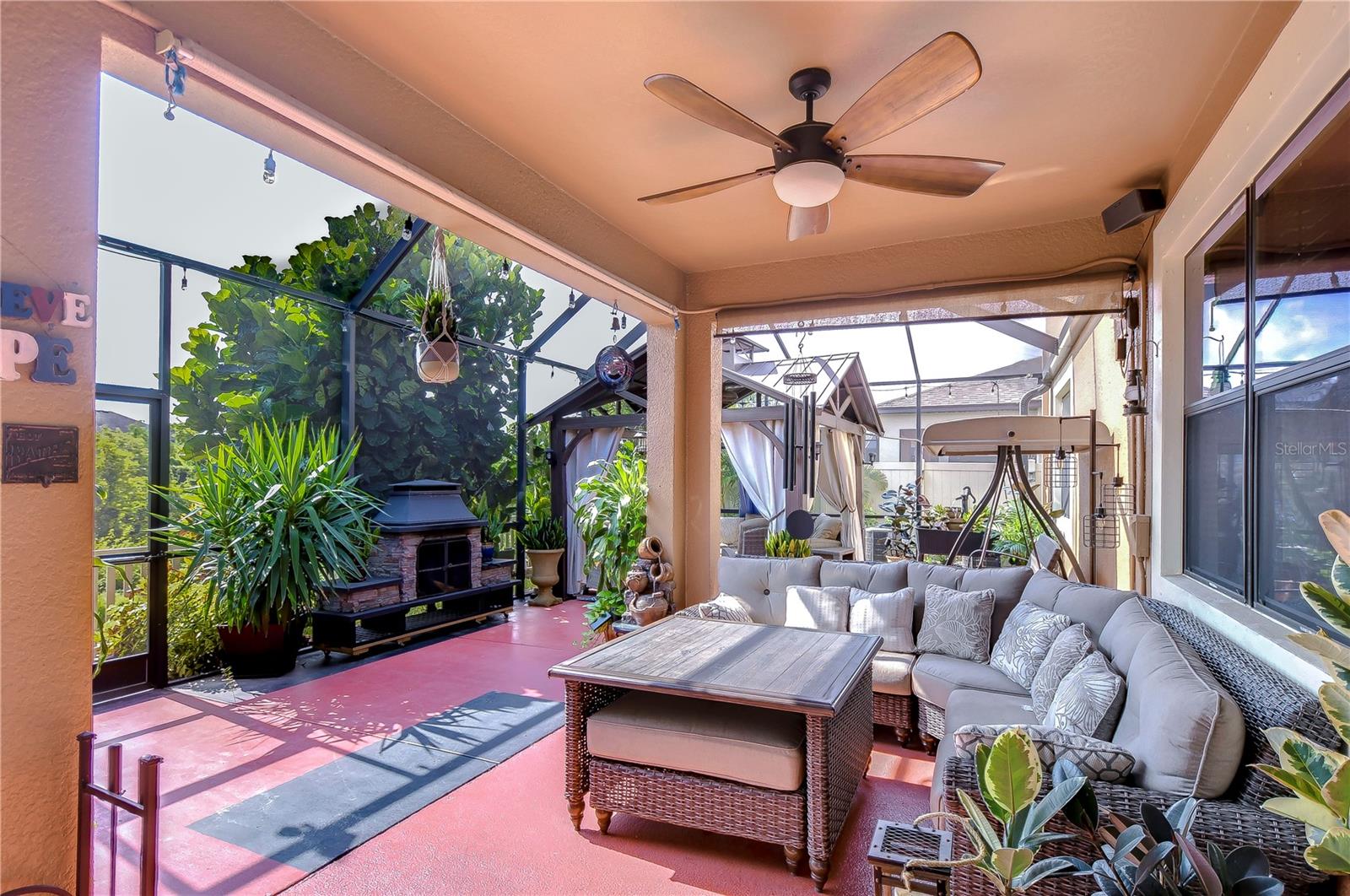 One or more photo(s) has been virtually staged. PRICE REDUCTION!!! Step into this meticulously maintained 2-story home that offers a gorgeous backyard view, manicured landscaping and pleasing curb appeal in Riverview FL. This 4-bedroom, 4-bathroom, 3 car garage home boasts plenty of room to entertain with a first-floor open floorplan and a generous second-floor family room. The flooring in the living room and kitchen is a beautiful ceramic tile wood look. This home has solar panels that have shown to decrease monthly electricity needs and are fully owned, not leased. The covered patio area is a must see with several cozy places to lounge and enjoy the quiet environment with a morning cup of coffee. There is conservation in the back so there will not be any neighbors on 2 sides of this home. *All furniture on the second floor, including the pool table and accessories, bar and accessories (not alcohol), television, and fireplace convey with the sale. All items (not including the plants) on the patio can convey at buyer's request. Situated near amenities and attractions, and it's located minutes from the new Advent Health Riverview Hospital opening in October. This home won't last long! It truly is a must see.