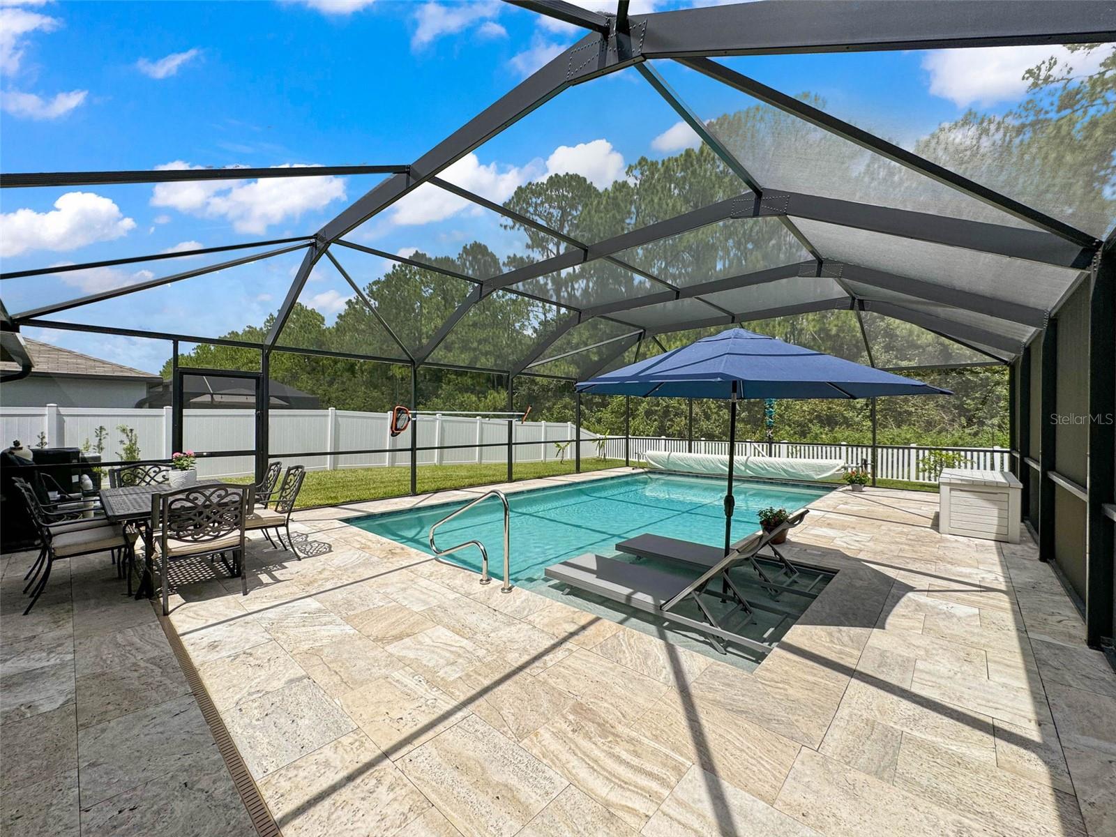 BEST POOL HOME FOR SALE IN SOUTHFORK! *Recent Price Adjustment *Come see this exceptional one-story POOL home that boasts a bright OPEN FLOOR PLAN with 4 bedrooms, an office/FLEX space, 2 full baths, 3 car garage and a gorgeous saltwater, solar heated pool that overlooks peaceful CONSERVATION, plus the home is fully fenced! Inside this beautiful home you'll find a spacious kitchen featuring GRANITE countertops, white cabinetry, Samsung refrigerator, KitchenAid dishwasher and Whirlpool microwave. A large walk-in pantry is also a great feature! No storage issues here! The backyard is also a must see, with an expansive 28'x15.5' ft SOLAR HEATED saltwater pool, relaxing SUNSHELF, an electronic PENTAIR pool controller (Temp/Chlorine/Lights) and an automatic SUNSETTER 25x11 AWNING to provide shade when needed. The pool is also equipped with both a heat pump and solar heating, with the solar system completely paid off! Additionally, the fully paid for Solar panels are a 10 KW system, (TECO certified), features 25 panels, 25 inverters and are included with the sale, making your investment in this home, work for you! Also, your outdoor retreat includes exquisite, newly sealed TRAVERTINE DECK in the pool area, a completely fenced 50x60 yard with (3) GATES, backing to conservation with no future building. Additional features include a WATER SOFTENER/conditioner. On one side of the home, an awesome 11.5'x25' pavered side yard was added to accommodate many projects, gardening or whatever you may want to do! The larger lot also offers a big side yard on the other side for other needs to add to your gorgeous backyard! All improvements were properly permitted by County and HOA. Overall great location close to shopping, dining, schools, hospitals/medical facilities and major highways and venues. If you are looking for a new home FOR 2025, this charming home was made for you! **SELLER MOTIVATED**