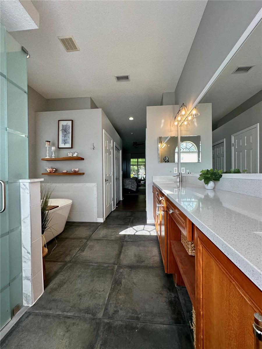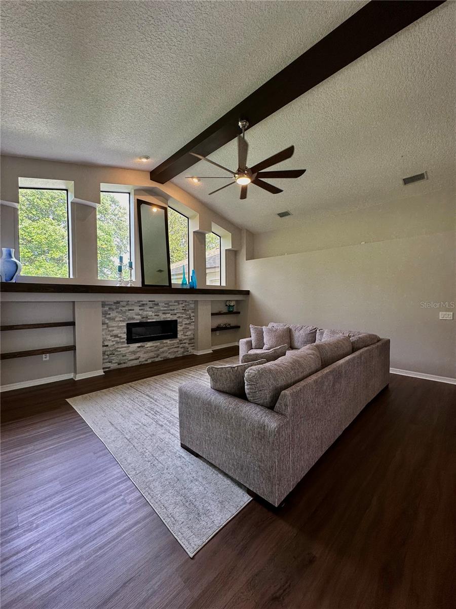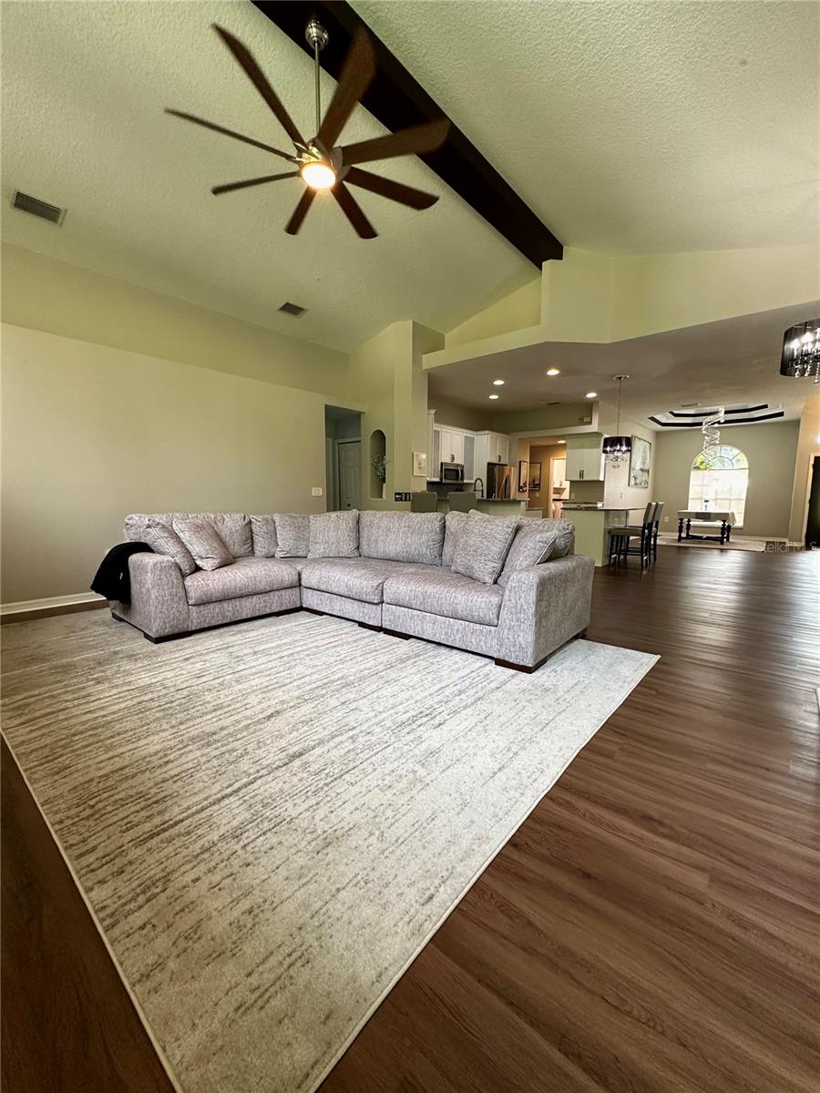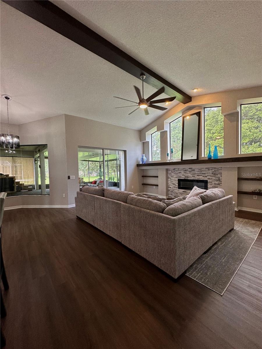 Here's your opportunity to own in the beautiful, gated subdivision of Creekside, a unique community in Riverview! This gorgeous home boasts nearly 3200 sq ft of living space with 4 bedrooms, 3 bathrooms, a 3-car garage, plus A DEN AND A BONUS ROOM and is situated on over a 1/2-acre lot! As soon as you enter through the double doors, your view is amazing. You will be welcomed to the view of the massive living area with an abundance of natural light and wood laminate floors throughout the main living area and primary bedroom. The formal dining room is on the right with lovely tray ceilings and a chandelier. To the right and through glass French doors is a decent sized office or den, or playroom. The kitchen has all the upgrades including wood cabinets, stainless steel appliances, under the cupboard lighting, backsplash, beautiful granite countertops, two pantries, a kitchen island, a breakfast bar, and an eat-in area with large windows overlooking the enormous screened-in lanai. The family room is very elegant with a built-in stone electric fireplace with built-in shelves and beautiful windows above the fireplace for plenty of natural light. Sliding glass doors lead from the living room to the huge screened-in lanai. The lanai adds tremendous outdoor living space, completely screened and covered for a pleasant atmosphere and temperature. There is a television hook up on the lanai to watch your favorite shows outdoors. The primary bedroom has been updated with quartz countertops and lighting, a standalone garden tub, a separate shower and dual vanities. Sliders lead from the primary bedroom to the lanai. On the opposite side of the home, you will find bedrooms 2 and 3 separated by a nicely designed Jack and Jill bathroom with the vanity area separate from the shower area. Bedroom 4 and bathroom 3 are located further down the hall. All bathrooms have updated quartz countertops and upgraded fixtures. At the end of the hall is a generous sized bonus room, media room, or playroom with sliding glass doors that lead to the outside of the home. The laundry room is located indoors and has an abundance of cabinets and counter space, a large stainless-steel sink, and an updated Whirlpool washer and dryer. The oversized 3-car garage is off of the laundry room and has a window and door. In all, there are 4 sets of sliding & pocketing glass doors opening the living area to the large lanai which frames the backyard - perfect spot for a new swimming pool! This property sits on a little more than 1/2 acre. Large front, back and side yard. There is room to breathe between neighbors. This gated subdivision only has 108 homes with reasonable HOA dues and NO CDD fees. BIG TICKET ITEMS ALL REPLACED!! ROOF NOVEMBER 2023, A/C 2020, HOT WATER TANK 2019, RANGE 2023, REFRIGERATOR BRAND NEW, DISHWASHER 2024. Zoned for Newsome High School! Creekside community features a playground, pond, and nature trail. Conveniently located near shops, restaurants, top-rated schools, and easy access to US 301 and Interstate 75. Don't miss this incredible opportunity!