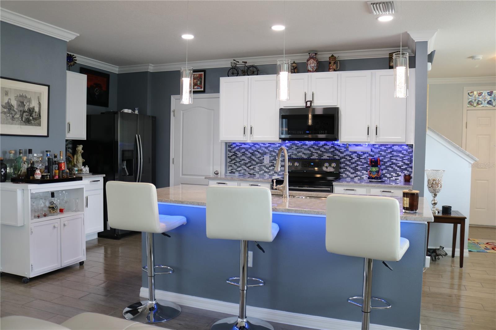 POOL HOME. Don't miss out on this beautiful gem of a home in the community of The Sanctuary with NO CDD and LOW HOA. This corner lot home featuring 2328 sq ft. of meticulously maintained luxury finishes and comfortable living space. The interior boasts 4 bedrooms, 2.5 bathrooms, open living room, and 2nd floor loft with plenty of natural light, kitchen with wood cabinets, LED lights, undermounted sink, and granite counter tops with a breakfast bar. This home also features a fabulous outdoor living space including screened in lanai with a swimming pool ideal for entertaining or relaxation. Crown molding with a beautiful ceramic tile floor increases the brightness of this open floor concept. Follow the wooden steps up to the 2nd floor where you will find the 3 spacious bedrooms and the master bedroom, all with updated bathrooms, vessel bowl sinks on granite counter-tops for the master bathroom along with an extraordinary walk-in closet in the master bedroom. All windows feature granite frames on the bottom sill giving a subtle touch of elegance to this magnificent home. Just as wonderful as the interior, the location is surrounded by many supermarkets, stores, malls, and restaurants. You are also more or less than 30min to the Tampa airport, MacDill Air Force Base, and just 20min to Southshore Bay Lagoon and Apollo beach
