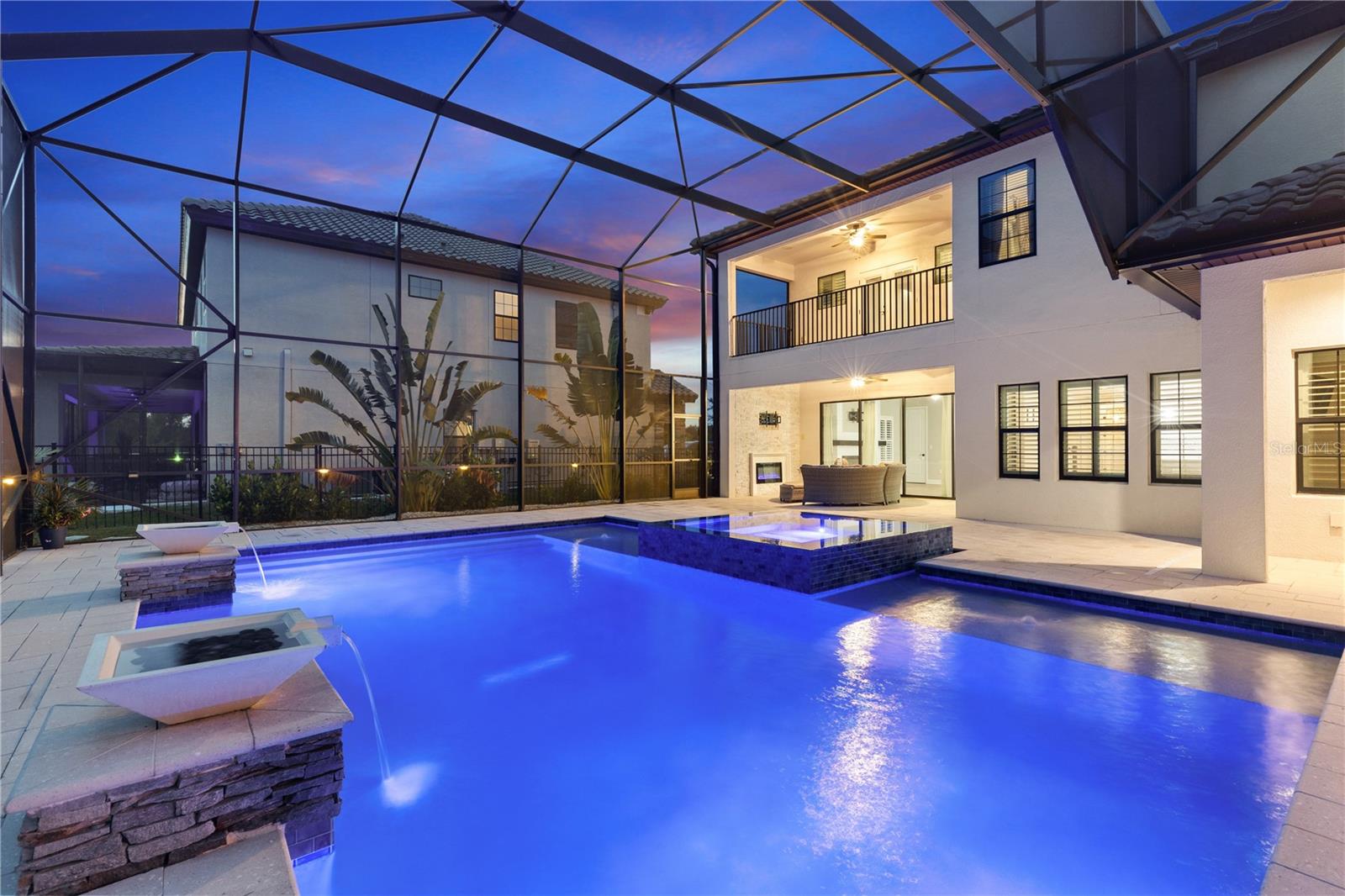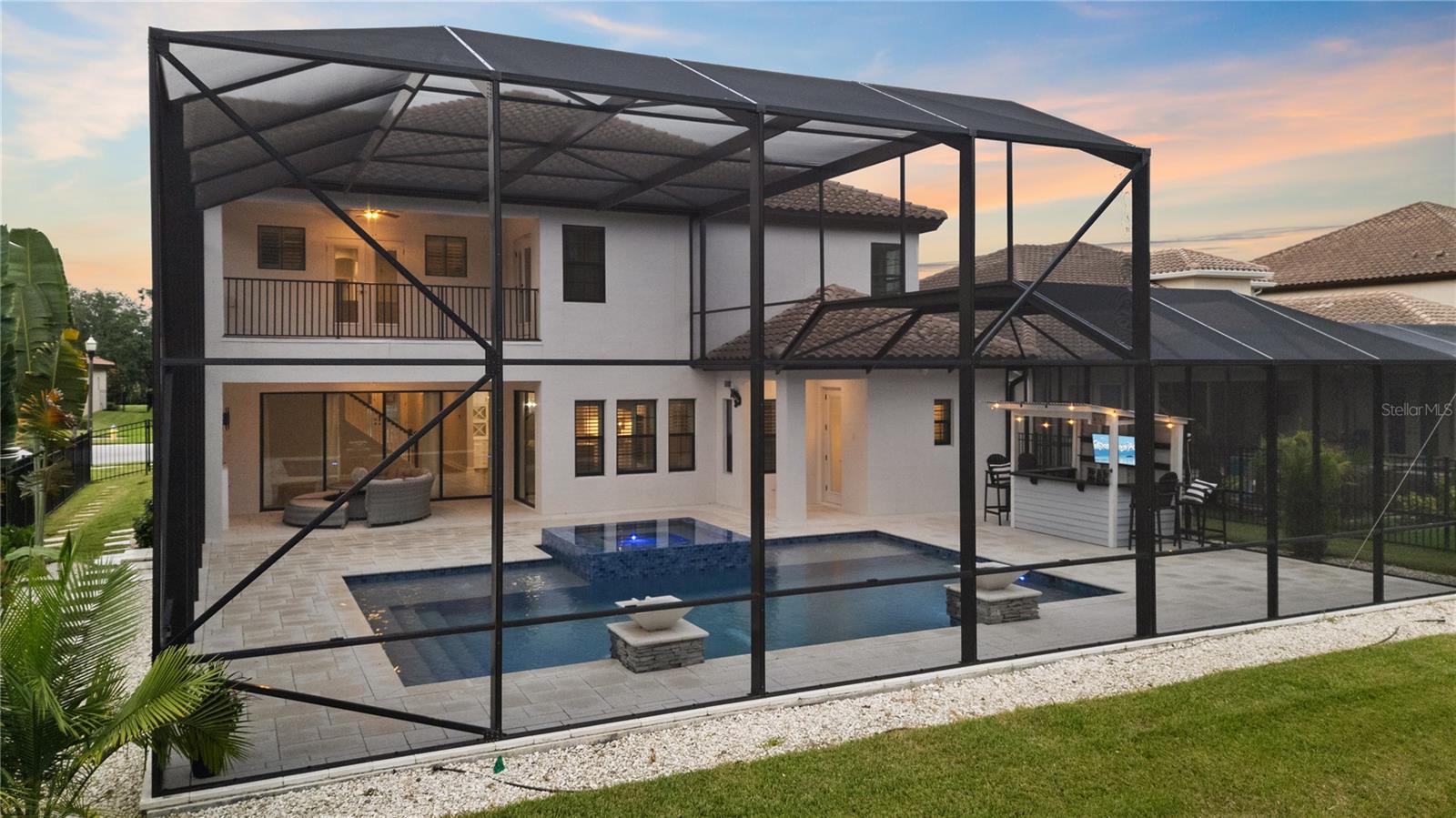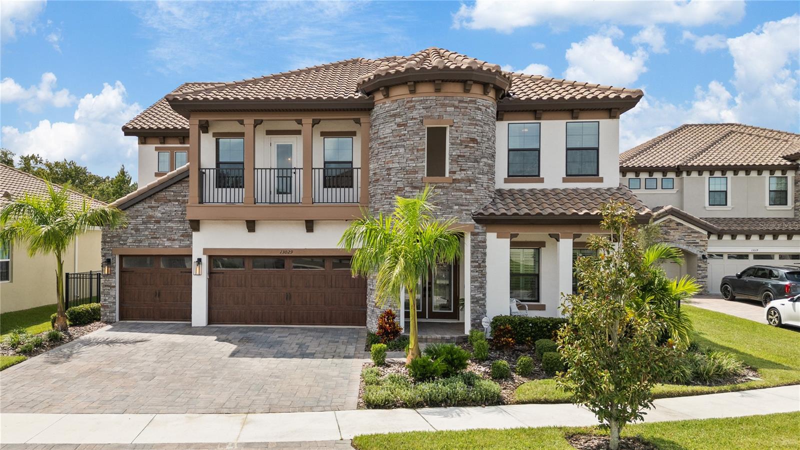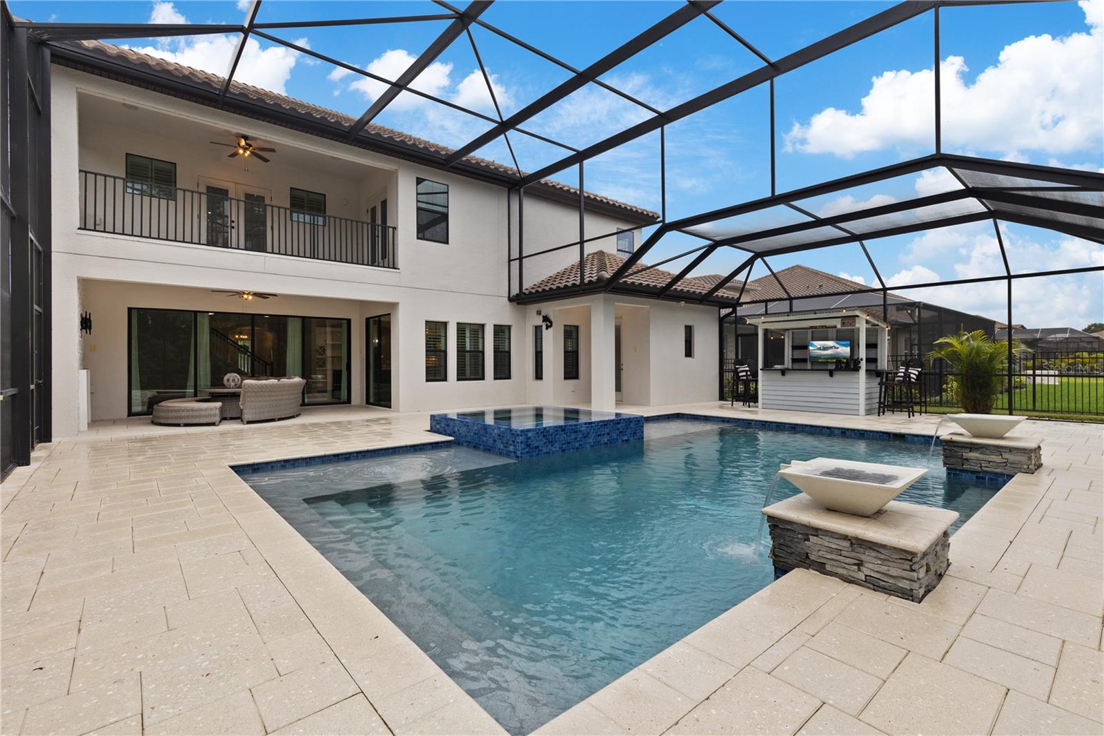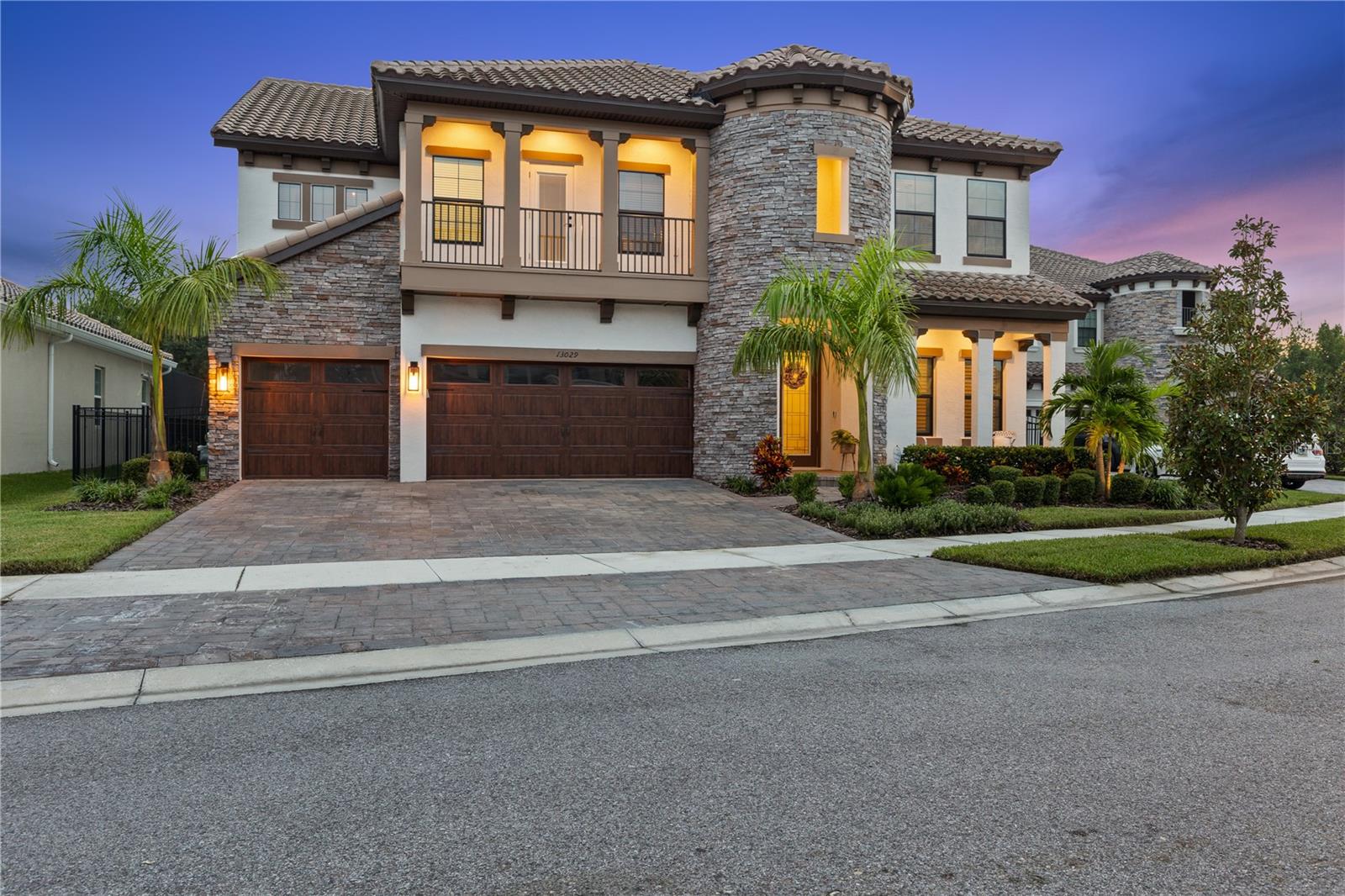One or more photo(s) has been virtually staged. **Sellers will assist with buyers' closing costs** Step into your dream home. This EXQUISITELY DESIGNED Homes by WestBay Granada, just 2 years NEW, in the highly desired Hawkstone community! Nestled near the end of the ONLY cul-de-sac within the Artisan GATES, this 7-bedroom, 6-bathroom, almost 5,000 SQ FT home offers unparalleled luxury. Expertly customized and designed, from the stunning Tuscan elevation to the resort backyard, this home is a GEM with STUNNING quartz countertops throughout, luxury vinyl plank flooring on the first level, wood-look tile ceramic flooring, 8' doorways, upgraded light fixtures in EVERY room, tray ceilings, shiplap, crown molding, whole-home surround sound, security system, water softener, plantation shutters, AND 2 custom-built feature walls with fireplaces. The heart of the home is the meticulously designed gourmet kitchen with matte stainless CAFE appliances, including a French door oven and beverage fridge. Gorgeous quartz countertops, herringbone subway tile backsplash, an apron sink, wine racks, modern open shelving, chrome island light fixtures, pot filler, and cabinet lighting will make any Chef’s dream come true! The primary bedroom is on the main floor and features two walk-in closets with customized built-ins and TWO BATHROOMS. Yes, it has TWO EN SUITE BATHROOMS. Welcome to PARADISE!!! The primary bathroom features lighted anti-fog mirrors, an oversized shower with dual/rain shower heads, picket fence tile, and frameless glass. The second bathroom also works as a convenient pool bath with all the upgrades including an aesthetic barn-door style shower door. Upstairs, there are six more bedrooms, three full bathrooms, and an ENORMOUS BONUS ROOM. A golfer's delight takes up half of the recreational area with a FlightScope golf simulator with turf to hold your tee! The screen converts seamlessly into a home theater for cozy family movie nights. Adjacent to the bonus room, you will discover even more space perfectly suited for a poker or pool table! The expansive rear balcony offers a serene pool and conservation view for morning coffee and sunsets with a glass of wine. The backyard resort highlights a sparkling 20 x 30 saltwater pool equipped with app-controlled lighting, and gas heating and enhanced by two stone water bowl features and elegant subway-tiled glass. Unwind on one of two tanning ledges, each with umbrella stands and bubblers, or in the oversized infinity spa! Entertain in style at the outdoor bar, or relax by the custom-built fireplace, all under upgraded lighting, speakers, and ceiling fans. Outdoor speakers can be played by room or connected to the whole-home sound system to set the perfect ambiance. Stay secure with wired security cameras monitoring over 600 SQ FT of outdoor living space. The fully fenced backyard includes French drains, and three convenient gate access points. While this home offers resort-style amenities, the Hawkstone community adds TOP-RATED Lithia schools, nature preserves, walking trails, swimming and lap pools, a dog park, playgrounds, pickleball courts, a yoga lawn, bocce ball, and a picturesque floating dock. Hawkstone provides easy access to Tampa, Orlando, and world-class white sugar sand beaches while also providing a cozy community feel close to nature. THIS is your dream home.