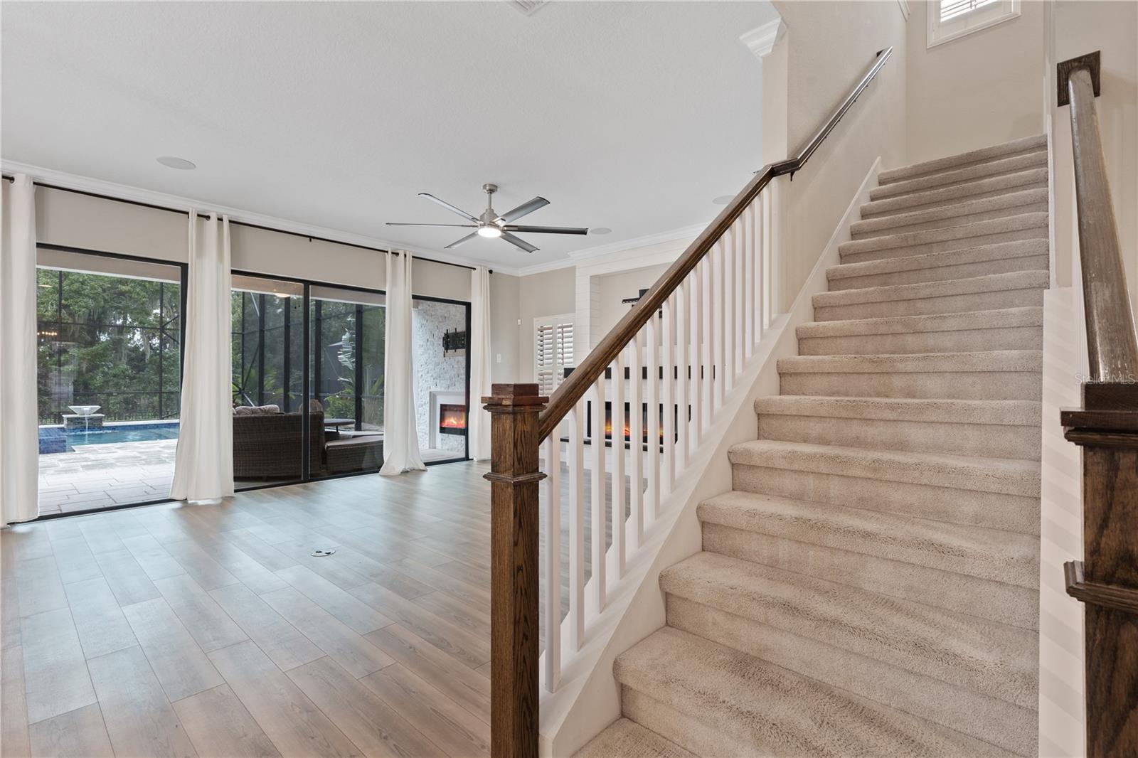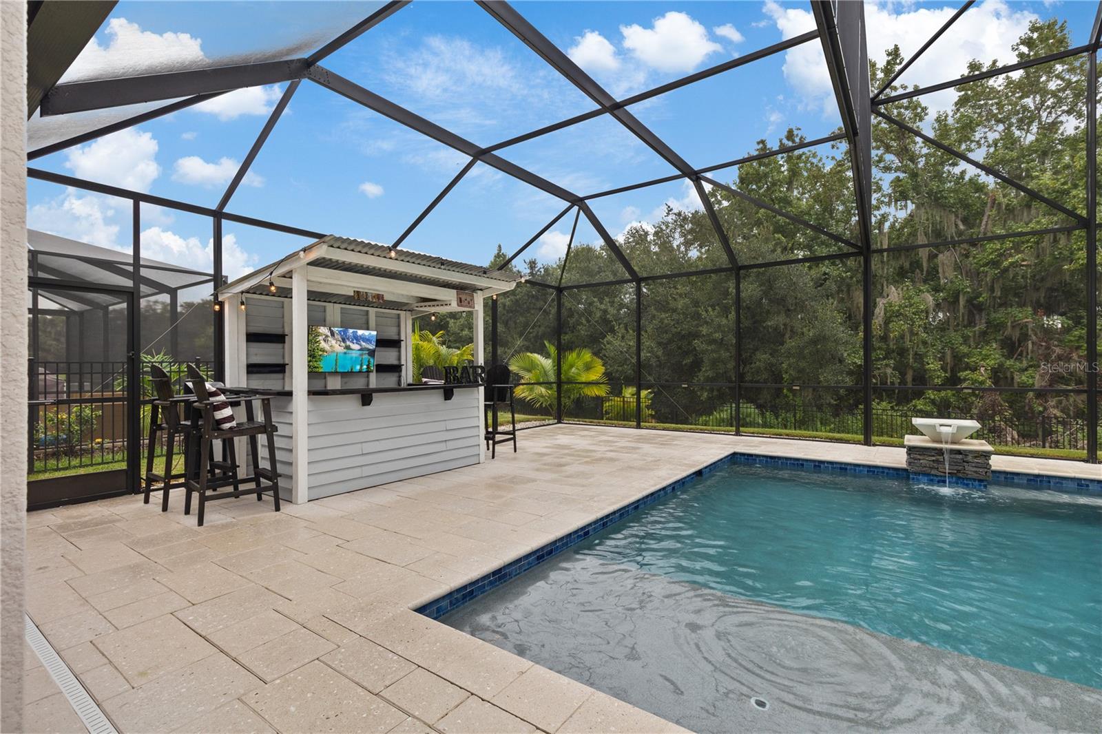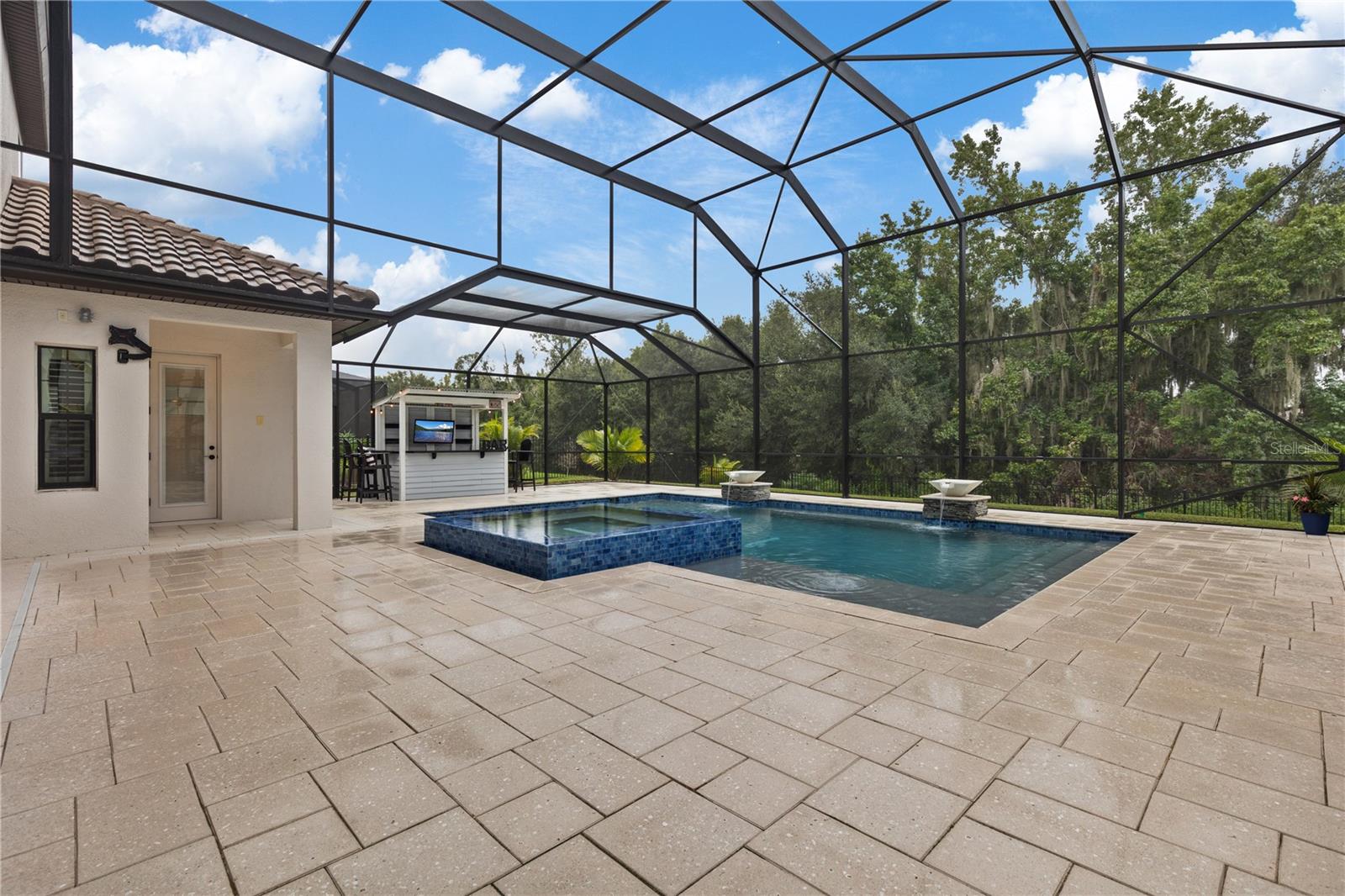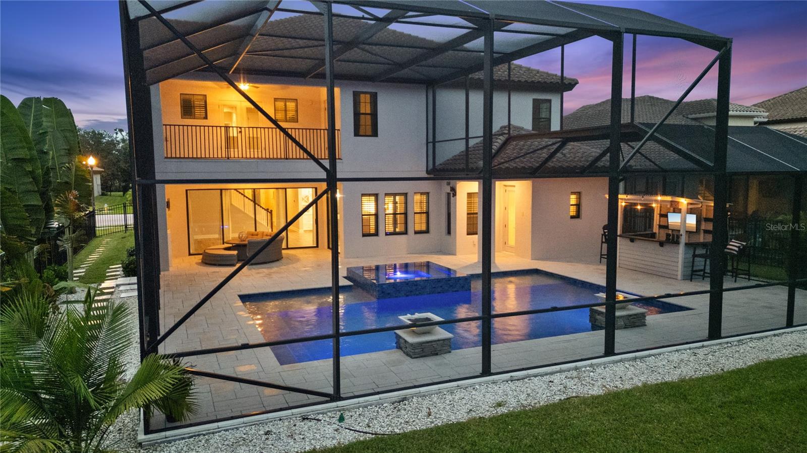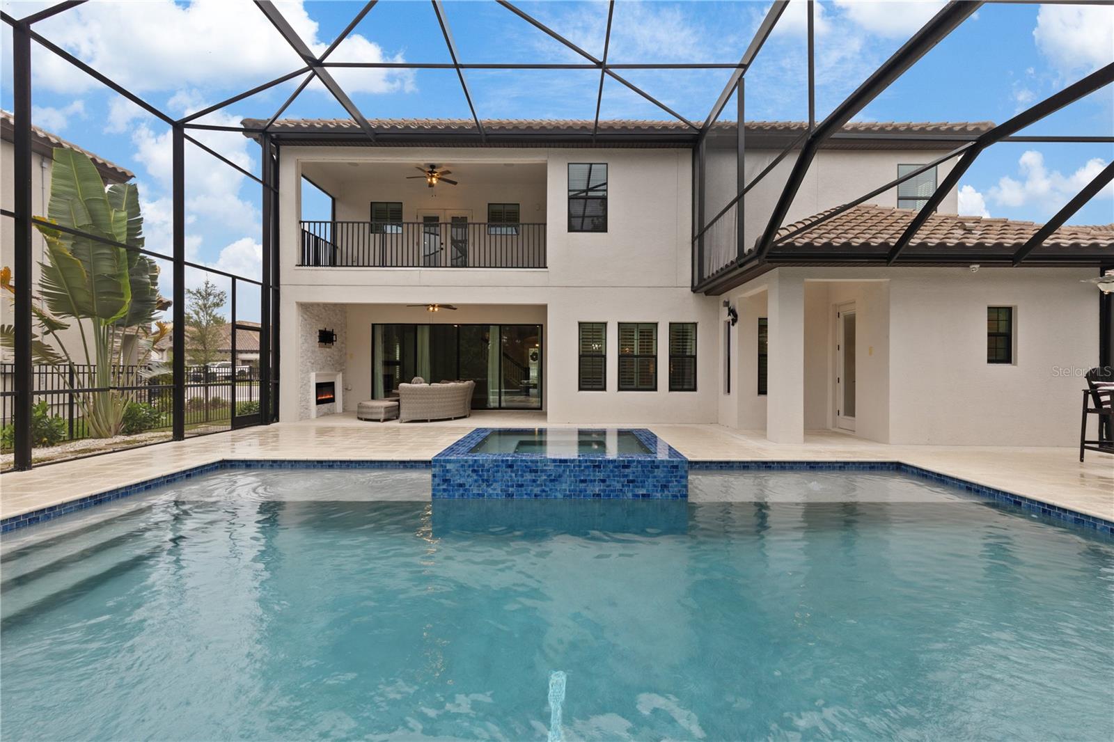 One or more photo(s) has been virtually staged. **Sellers will assist with buyers' closing costs** Step into your dream home. This EXQUISITELY DESIGNED Homes by WestBay Granada, just 2 years NEW, in the highly desired Hawkstone community! Nestled near the end of the ONLY cul-de-sac within the Artisan GATES, this 7-bedroom, 6-bathroom, almost 5,000 SQ FT home offers unparalleled luxury. Expertly customized and designed, from the stunning Tuscan elevation to the resort backyard, this home is a GEM with STUNNING quartz countertops throughout, luxury vinyl plank flooring on the first level, wood-look tile ceramic flooring, 8' doorways, upgraded light fixtures in EVERY room, tray ceilings, shiplap, crown molding, whole-home surround sound, security system, water softener, plantation shutters, AND 2 custom-built feature walls with fireplaces. The heart of the home is the meticulously designed gourmet kitchen with matte stainless CAFE appliances, including a French door oven and beverage fridge. Gorgeous quartz countertops, herringbone subway tile backsplash, an apron sink, wine racks, modern open shelving, chrome island light fixtures, pot filler, and cabinet lighting will make any Chef’s dream come true! The primary bedroom is on the main floor and features two walk-in closets with customized built-ins and TWO BATHROOMS. Yes, it has TWO EN SUITE BATHROOMS. Welcome to PARADISE!!! The primary bathroom features lighted anti-fog mirrors, an oversized shower with dual/rain shower heads, picket fence tile, and frameless glass. The second bathroom also works as a convenient pool bath with all the upgrades including an aesthetic barn-door style shower door. Upstairs, there are six more bedrooms, three full bathrooms, and an ENORMOUS BONUS ROOM. A golfer's delight takes up half of the recreational area with a FlightScope golf simulator with turf to hold your tee! The screen converts seamlessly into a home theater for cozy family movie nights. Adjacent to the bonus room, you will discover even more space perfectly suited for a poker or pool table! The expansive rear balcony offers a serene pool and conservation view for morning coffee and sunsets with a glass of wine. The backyard resort highlights a sparkling 20 x 30 saltwater pool equipped with app-controlled lighting, and gas heating and enhanced by two stone water bowl features and elegant subway-tiled glass. Unwind on one of two tanning ledges, each with umbrella stands and bubblers, or in the oversized infinity spa! Entertain in style at the outdoor bar, or relax by the custom-built fireplace, all under upgraded lighting, speakers, and ceiling fans. Outdoor speakers can be played by room or connected to the whole-home sound system to set the perfect ambiance. Stay secure with wired security cameras monitoring over 600 SQ FT of outdoor living space. The fully fenced backyard includes French drains, and three convenient gate access points. While this home offers resort-style amenities, the Hawkstone community adds TOP-RATED Lithia schools, nature preserves, walking trails, swimming and lap pools, a dog park, playgrounds, pickleball courts, a yoga lawn, bocce ball, and a picturesque floating dock. Hawkstone provides easy access to Tampa, Orlando, and world-class white sugar sand beaches while also providing a cozy community feel close to nature. THIS is your dream home.