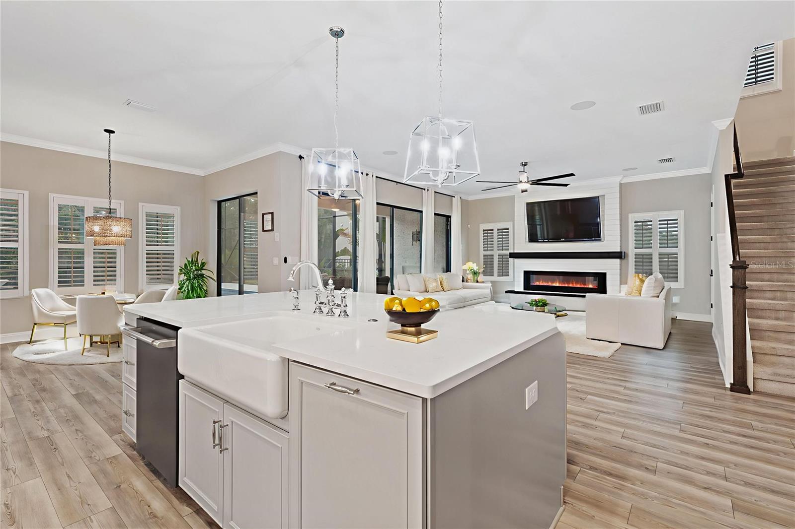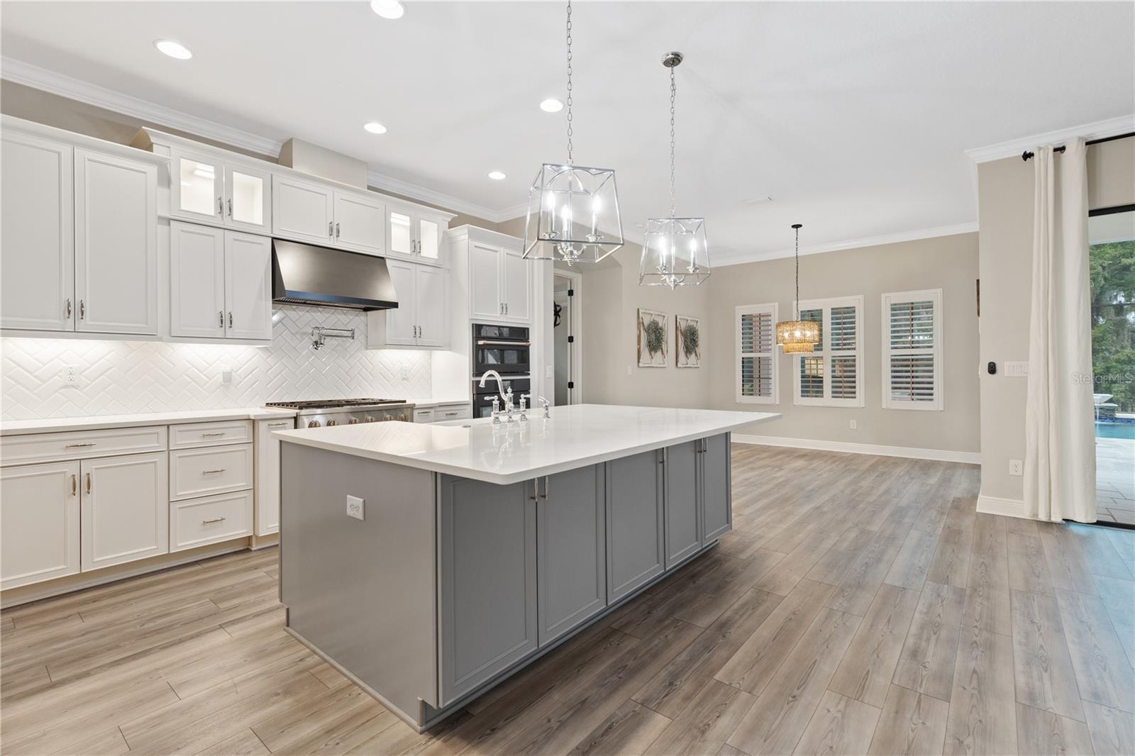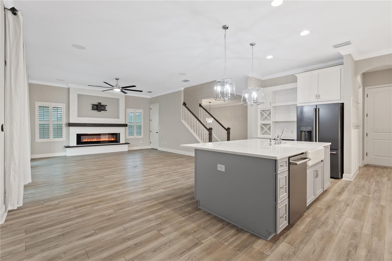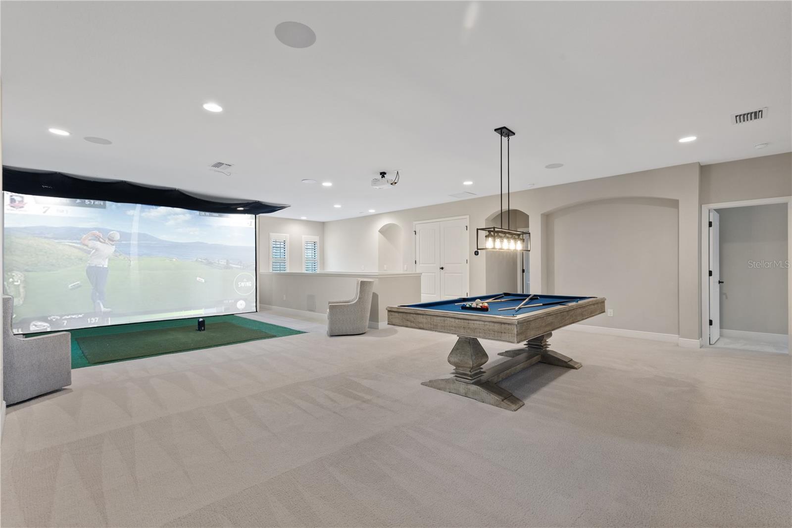 One or more photo(s) has been virtually staged. **Sellers will assist with buyers' closing costs** Step into your dream home. This EXQUISITELY DESIGNED Homes by WestBay Granada, just 2 years NEW, in the highly desired Hawkstone community! Nestled near the end of the ONLY cul-de-sac within the Artisan GATES, this 7-bedroom, 6-bathroom, almost 5,000 SQ FT home offers unparalleled luxury. Expertly customized and designed, from the stunning Tuscan elevation to the resort backyard, this home is a GEM with STUNNING quartz countertops throughout, luxury vinyl plank flooring on the first level, wood-look tile ceramic flooring, 8' doorways, upgraded light fixtures in EVERY room, tray ceilings, shiplap, crown molding, whole-home surround sound, security system, water softener, plantation shutters, AND 2 custom-built feature walls with fireplaces. The heart of the home is the meticulously designed gourmet kitchen with matte stainless CAFE appliances, including a French door oven and beverage fridge. Gorgeous quartz countertops, herringbone subway tile backsplash, an apron sink, wine racks, modern open shelving, chrome island light fixtures, pot filler, and cabinet lighting will make any Chef’s dream come true! The primary bedroom is on the main floor and features two walk-in closets with customized built-ins and TWO BATHROOMS. Yes, it has TWO EN SUITE BATHROOMS. Welcome to PARADISE!!! The primary bathroom features lighted anti-fog mirrors, an oversized shower with dual/rain shower heads, picket fence tile, and frameless glass. The second bathroom also works as a convenient pool bath with all the upgrades including an aesthetic barn-door style shower door. Upstairs, there are six more bedrooms, three full bathrooms, and an ENORMOUS BONUS ROOM. A golfer's delight takes up half of the recreational area with a FlightScope golf simulator with turf to hold your tee! The screen converts seamlessly into a home theater for cozy family movie nights. Adjacent to the bonus room, you will discover even more space perfectly suited for a poker or pool table! The expansive rear balcony offers a serene pool and conservation view for morning coffee and sunsets with a glass of wine. The backyard resort highlights a sparkling 20 x 30 saltwater pool equipped with app-controlled lighting, and gas heating and enhanced by two stone water bowl features and elegant subway-tiled glass. Unwind on one of two tanning ledges, each with umbrella stands and bubblers, or in the oversized infinity spa! Entertain in style at the outdoor bar, or relax by the custom-built fireplace, all under upgraded lighting, speakers, and ceiling fans. Outdoor speakers can be played by room or connected to the whole-home sound system to set the perfect ambiance. Stay secure with wired security cameras monitoring over 600 SQ FT of outdoor living space. The fully fenced backyard includes French drains, and three convenient gate access points. While this home offers resort-style amenities, the Hawkstone community adds TOP-RATED Lithia schools, nature preserves, walking trails, swimming and lap pools, a dog park, playgrounds, pickleball courts, a yoga lawn, bocce ball, and a picturesque floating dock. Hawkstone provides easy access to Tampa, Orlando, and world-class white sugar sand beaches while also providing a cozy community feel close to nature. THIS is your dream home.