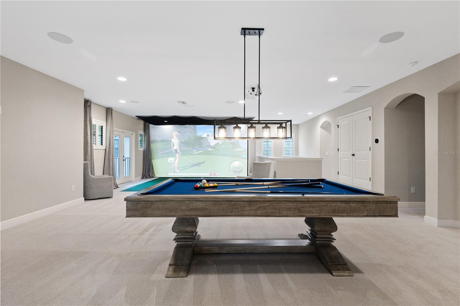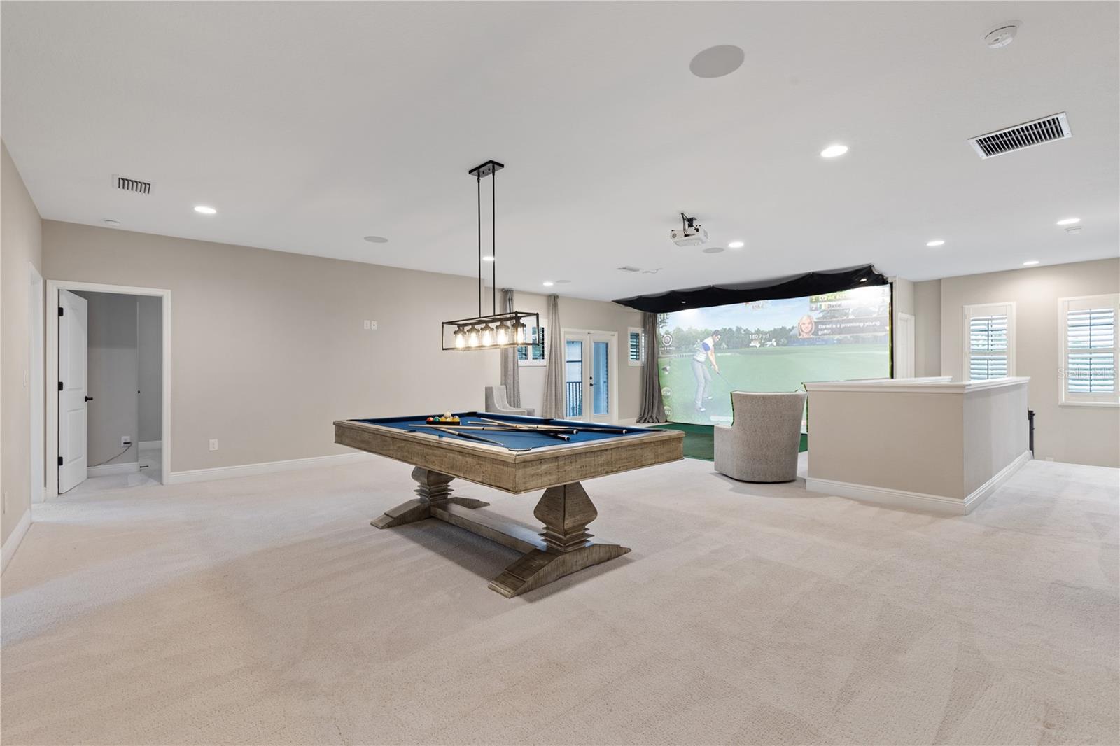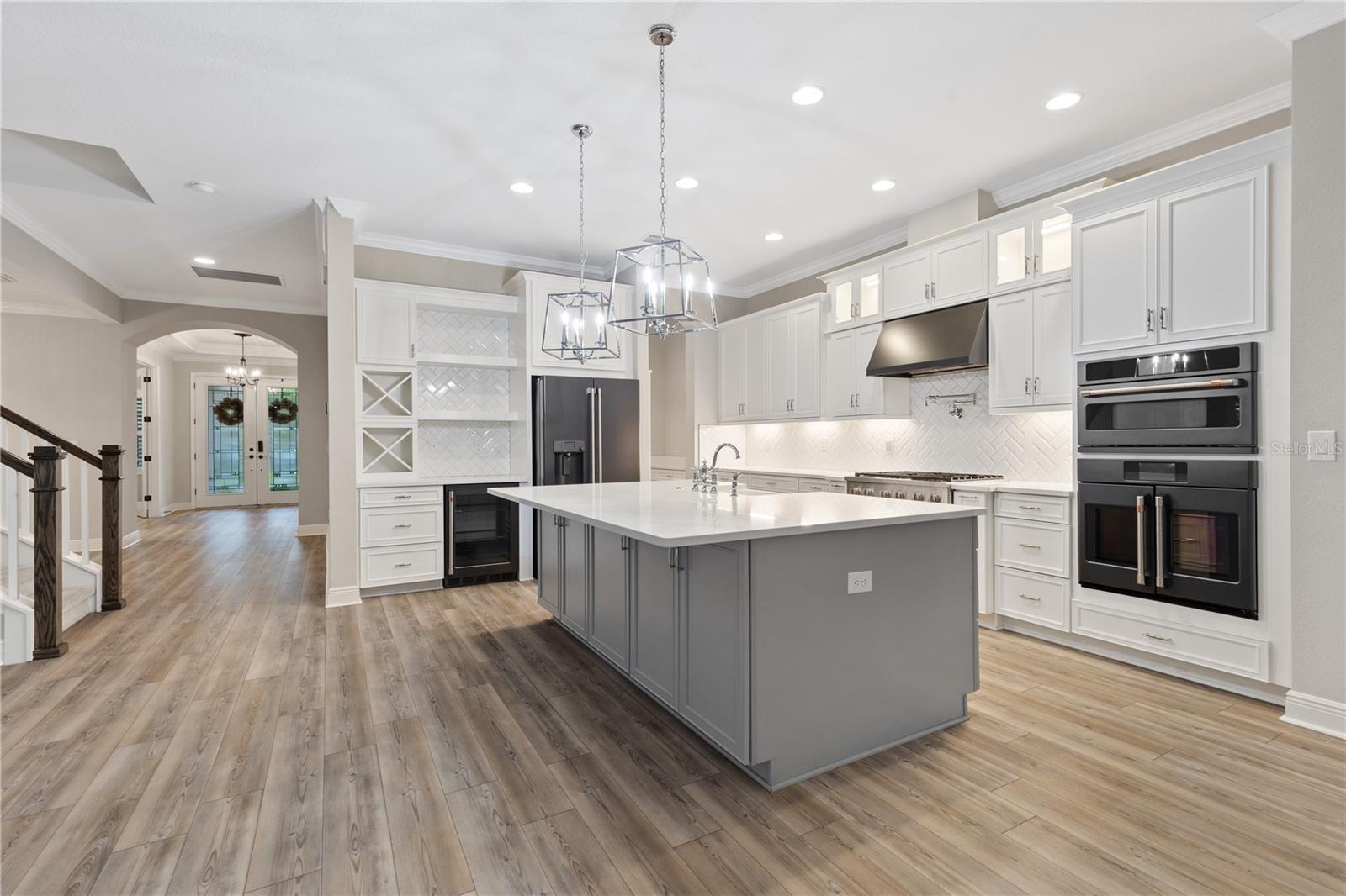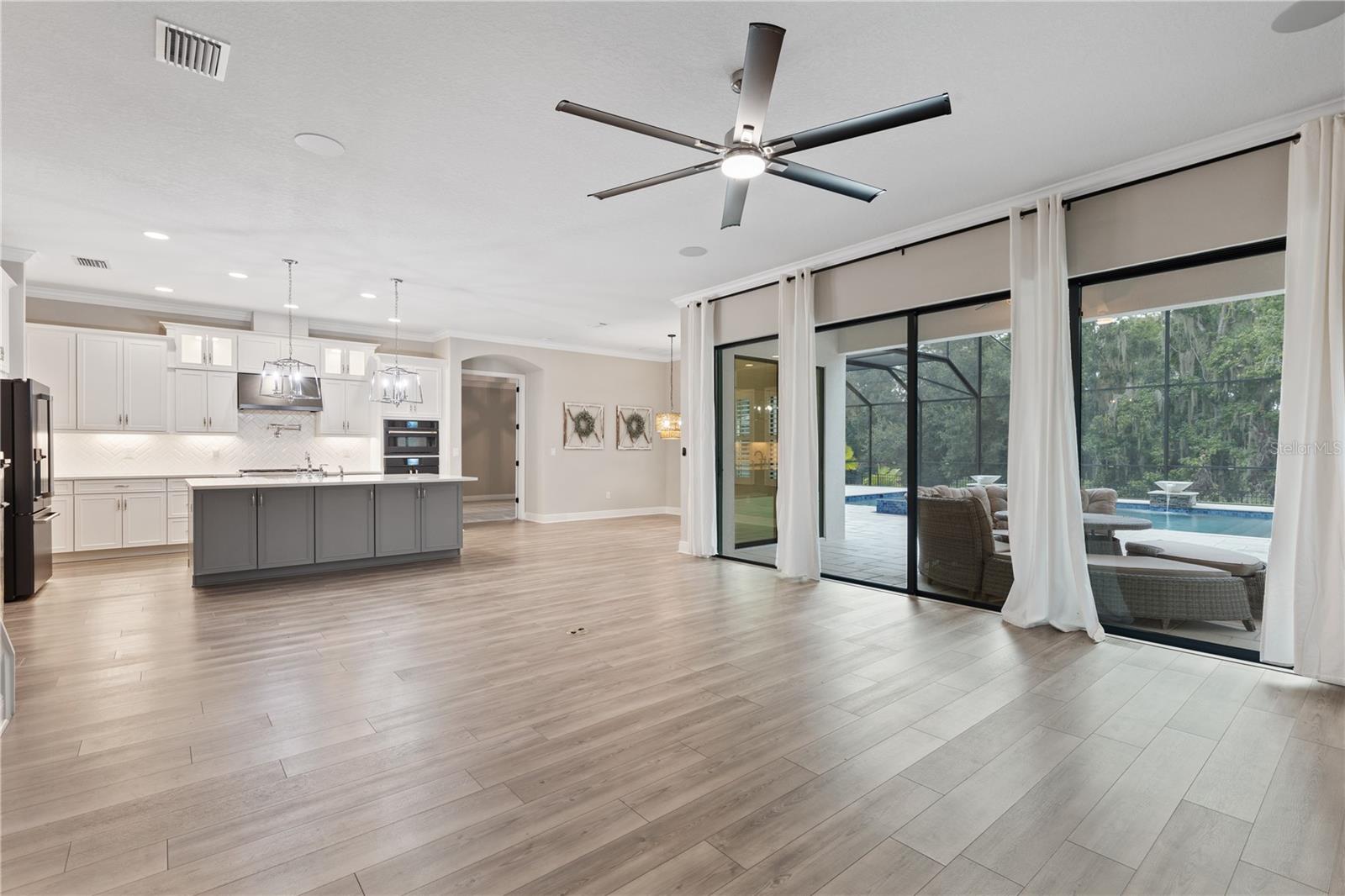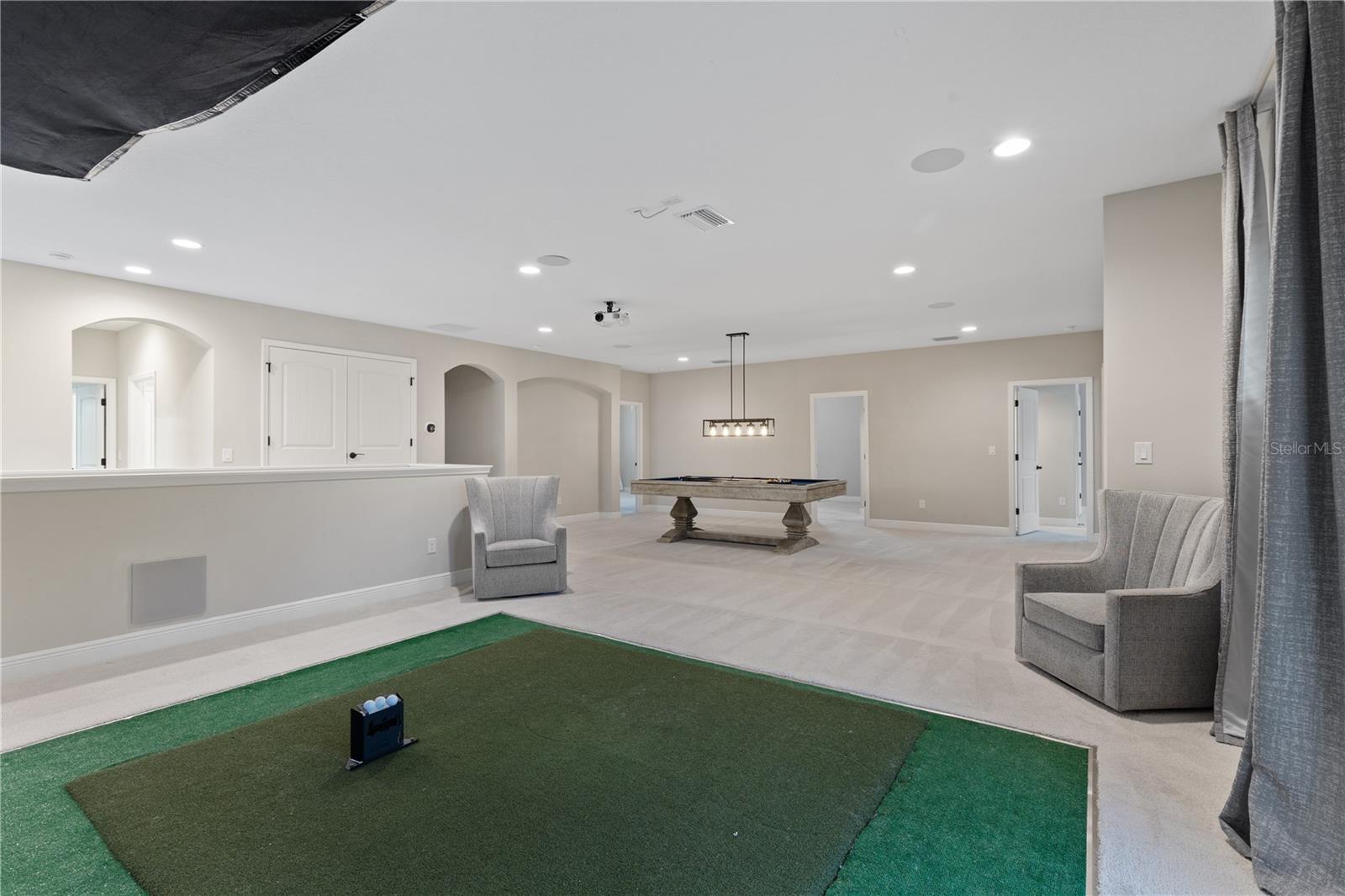 One or more photo(s) has been virtually staged. **Sellers will assist with buyers' closing costs** Step into your dream home. This EXQUISITELY DESIGNED Homes by WestBay Granada, just 2 years NEW, in the highly desired Hawkstone community! Nestled near the end of the ONLY cul-de-sac within the Artisan GATES, this 7-bedroom, 6-bathroom, almost 5,000 SQ FT home offers unparalleled luxury. Expertly customized and designed, from the stunning Tuscan elevation to the resort backyard, this home is a GEM with STUNNING quartz countertops throughout, luxury vinyl plank flooring on the first level, wood-look tile ceramic flooring, 8' doorways, upgraded light fixtures in EVERY room, tray ceilings, shiplap, crown molding, whole-home surround sound, security system, water softener, plantation shutters, AND 2 custom-built feature walls with fireplaces. The heart of the home is the meticulously designed gourmet kitchen with matte stainless CAFE appliances, including a French door oven and beverage fridge. Gorgeous quartz countertops, herringbone subway tile backsplash, an apron sink, wine racks, modern open shelving, chrome island light fixtures, pot filler, and cabinet lighting will make any Chef’s dream come true! The primary bedroom is on the main floor and features two walk-in closets with customized built-ins and TWO BATHROOMS. Yes, it has TWO EN SUITE BATHROOMS. Welcome to PARADISE!!! The primary bathroom features lighted anti-fog mirrors, an oversized shower with dual/rain shower heads, picket fence tile, and frameless glass. The second bathroom also works as a convenient pool bath with all the upgrades including an aesthetic barn-door style shower door. Upstairs, there are six more bedrooms, three full bathrooms, and an ENORMOUS BONUS ROOM. A golfer's delight takes up half of the recreational area with a FlightScope golf simulator with turf to hold your tee! The screen converts seamlessly into a home theater for cozy family movie nights. Adjacent to the bonus room, you will discover even more space perfectly suited for a poker or pool table! The expansive rear balcony offers a serene pool and conservation view for morning coffee and sunsets with a glass of wine. The backyard resort highlights a sparkling 20 x 30 saltwater pool equipped with app-controlled lighting, and gas heating and enhanced by two stone water bowl features and elegant subway-tiled glass. Unwind on one of two tanning ledges, each with umbrella stands and bubblers, or in the oversized infinity spa! Entertain in style at the outdoor bar, or relax by the custom-built fireplace, all under upgraded lighting, speakers, and ceiling fans. Outdoor speakers can be played by room or connected to the whole-home sound system to set the perfect ambiance. Stay secure with wired security cameras monitoring over 600 SQ FT of outdoor living space. The fully fenced backyard includes French drains, and three convenient gate access points. While this home offers resort-style amenities, the Hawkstone community adds TOP-RATED Lithia schools, nature preserves, walking trails, swimming and lap pools, a dog park, playgrounds, pickleball courts, a yoga lawn, bocce ball, and a picturesque floating dock. Hawkstone provides easy access to Tampa, Orlando, and world-class white sugar sand beaches while also providing a cozy community feel close to nature. THIS is your dream home.