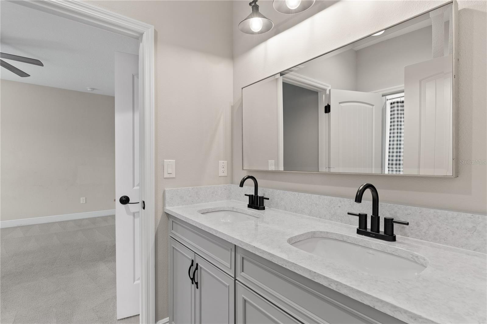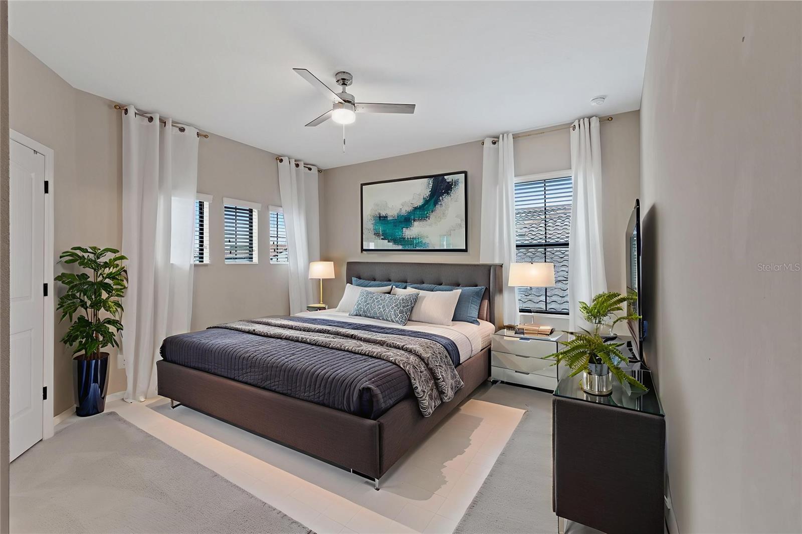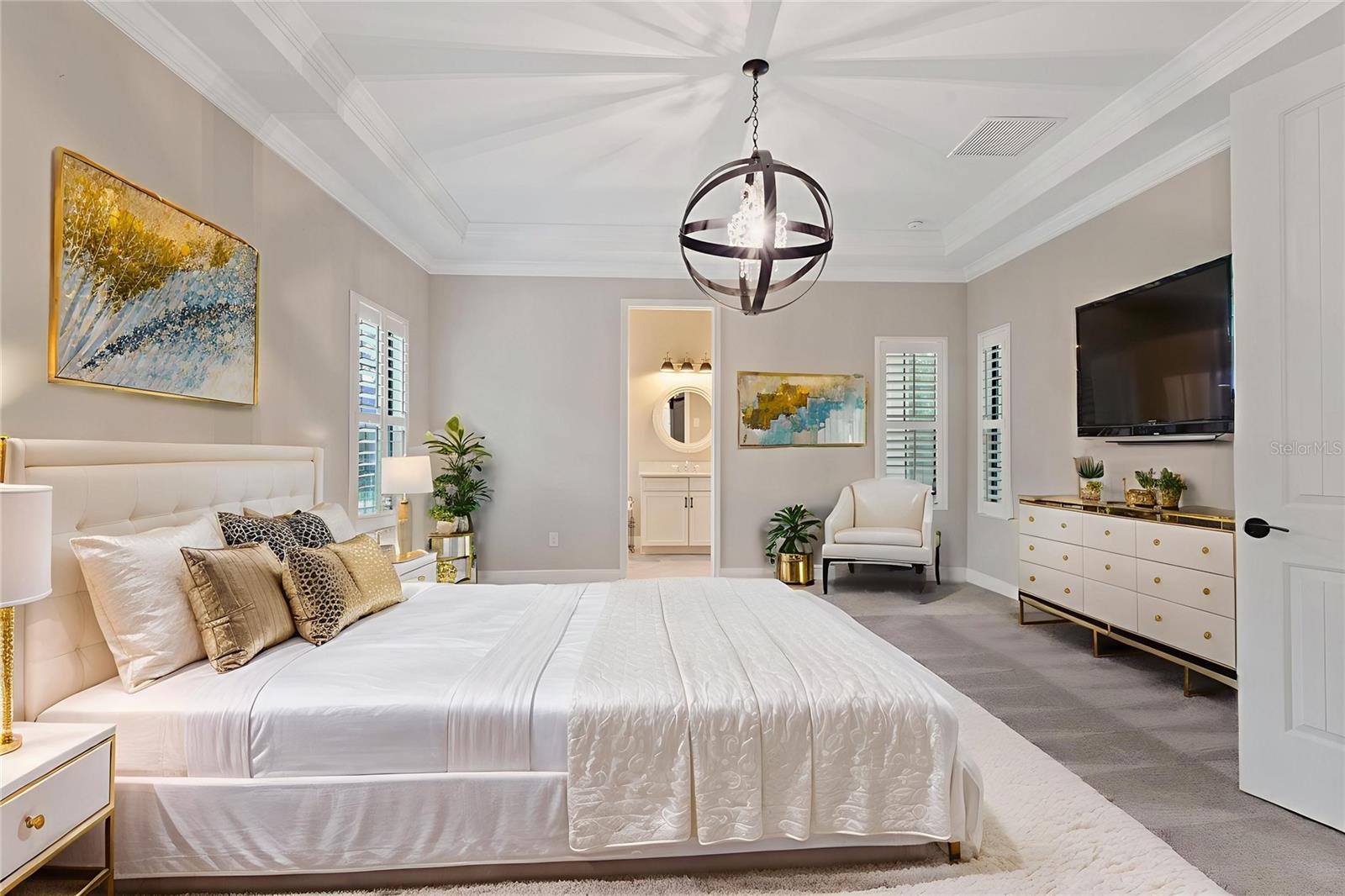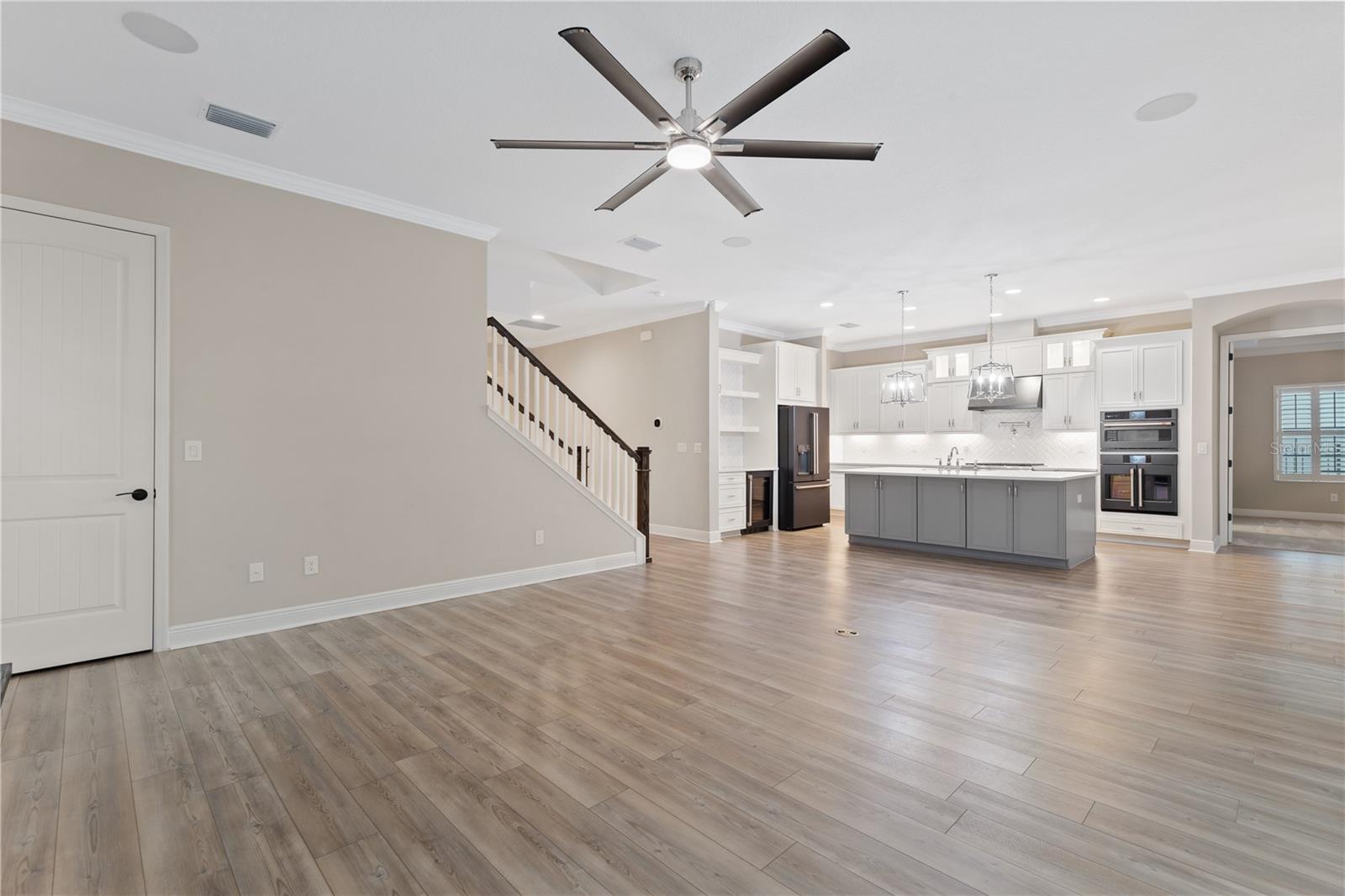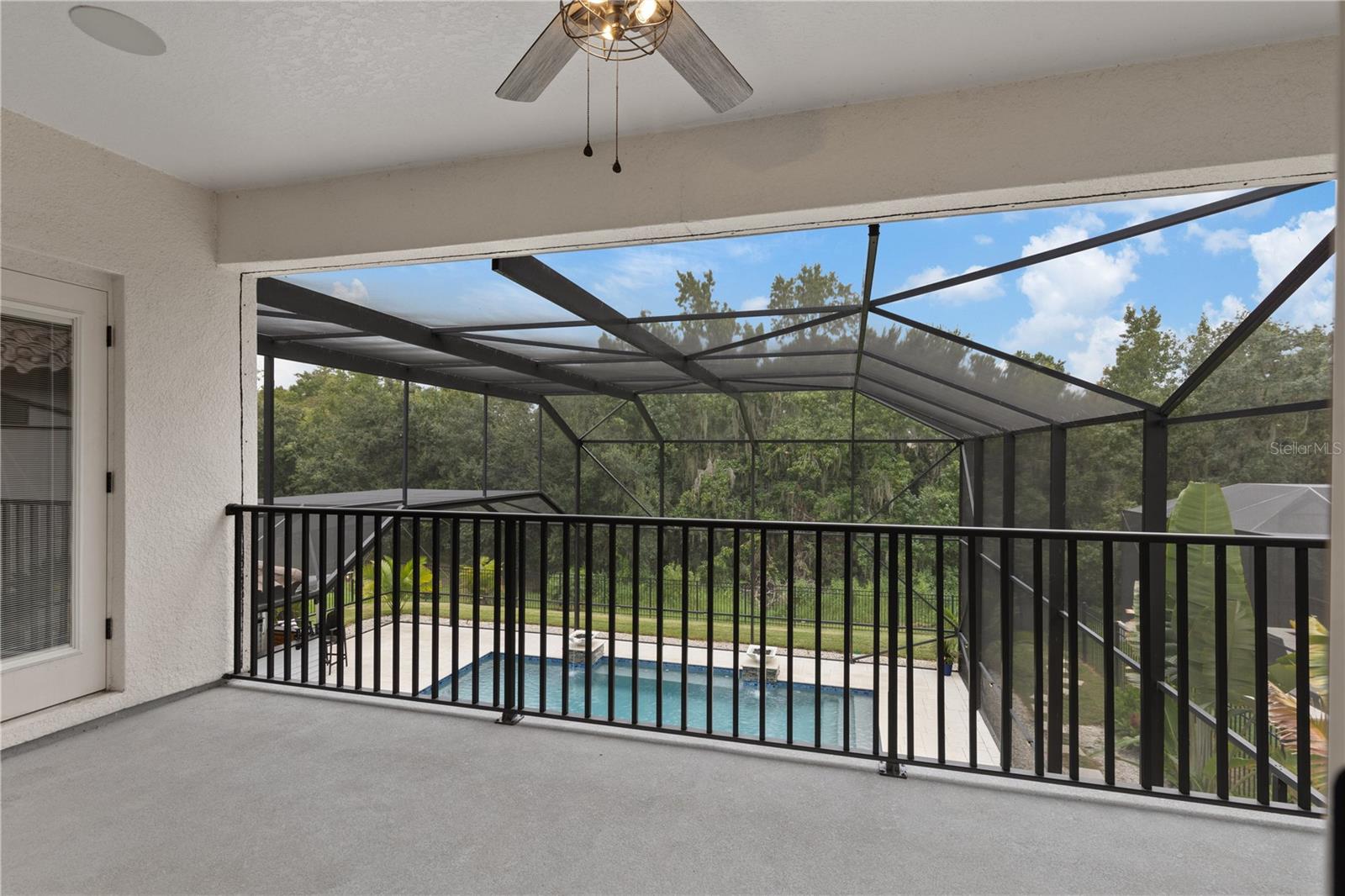 One or more photo(s) has been virtually staged. **Sellers will assist with buyers' closing costs** Step into your dream home. This EXQUISITELY DESIGNED Homes by WestBay Granada, just 2 years NEW, in the highly desired Hawkstone community! Nestled near the end of the ONLY cul-de-sac within the Artisan GATES, this 7-bedroom, 6-bathroom, almost 5,000 SQ FT home offers unparalleled luxury. Expertly customized and designed, from the stunning Tuscan elevation to the resort backyard, this home is a GEM with STUNNING quartz countertops throughout, luxury vinyl plank flooring on the first level, wood-look tile ceramic flooring, 8' doorways, upgraded light fixtures in EVERY room, tray ceilings, shiplap, crown molding, whole-home surround sound, security system, water softener, plantation shutters, AND 2 custom-built feature walls with fireplaces. The heart of the home is the meticulously designed gourmet kitchen with matte stainless CAFE appliances, including a French door oven and beverage fridge. Gorgeous quartz countertops, herringbone subway tile backsplash, an apron sink, wine racks, modern open shelving, chrome island light fixtures, pot filler, and cabinet lighting will make any Chef’s dream come true! The primary bedroom is on the main floor and features two walk-in closets with customized built-ins and TWO BATHROOMS. Yes, it has TWO EN SUITE BATHROOMS. Welcome to PARADISE!!! The primary bathroom features lighted anti-fog mirrors, an oversized shower with dual/rain shower heads, picket fence tile, and frameless glass. The second bathroom also works as a convenient pool bath with all the upgrades including an aesthetic barn-door style shower door. Upstairs, there are six more bedrooms, three full bathrooms, and an ENORMOUS BONUS ROOM. A golfer's delight takes up half of the recreational area with a FlightScope golf simulator with turf to hold your tee! The screen converts seamlessly into a home theater for cozy family movie nights. Adjacent to the bonus room, you will discover even more space perfectly suited for a poker or pool table! The expansive rear balcony offers a serene pool and conservation view for morning coffee and sunsets with a glass of wine. The backyard resort highlights a sparkling 20 x 30 saltwater pool equipped with app-controlled lighting, and gas heating and enhanced by two stone water bowl features and elegant subway-tiled glass. Unwind on one of two tanning ledges, each with umbrella stands and bubblers, or in the oversized infinity spa! Entertain in style at the outdoor bar, or relax by the custom-built fireplace, all under upgraded lighting, speakers, and ceiling fans. Outdoor speakers can be played by room or connected to the whole-home sound system to set the perfect ambiance. Stay secure with wired security cameras monitoring over 600 SQ FT of outdoor living space. The fully fenced backyard includes French drains, and three convenient gate access points. While this home offers resort-style amenities, the Hawkstone community adds TOP-RATED Lithia schools, nature preserves, walking trails, swimming and lap pools, a dog park, playgrounds, pickleball courts, a yoga lawn, bocce ball, and a picturesque floating dock. Hawkstone provides easy access to Tampa, Orlando, and world-class white sugar sand beaches while also providing a cozy community feel close to nature. THIS is your dream home.