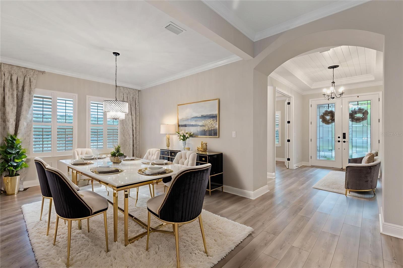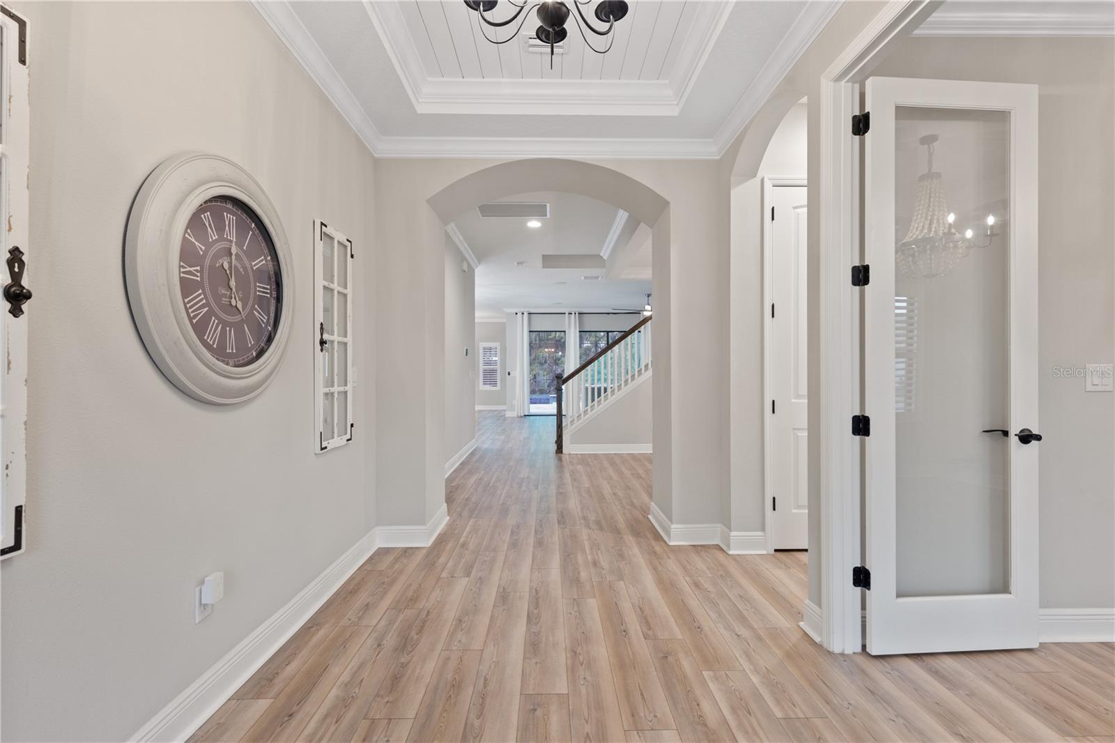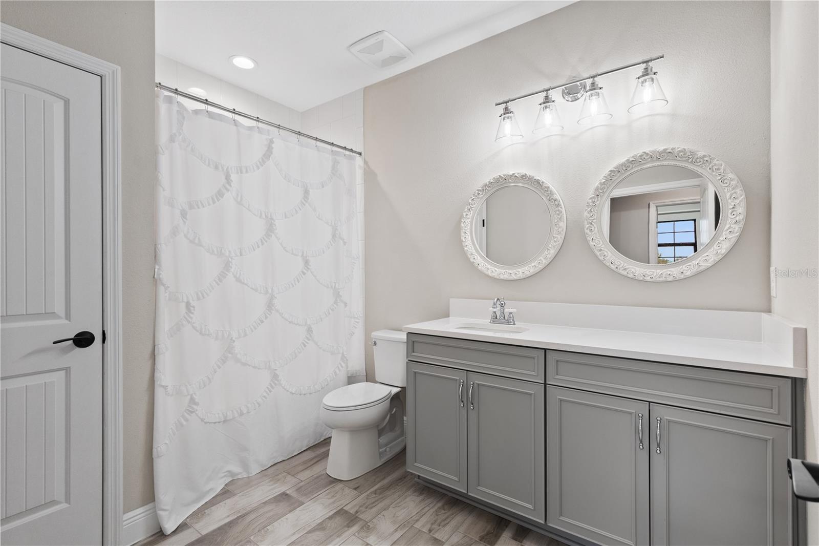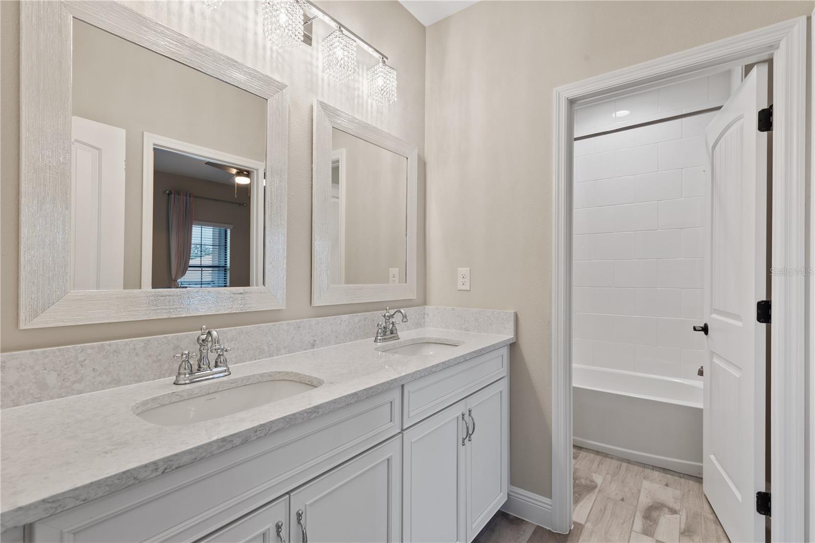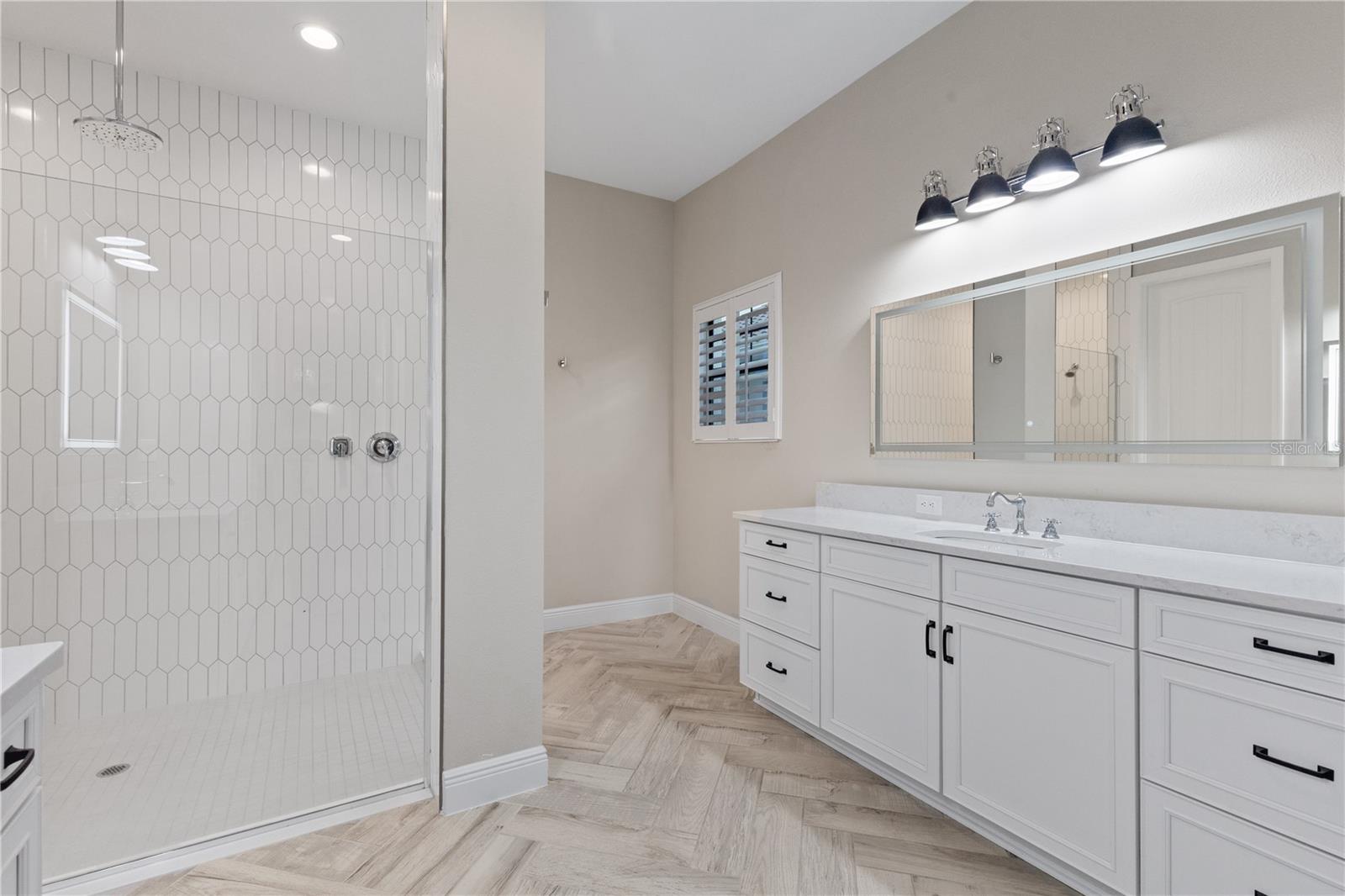 One or more photo(s) has been virtually staged. **Sellers will assist with buyers' closing costs** Step into your dream home. This EXQUISITELY DESIGNED Homes by WestBay Granada, just 2 years NEW, in the highly desired Hawkstone community! Nestled near the end of the ONLY cul-de-sac within the Artisan GATES, this 7-bedroom, 6-bathroom, almost 5,000 SQ FT home offers unparalleled luxury. Expertly customized and designed, from the stunning Tuscan elevation to the resort backyard, this home is a GEM with STUNNING quartz countertops throughout, luxury vinyl plank flooring on the first level, wood-look tile ceramic flooring, 8' doorways, upgraded light fixtures in EVERY room, tray ceilings, shiplap, crown molding, whole-home surround sound, security system, water softener, plantation shutters, AND 2 custom-built feature walls with fireplaces. The heart of the home is the meticulously designed gourmet kitchen with matte stainless CAFE appliances, including a French door oven and beverage fridge. Gorgeous quartz countertops, herringbone subway tile backsplash, an apron sink, wine racks, modern open shelving, chrome island light fixtures, pot filler, and cabinet lighting will make any Chef’s dream come true! The primary bedroom is on the main floor and features two walk-in closets with customized built-ins and TWO BATHROOMS. Yes, it has TWO EN SUITE BATHROOMS. Welcome to PARADISE!!! The primary bathroom features lighted anti-fog mirrors, an oversized shower with dual/rain shower heads, picket fence tile, and frameless glass. The second bathroom also works as a convenient pool bath with all the upgrades including an aesthetic barn-door style shower door. Upstairs, there are six more bedrooms, three full bathrooms, and an ENORMOUS BONUS ROOM. A golfer's delight takes up half of the recreational area with a FlightScope golf simulator with turf to hold your tee! The screen converts seamlessly into a home theater for cozy family movie nights. Adjacent to the bonus room, you will discover even more space perfectly suited for a poker or pool table! The expansive rear balcony offers a serene pool and conservation view for morning coffee and sunsets with a glass of wine. The backyard resort highlights a sparkling 20 x 30 saltwater pool equipped with app-controlled lighting, and gas heating and enhanced by two stone water bowl features and elegant subway-tiled glass. Unwind on one of two tanning ledges, each with umbrella stands and bubblers, or in the oversized infinity spa! Entertain in style at the outdoor bar, or relax by the custom-built fireplace, all under upgraded lighting, speakers, and ceiling fans. Outdoor speakers can be played by room or connected to the whole-home sound system to set the perfect ambiance. Stay secure with wired security cameras monitoring over 600 SQ FT of outdoor living space. The fully fenced backyard includes French drains, and three convenient gate access points. While this home offers resort-style amenities, the Hawkstone community adds TOP-RATED Lithia schools, nature preserves, walking trails, swimming and lap pools, a dog park, playgrounds, pickleball courts, a yoga lawn, bocce ball, and a picturesque floating dock. Hawkstone provides easy access to Tampa, Orlando, and world-class white sugar sand beaches while also providing a cozy community feel close to nature. THIS is your dream home.
