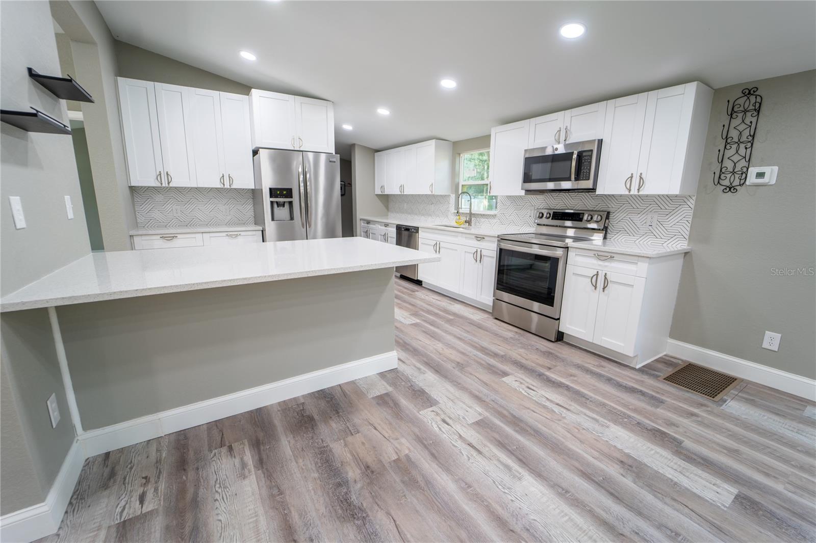 BACK ON MARKET!!! THIS IRREPLACEABLE HOME HAS PASSED TWO 4 POINT INSPECTIONS AND APPRAISED AT VALUE AND IS BACK ON MARKET!!!! DON'T MISS THIS OPPORTUNITY TO OWN THIS OVERSIZED LOT IN RIVERVIEW WITH THE FREEDOM OF NO HOA!!!! THIS HOUSE IS BETTER THAN NEW!!! The moment you enter into this home via your BRAND NEW COVERED FRONT PORCH, you'll be struck by its wide open floorplan, high ceilings, and spacious room sizes including a massive great room with brand new sliding glass doors that lead out to your BRAND NEW EXPANSIVE BACK DECK... This GORGEOUS, 3 bedroom, 2 bathroom home has been stripped down to the studs and beautifully refurbished including a BRAND NEW ROOF, ALL NEW PLUMBING AND ELECTRIC, BRAND NEW KITCHEN including ALL NEW CABINETS & NEW QUARTZ COUNTERTOPS, NEW PLYWOOD SUB-FLOORING AND GORGEOUS NEW MANUFACTURED WOOD FLOORING THROUGHOUT ENTIRE HOME! BOTH BATHROOMS HAVE BEEN COMPLETELY UPDATED! All 3 bedrooms have walk in closets, and the entire home has been FRESHLY PAINTED INSIDE AND NEW SIDING OUTSIDE!!! Your new home has been outfitted with all BRAND NEW WINDOWS AND BRAND NEW DOORS! Stay cool year round with your BRAND NEW HVAC with BRAND NEW DUCTWORK throughout! The home is perfectly located towards the end of a culdesac minimizing traffic and backs up to woods that give a special kind of privacy... The home is perfectly situated on the property allowing plenty of space for your RVs, boats, work trucks etc. to make their way to the back yard... The oversized two-door garage is patiently waiting for it's new buyers to decide to keep it for a workshop, garage, storage or remove it making more room for you to personalize your backyard!!!