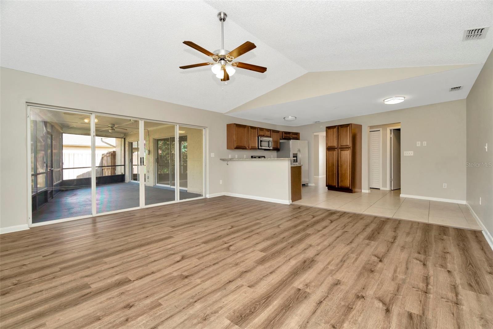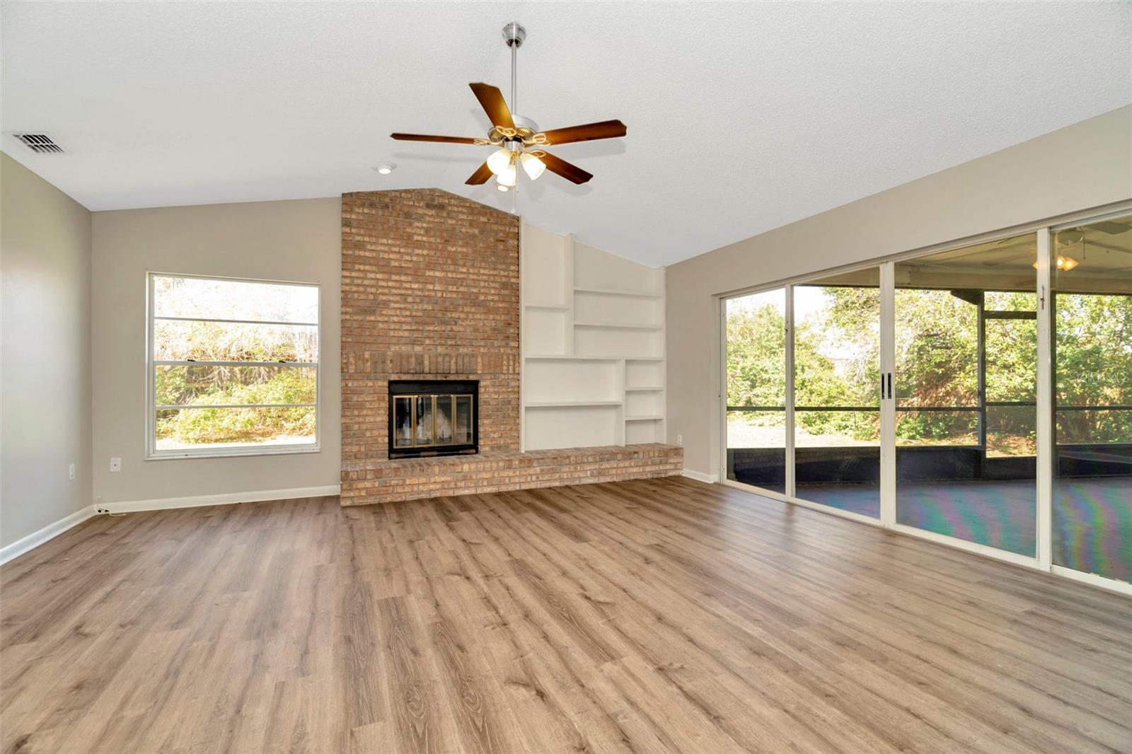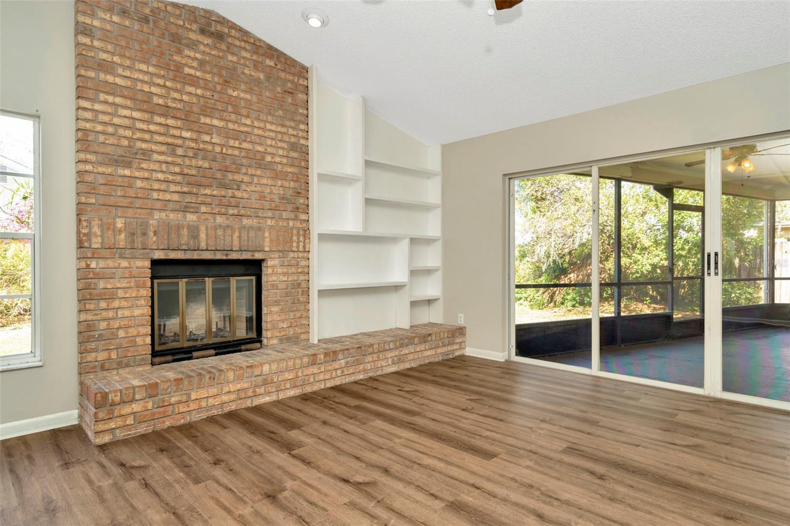 Boyette Springs in Riverview offers a great opportunity for homeownership! No HOA or CDD fee and this split bedroom floor plan gives lots of flexibility for different situations. 4 bedrooms, 2 bathrooms and a 2 car garage with a very large screened lanai and a private backyard. The front door opens to a space that combines both formal living and dining spaces - the first thing you notice is the beautiful views to the backyard through sliding doors. Stepping further in you will find a spacious kitchen with granite counters, lots of cabinet space, stainless steel, bar top seating and a separate breakfast area. Relax and entertain in the quaint family room with wood burning fireplace adorned with brick. The primary bedroom with en suite bathroom has a vanity and step in shower. The secondary bedrooms are on the opposite site of the primary suite and they share a full sized bathroom. Central location within the heart of Riverview, this home is just moments away from shopping, dining, and easy access to the interstate. It's good to be home.