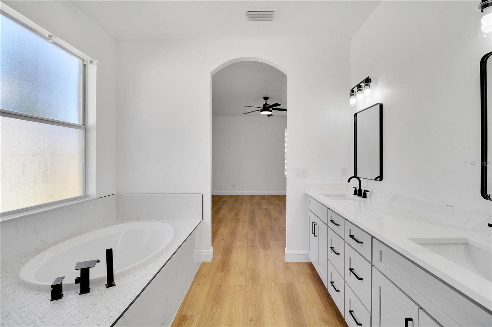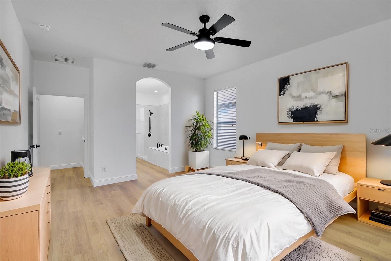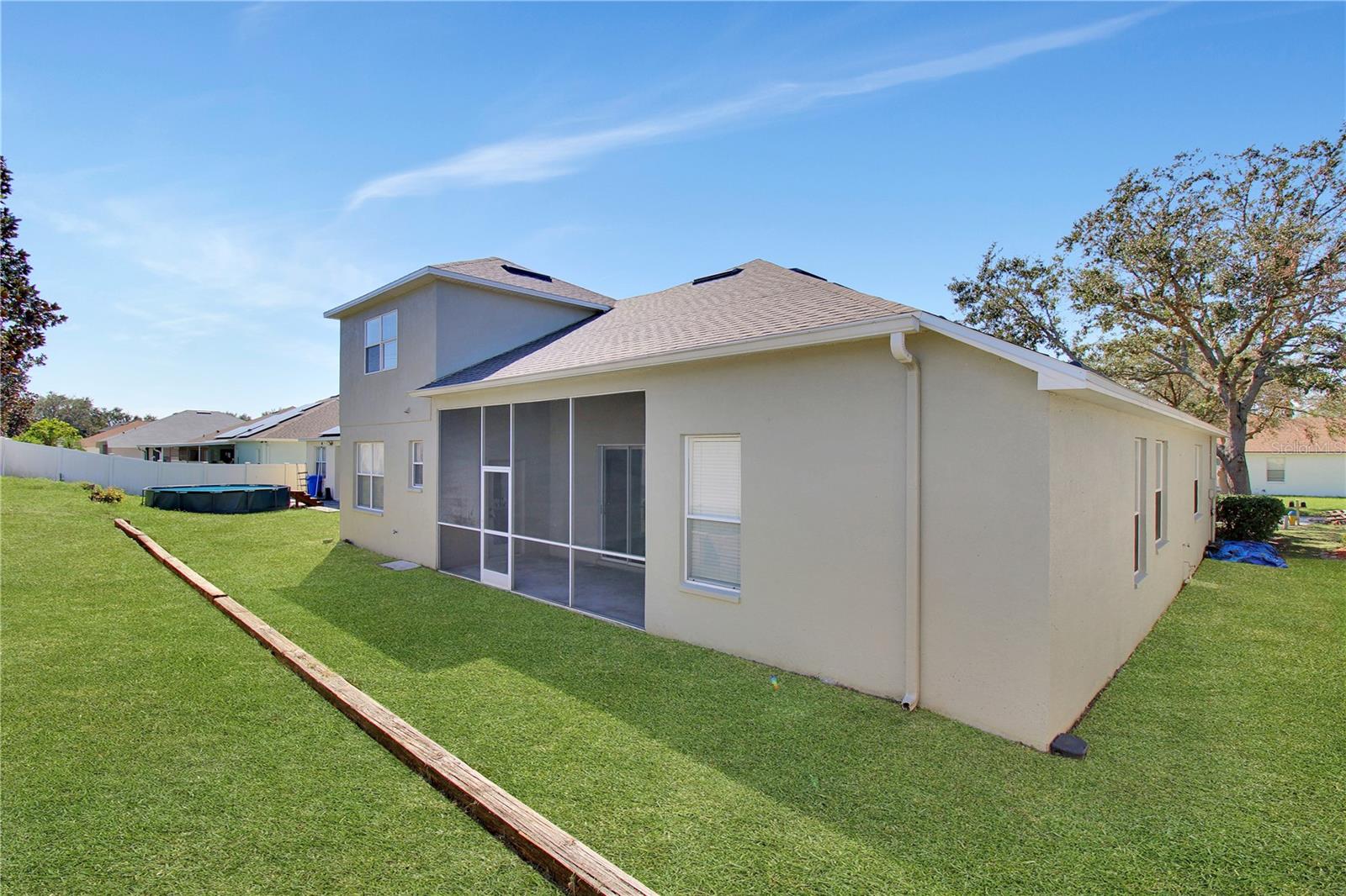 One or more photo(s) has been virtually staged. Welcome to the highly desirable of Boyette Farms! This gorgeous 4 BED, 3 BATH, 3 CAR GARAGE, plus OFFICE and BONUS ROOM home has been COMPLETELY RENOVATED and is ready for it's new owner! Enter the front door and notice the SOARING CEILINGS, OPEN FLOOR PLAN, beautiful LVP flooring that runs throughout the home, and incredible doorway arches. At the front of the home is the formal dining with tasteful tray ceiling to the right, and the formal living area to the left. The office in the front left can be used as a 5th bedroom if needed or the perfect work from home office placed away from all the activity in the home. The kitchen is a DREAM with gorgeous tall cream colored cabinets with modern brass hardware, stainless steel appliances, quartz countertops, fabulous backsplash, and breakfast bar seating, as well as room for a small table for informal meals. The PRIMARY BEDROOM is situated on the left side of the home for extreme privacy and also features its own private entrance to the lanai and a massive EN-SUITE bathroom with a large soaker tub, large tiled shower, dual sink vanity, separate water closer, and large WALK-IN CLOSET. This perfect floorplan features 2 secondary bedrooms in the front right of the home, split by a "Jack and Jill" bathroom. A large bedroom to the rear right of the home is perfect for a mother-in-law suite, as it features 2 closets and has it's own designated bathroom right outside of the door with a private entrance to the lanai. Upstairs, you will find a large bonus room perfect for a game room, family movie nights, or fitness room. Additional updates include NEW ROOF and NEW WATER HEATER. CONVENIETLY LOCATED just minutes away from shopping, restaurants, Publix, 301, and I-75. LOW HOA and NO CDD! X flood zone!