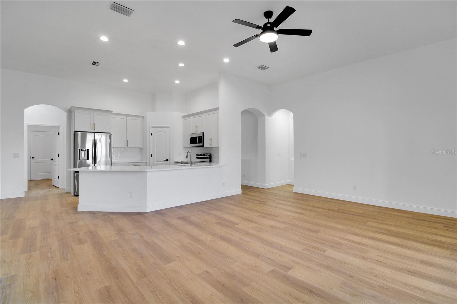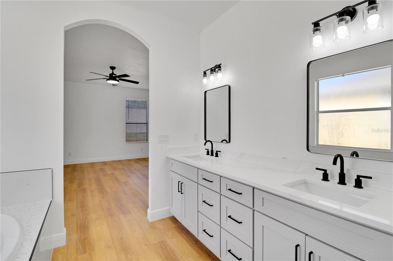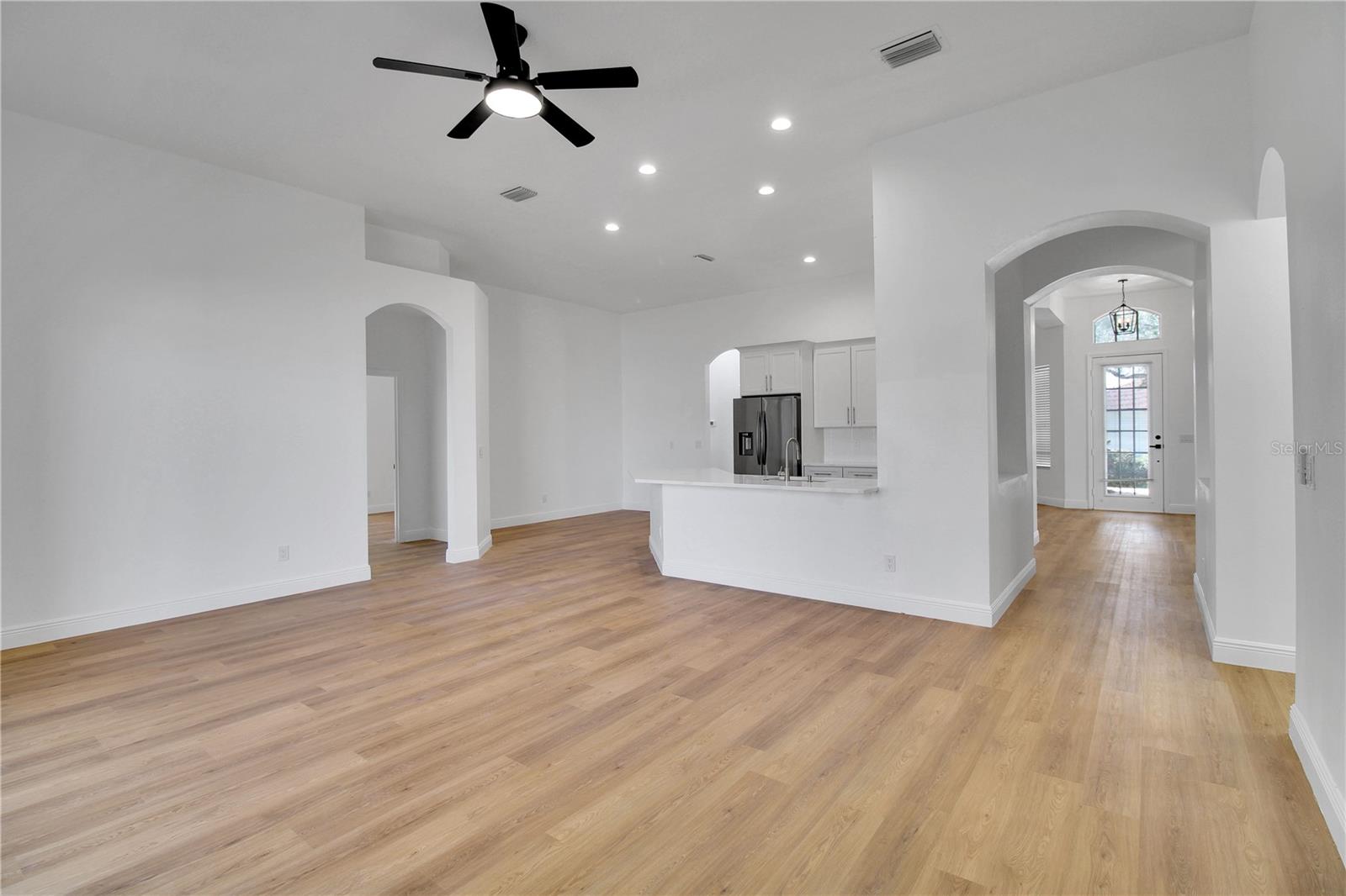 One or more photo(s) has been virtually staged. Welcome to the highly desirable of Boyette Farms! This gorgeous 4 BED, 3 BATH, 3 CAR GARAGE, plus OFFICE and BONUS ROOM home has been COMPLETELY RENOVATED and is ready for it's new owner! Enter the front door and notice the SOARING CEILINGS, OPEN FLOOR PLAN, beautiful LVP flooring that runs throughout the home, and incredible doorway arches. At the front of the home is the formal dining with tasteful tray ceiling to the right, and the formal living area to the left. The office in the front left can be used as a 5th bedroom if needed or the perfect work from home office placed away from all the activity in the home. The kitchen is a DREAM with gorgeous tall cream colored cabinets with modern brass hardware, stainless steel appliances, quartz countertops, fabulous backsplash, and breakfast bar seating, as well as room for a small table for informal meals. The PRIMARY BEDROOM is situated on the left side of the home for extreme privacy and also features its own private entrance to the lanai and a massive EN-SUITE bathroom with a large soaker tub, large tiled shower, dual sink vanity, separate water closer, and large WALK-IN CLOSET. This perfect floorplan features 2 secondary bedrooms in the front right of the home, split by a "Jack and Jill" bathroom. A large bedroom to the rear right of the home is perfect for a mother-in-law suite, as it features 2 closets and has it's own designated bathroom right outside of the door with a private entrance to the lanai. Upstairs, you will find a large bonus room perfect for a game room, family movie nights, or fitness room. Additional updates include NEW ROOF and NEW WATER HEATER. CONVENIETLY LOCATED just minutes away from shopping, restaurants, Publix, 301, and I-75. LOW HOA and NO CDD! X flood zone!
