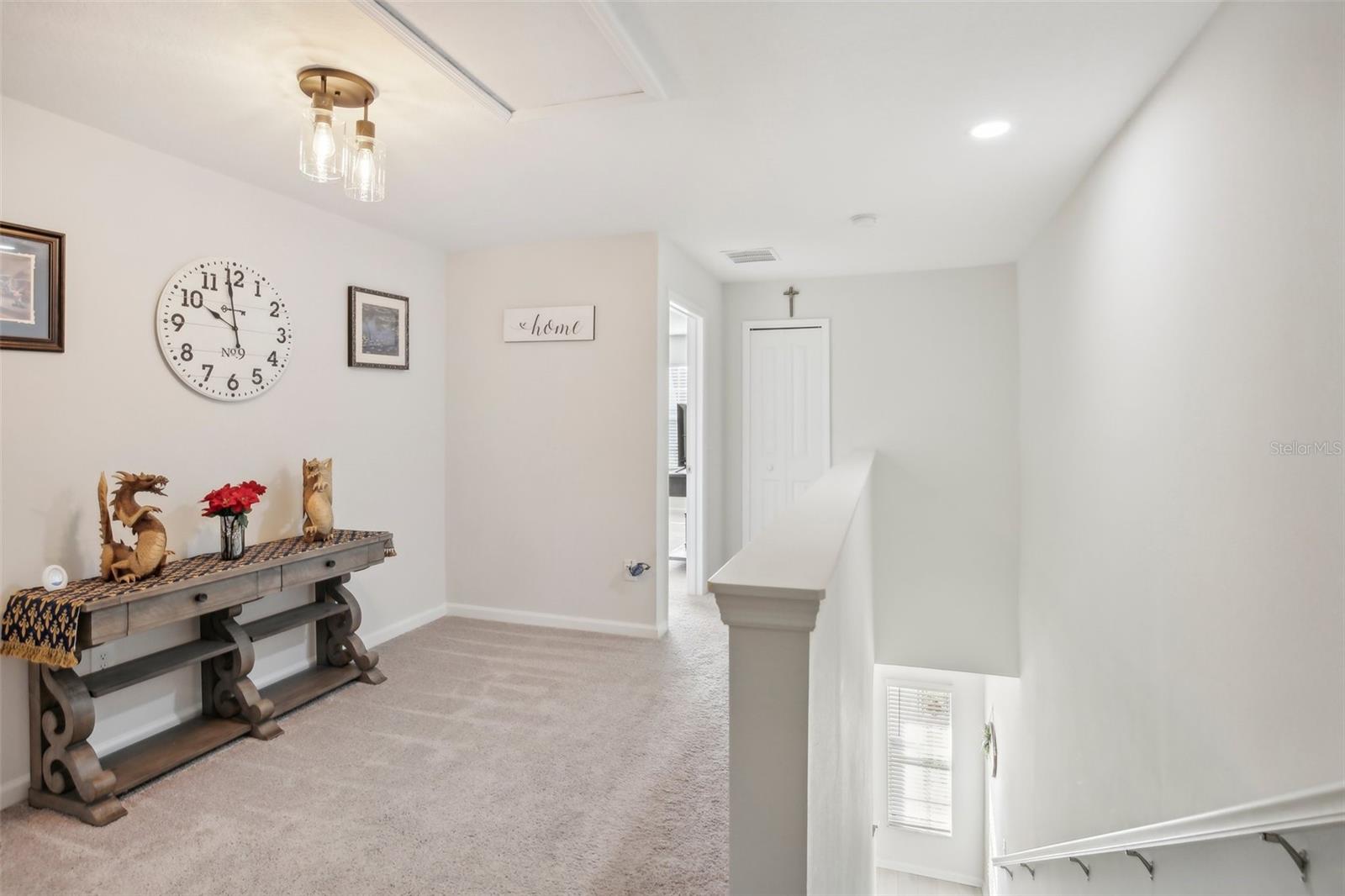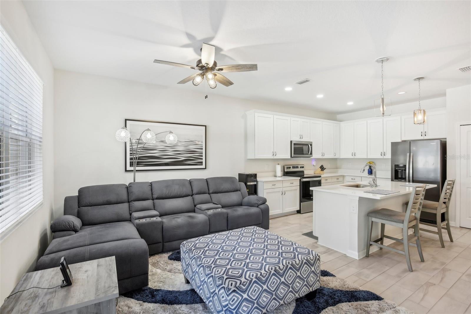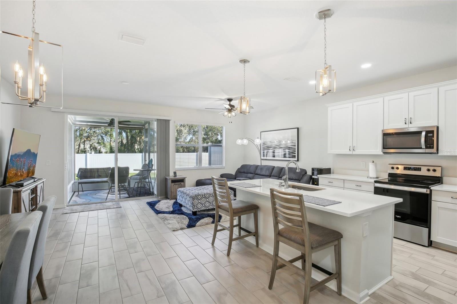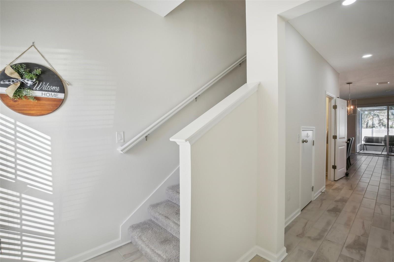 Welcome to this charming two-story townhome offering a seamless blend of comfort and modern style. Featuring an open floor plan, it’s ideal for both everyday living and entertaining. The one-car garage boasts sleek epoxy floors, with additional driveway space for two vehicles. Enjoy a peaceful outdoor retreat in the screened-in lanai, equipped with roll-down shades and no direct rear neighbors for added privacy. This home is in excellent condition. It has been well-maintained and shows as if it were brand new. Upstairs, the spacious primary suite impresses with a large walk-in closet. Two generously sized guest bedrooms ensure ample space for family or visitors, and a mini loft offers flexibility—perfect for a reading nook or home office. The laundry room is conveniently located upstairs, making household chores a breeze. Thoughtful upgrades, including stylish lighting fixtures, add to the home's appeal. Community amenities include a pool and a dedicated dog park, ensuring relaxation and recreation are just steps away. This townhome combines functional design with quality features in a desirable setting.