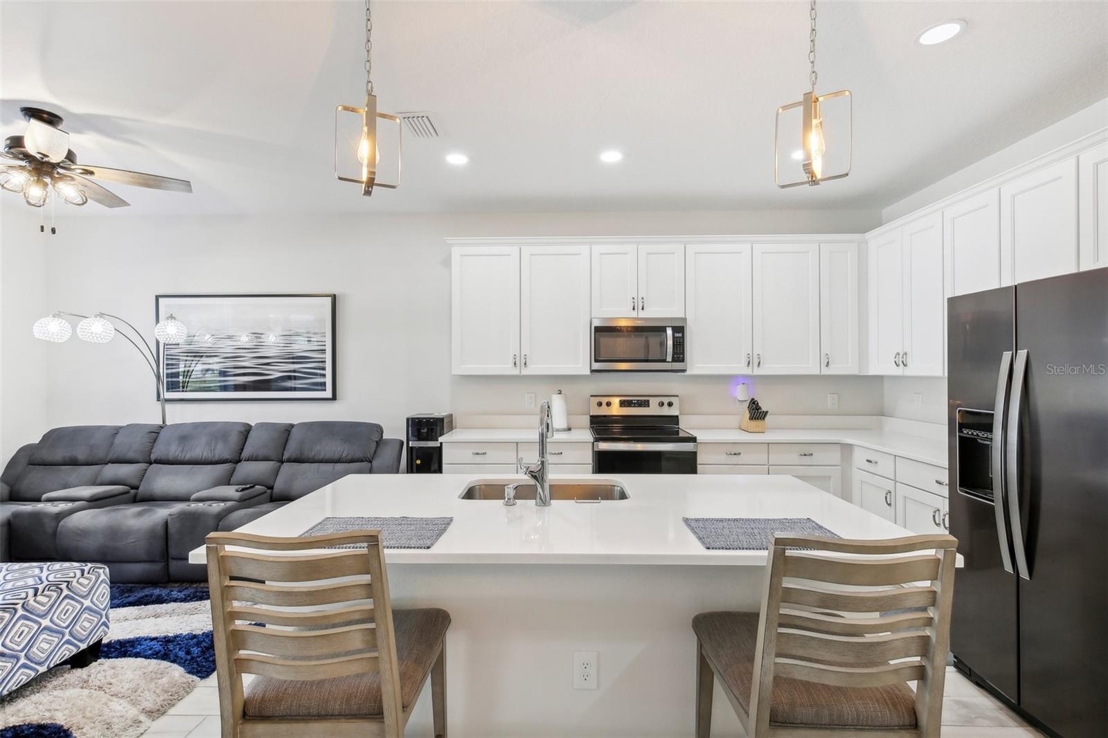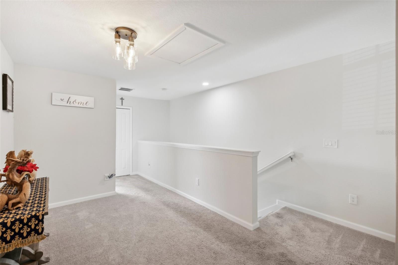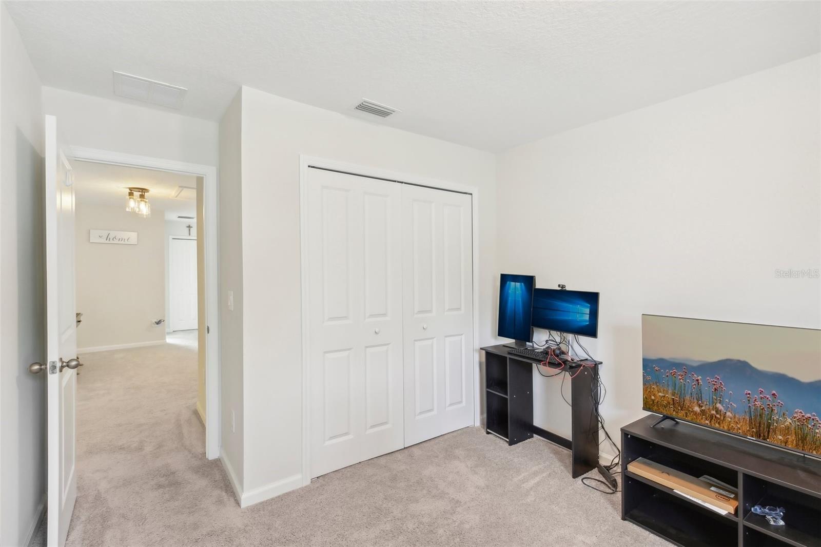 Welcome to this charming two-story townhome offering a seamless blend of comfort and modern style. Featuring an open floor plan, it’s ideal for both everyday living and entertaining. The one-car garage boasts sleek epoxy floors, with additional driveway space for two vehicles. Enjoy a peaceful outdoor retreat in the screened-in lanai, equipped with roll-down shades and no direct rear neighbors for added privacy. This home is in excellent condition. It has been well-maintained and shows as if it were brand new. Upstairs, the spacious primary suite impresses with a large walk-in closet. Two generously sized guest bedrooms ensure ample space for family or visitors, and a mini loft offers flexibility—perfect for a reading nook or home office. The laundry room is conveniently located upstairs, making household chores a breeze. Thoughtful upgrades, including stylish lighting fixtures, add to the home's appeal. Community amenities include a pool and a dedicated dog park, ensuring relaxation and recreation are just steps away. This townhome combines functional design with quality features in a desirable setting.