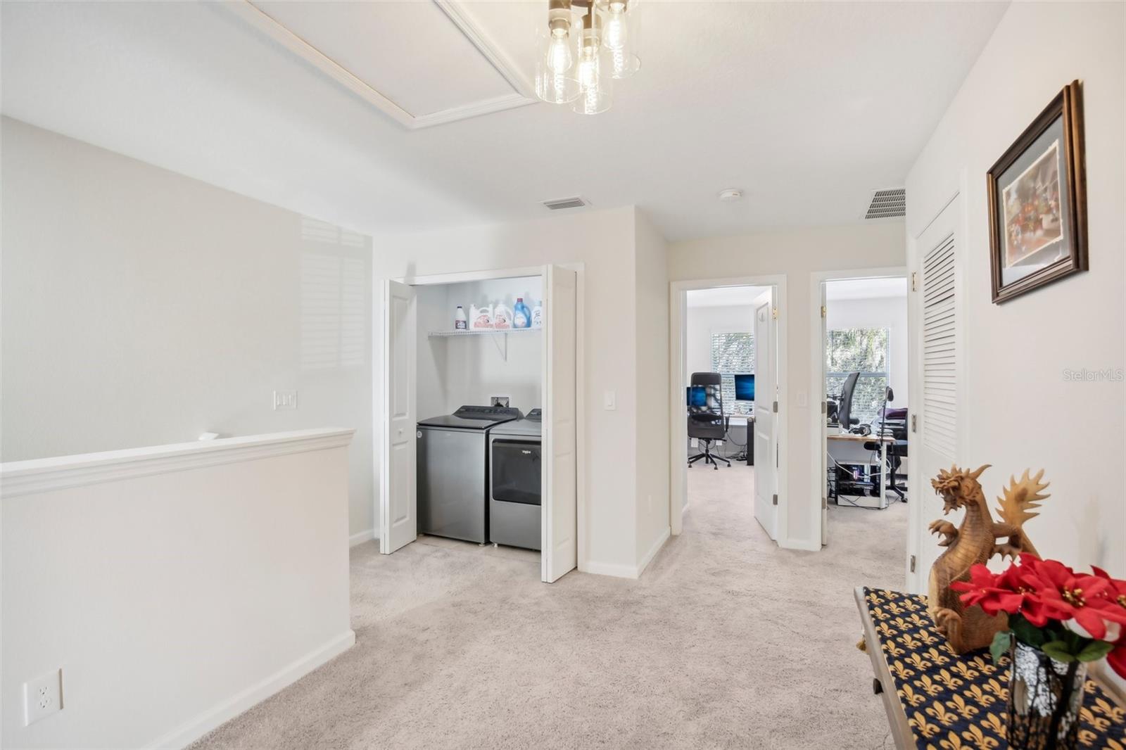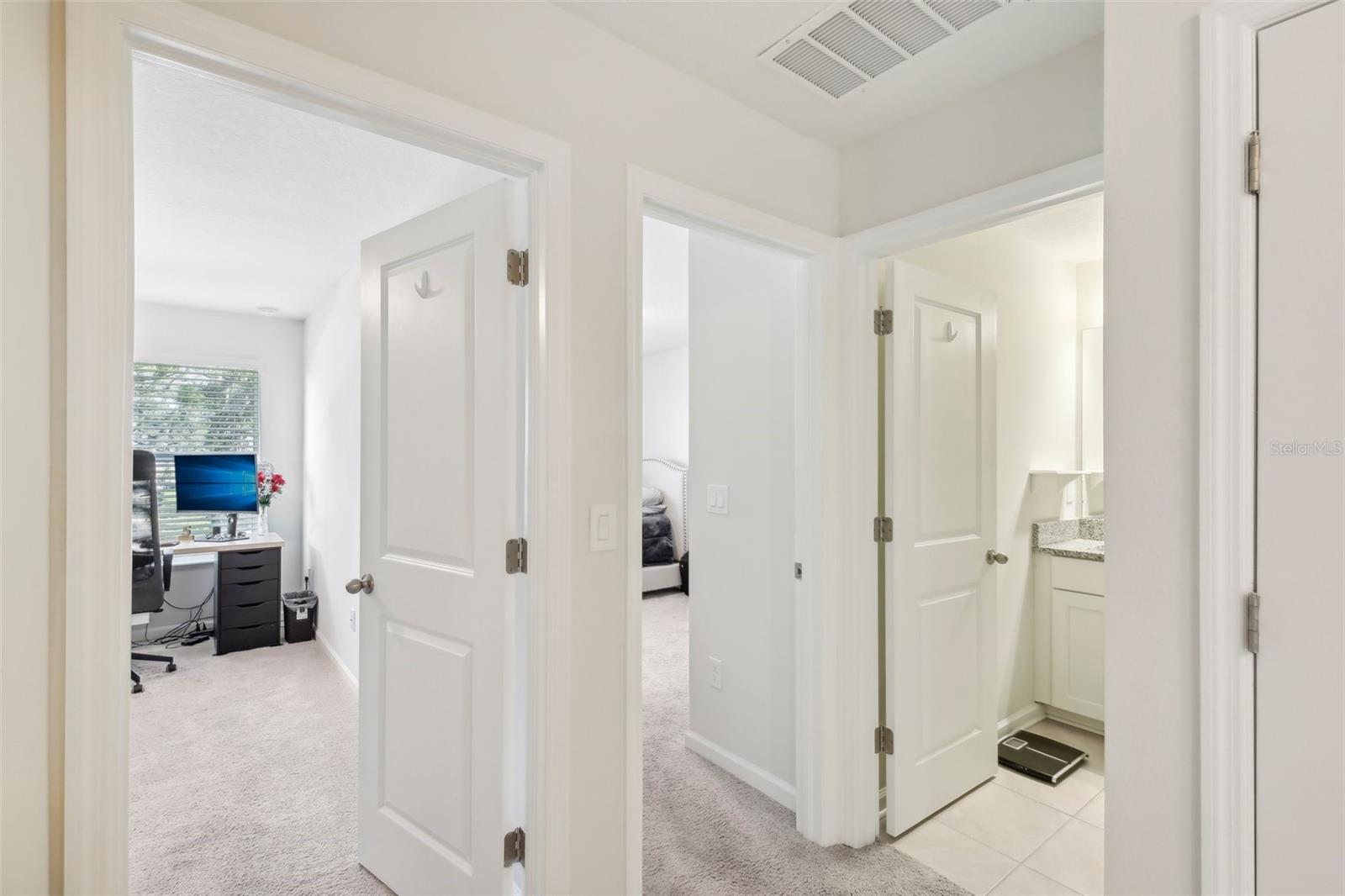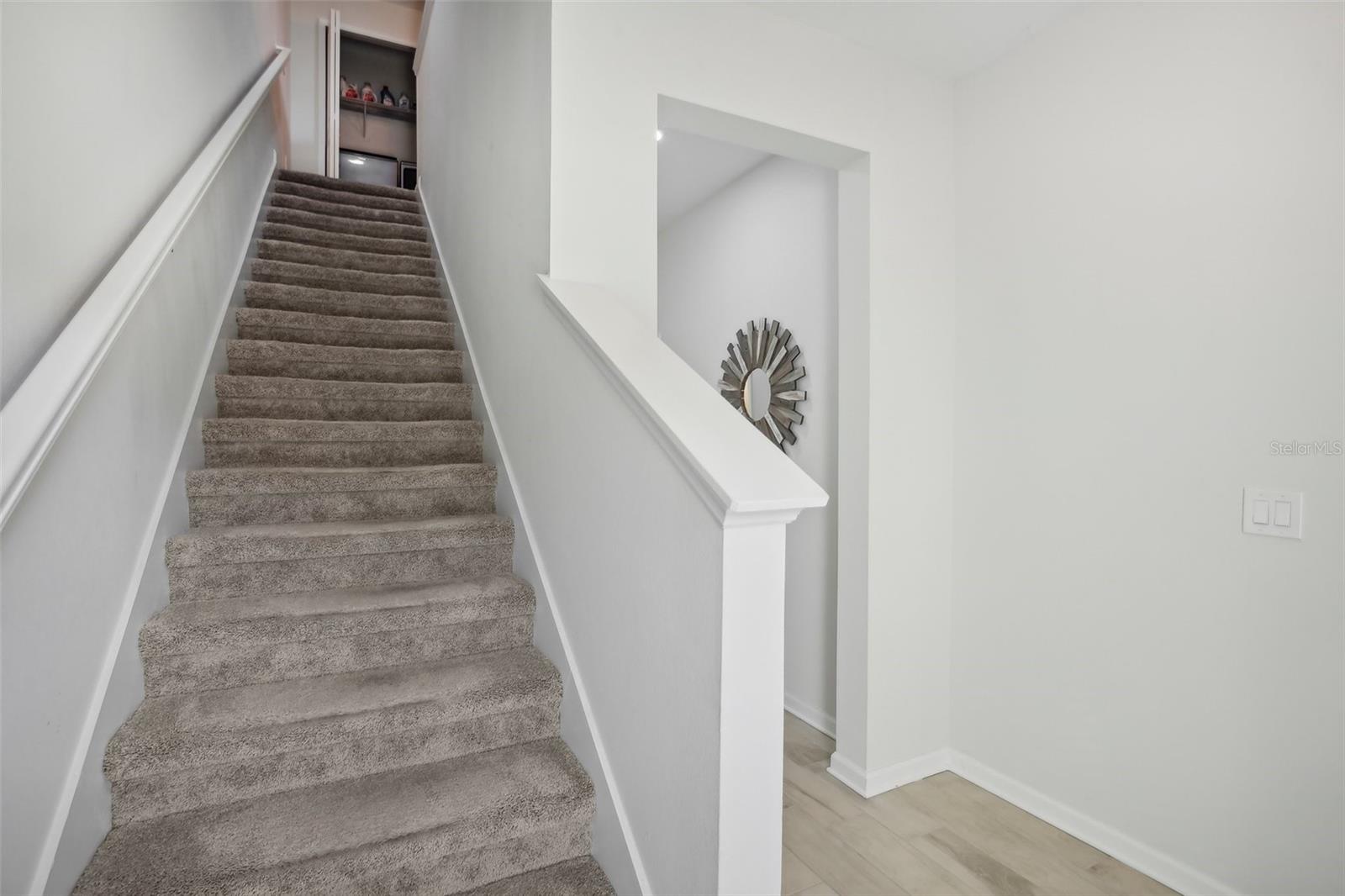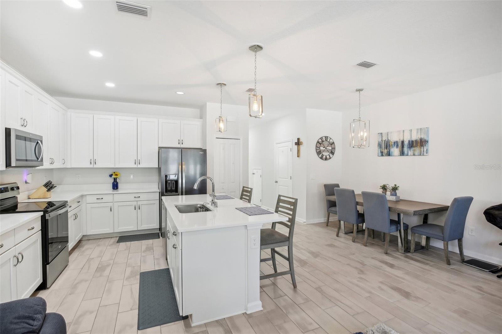 Welcome to this charming two-story townhome offering a seamless blend of comfort and modern style. Featuring an open floor plan, it’s ideal for both everyday living and entertaining. The one-car garage boasts sleek epoxy floors, with additional driveway space for two vehicles. Enjoy a peaceful outdoor retreat in the screened-in lanai, equipped with roll-down shades and no direct rear neighbors for added privacy. This home is in excellent condition. It has been well-maintained and shows as if it were brand new. Upstairs, the spacious primary suite impresses with a large walk-in closet. Two generously sized guest bedrooms ensure ample space for family or visitors, and a mini loft offers flexibility—perfect for a reading nook or home office. The laundry room is conveniently located upstairs, making household chores a breeze. Thoughtful upgrades, including stylish lighting fixtures, add to the home's appeal. Community amenities include a pool and a dedicated dog park, ensuring relaxation and recreation are just steps away. This townhome combines functional design with quality features in a desirable setting.