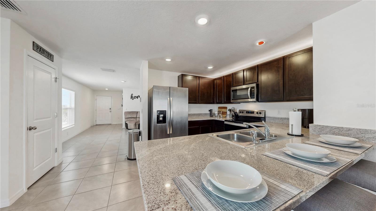 Seize the opportunity offered by the VA ASSUMABLE MORTGAGE WITH AN ENTICING 2.8% INTEREST RATE. Turn key, immaculately maintained, recently constructed 3-bedroom, 2-bathroom home with a 2-car garage, nestled within the tranquil cul-de-sac of Riverview's coveted Ridgewood community. Crafted with contemporary living in mind, this residence offers a spacious open-plan layout, with beautiful tile flooring throughout the living/family room, foyer, laundry room, and bathrooms. The kitchen comes with stainless steel appliances, granite countertops, a sizable island with extra seating for entertaining. The ample wood cabinetry and pantry provides an abundance of storage seamlessly flowing into the living space. The spacious owner's suite is a retreat unto itself, complete with a walk-in closet and an en-suite bath boasting a spacious double vanity and walk-in shower. Meanwhile, the two additional bedrooms on the opposite side of the home afford privacy and comfort for all occupants. You'll enjoy the shaded lanai at the rear of the house. Unwind, barbecue, and host gatherings in this inviting space. Noteworthy features of this residence include energy-efficient insulation, foam-injected block insulation, a premium upgraded whole house Wi-Fi enabled water softener system ($8K upgrade), and storm shutters ensuring both comfort and sustainability. Contact us for further information.The community amenities include a refreshing swimming pool, inviting cabana, and playground. Conveniently located just a short distance from I-75 or US 301, Riverview provides easy access to MacDill, Tampa, Sarasota, and the stunning Gulf Coast beaches. Noteworthy - This home didn't receive damage from the hurricanes! Low HOA of $16 per month! Don't miss the opportunity to make this exceptional property your own - schedule your showing today!