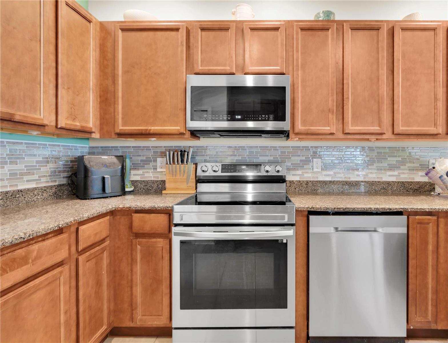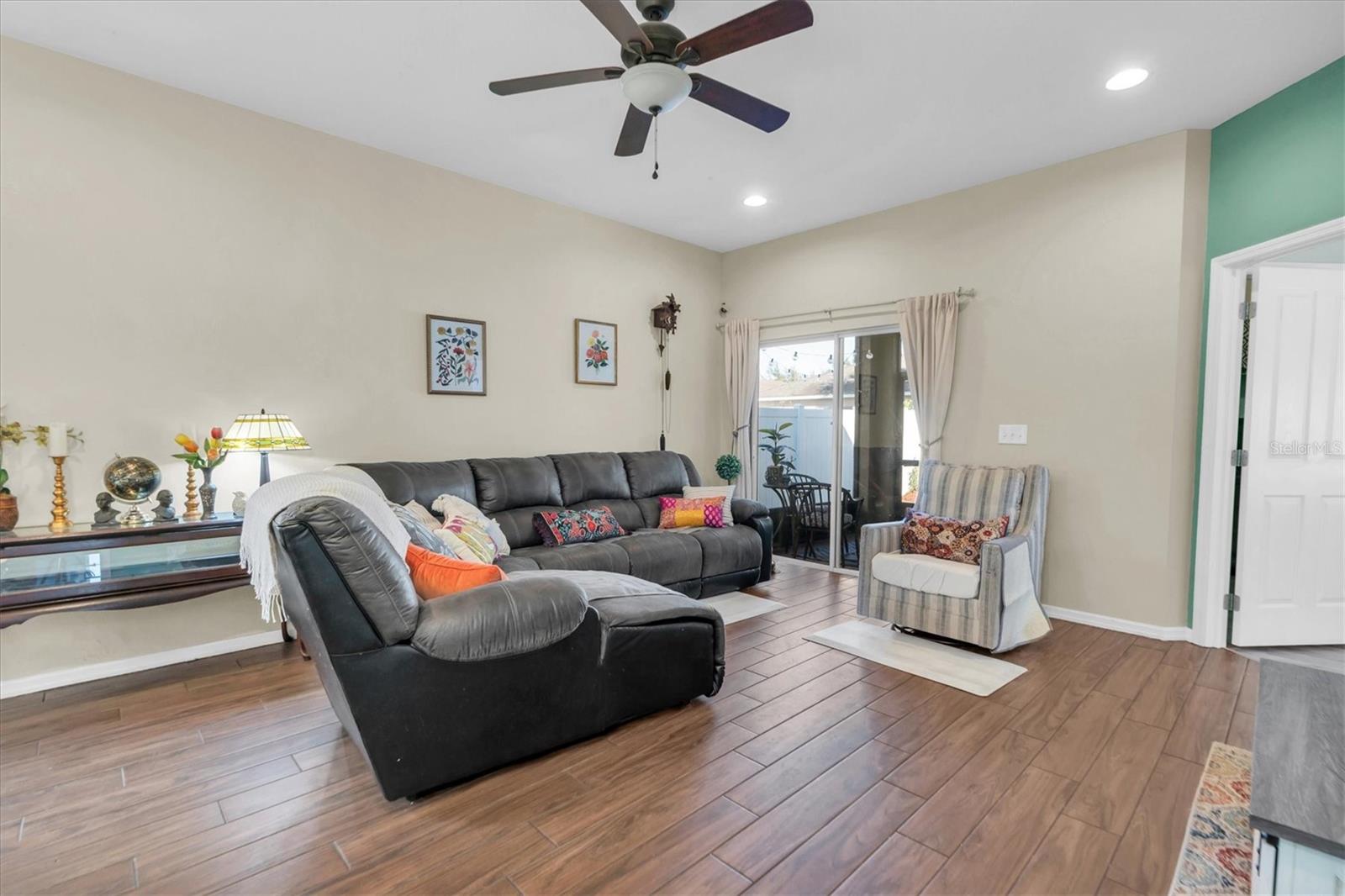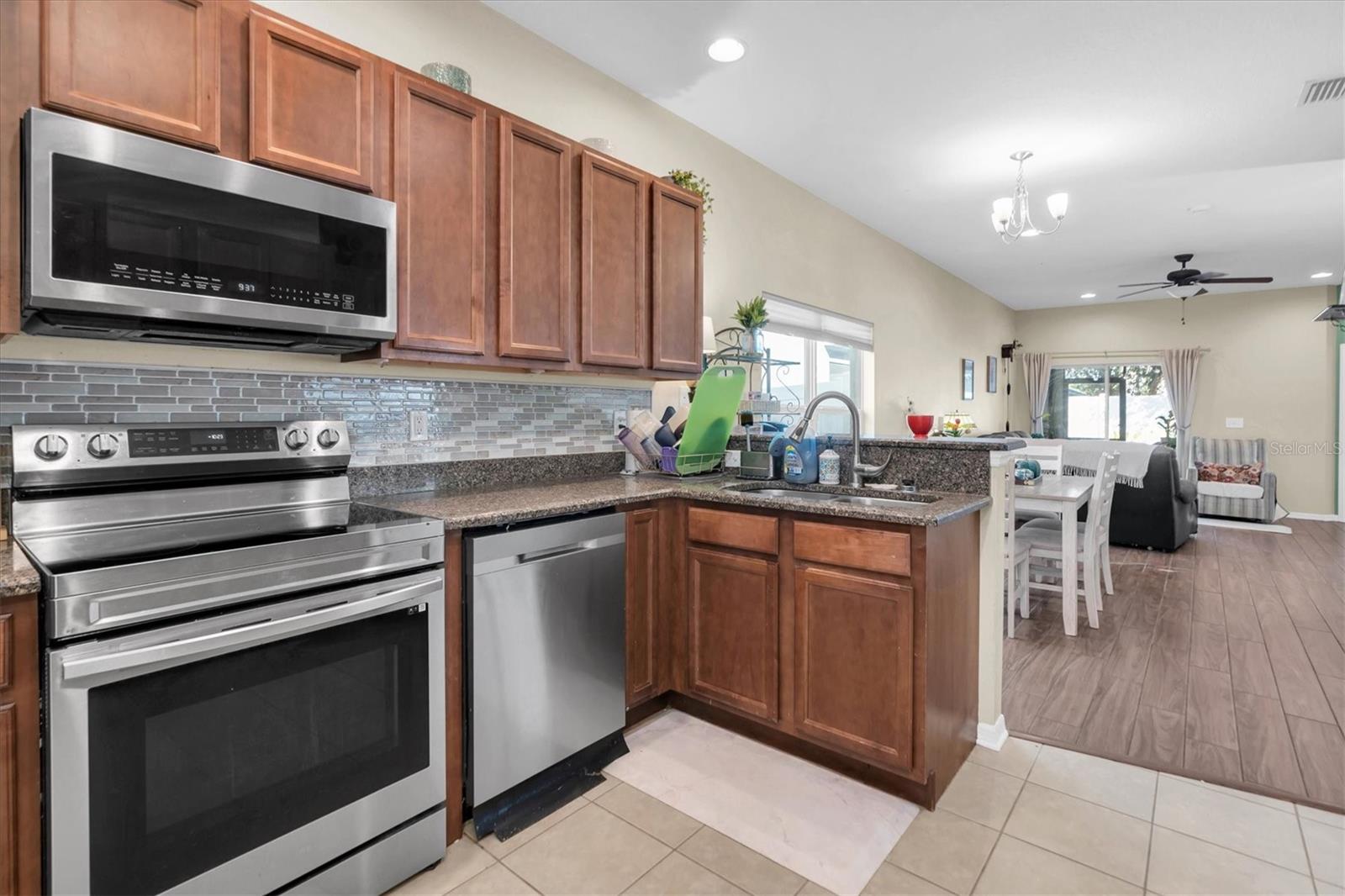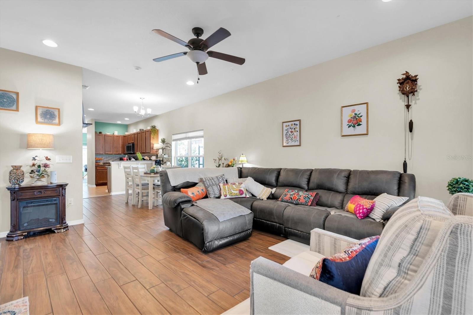 Situated in the established, master-planned community of PANTHER TRACE, live a life of comfort in Florida paradise. NO FLOOD ZONE and LOW HOA at LESS THAN $6 a MONTH! Offering 4 bedrooms and 2 baths, this OPEN CONCEPT home offers a thoughtfully designed split-floor plan with a GORGEOUS KITCHEN as the central focus of the home. It is well-appointed with plenty of cabinets / storage, newer STAINLESS-STEEL APPLIANCES PACKAGE (2022) and a breakfast bar. The kitchen flows perfectly to the dining room and a great room, making this area excellent for hosting and gathering. The primary bedroom is a place of comfort and relaxation with a WALK-IN CLOSET and primary en-suite bath while the SPACIOUS secondary bedrooms and bath are situated opposite the home for a true SPLIT FLOOR PLAN giving ample opportunity for privacy. Located on a lot with mature landscaping and PROPERTY FENCING, this home checks all the boxes! ENJOY OUTDOOR LIVING AT IT BEST year-round with the COVERED, ENCLOSED LANAI! Sliding doors open from the great room to the covered, exterior living space offering a seamless flow for entertainment. UPGRADES AND UPDATING include newer kitchen appliances (2022), new washer and dryer (2023), new garage door opener (2024), routine HVAC servicing, and solar panels system which may be transferrable to new owners resulting in energy bills at ONLY $180 each month. Panther Trace is one of Tampa Bay's most desirable neighborhoods. Meet neighbors easily at one of the many community events or at the beautiful community pool & shaded playgrounds just around the corner. SPORTS COURTS are among the many amenities including basketball, volleyball, tennis and an open field to practice and play! You can even reserve the clubhouse for a private party! Enjoy strolls through the gorgeous neighborhood offering a quieter way of life or venture out to the walking / bike paths leading to grocery stores and restaurants in either direction. Near EXCELLENT SCHOOLS including THE NEW A-Rated Collins PreK-8 School allowing for minimal transitions between grade levels for elementary / middle schoolers as well as one-of-a-kind sports / recreation fields and facilities and academic programs or take advantage of one of the many charter, school choice or private education options. A new VA hospital, St. Joseph's hospital, esteemed medical clinics colleges, and universities, as well as dining and shopping are only minutes away. Commutes are reasonable with easy access to major highways and expressways. Live a true Florida lifestyle close to world-renowned GULF BEACHES, parks, nature preserves and springs, world champion sports leagues and magical theme parks! Appropriately priced, this home is ready now!