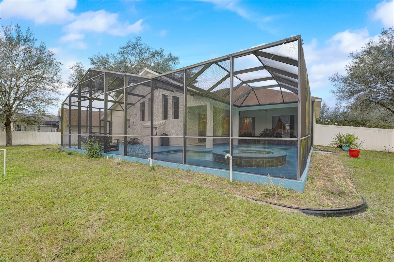 Welcome to this exquisite 4-bedroom, 3-bathroom, 3-car garage POOL home nestled in the coveted Creekside community! Set on nearly 1/2 acre, **NEW ROOF** revel in stunning pool views and serene conservation. The expansive lanai is perfect for entertaining. With charming curb appeal, an extended driveway, and double door entry, this home welcomes you. Step inside to find a meticulously maintained and updated luxury home. Enjoy formal living and dining areas, along with a private office/den. The chef's kitchen features granite countertops, 42" wood cabinets, stainless steel appliances, GAS stove, and a custom panoramic window in the breakfast nook. The kitchen flows into a spacious living room with vaulted ceilings, custom windows, plus POCKET sliding doors to the lanai. The master suite offers privacy, with TWO walk-in closets and an ensuite boasting dual vanities, granite countertops, garden tub and a frameless glass shower. Two bedrooms share a jack and jill bath, while the fourth bedroom, ideal for guests or an in-law suite, has its own full bath and outdoor access. Ample storage throughout, oversized laundry room, and a 3-car garage with additional storage. Plus, a central vacuum, Culligan water softener, and NEW ROOF installed in 3/2024. The fenced backyard offers privacy. This gated community permits standalone garage or storage units and boat/leisure craft storage. Conveniently located in Riverview, minutes away from Fishhawk's town center with tons of activities and zoned for Newsome High School! This home is truly one of a kind! Call today for your private showing!