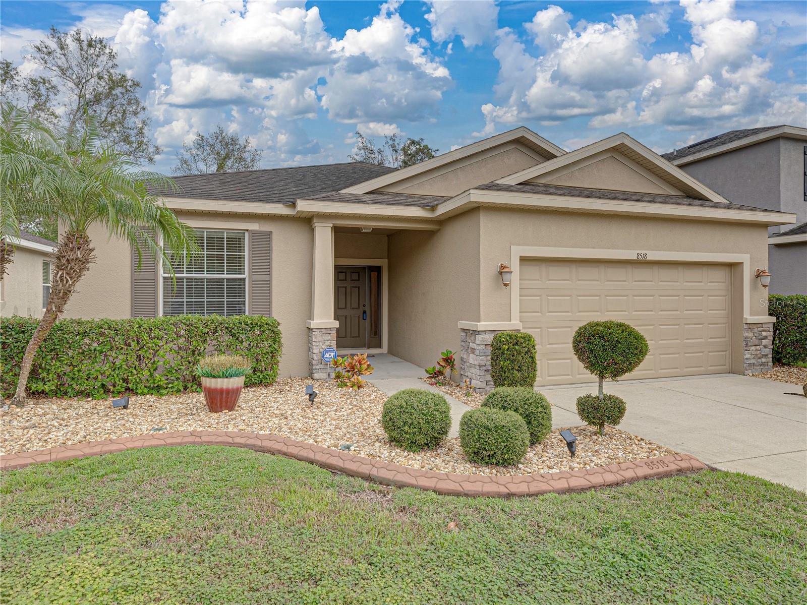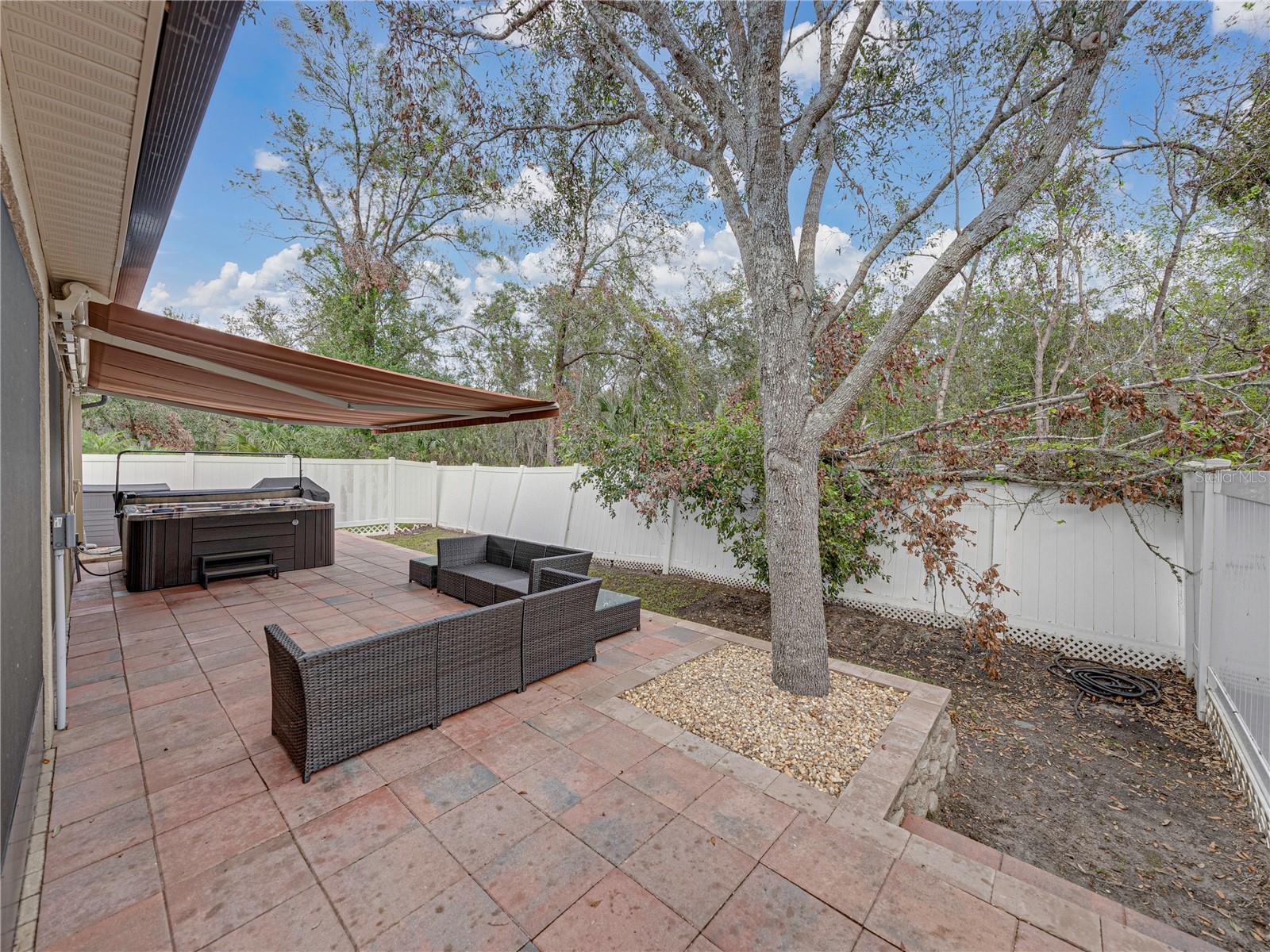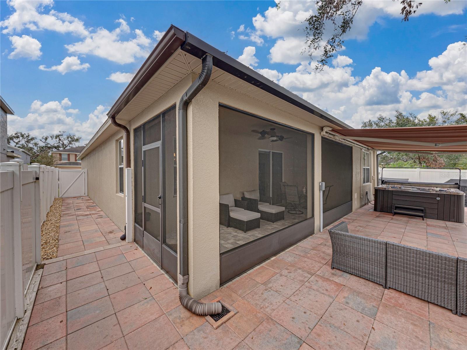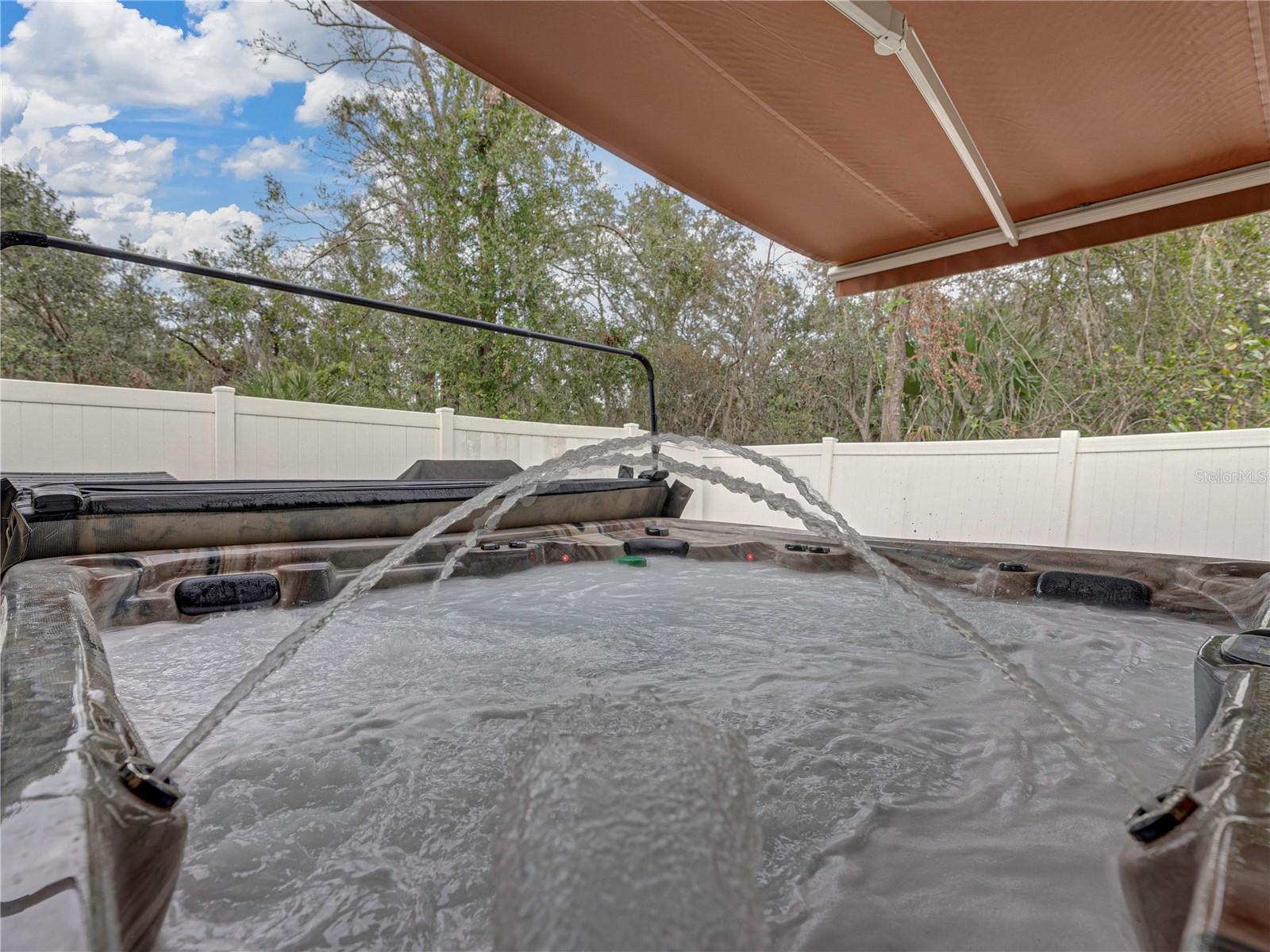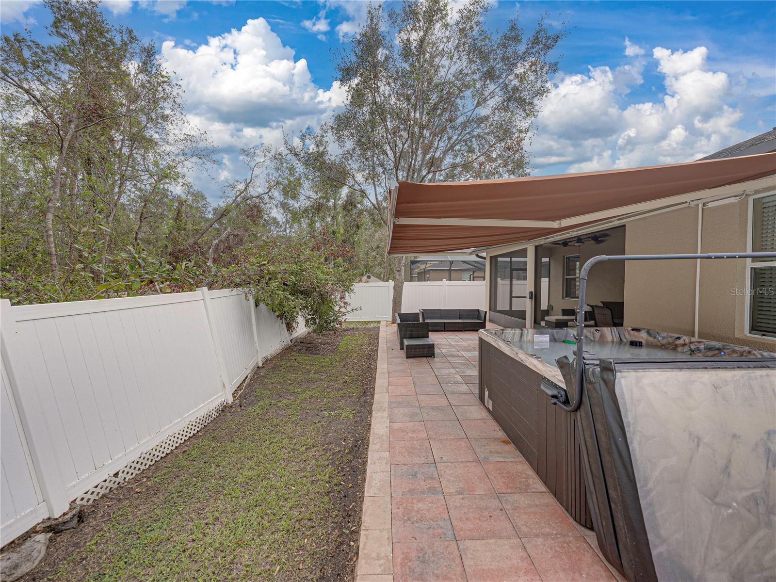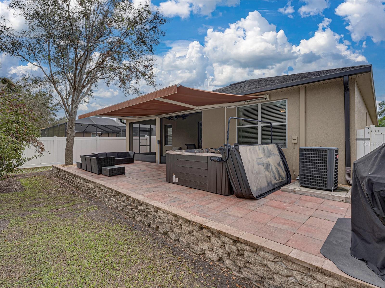 Immaculately Maintained Home in Riverplace with a BRAND NEW ROOF!!! NO CDD!! Welcome to your dream home! This beautifully maintained property offers a spacious and open living/dining/kitchen floor plan that seamlessly extends to an expansive screened lanai. Perfect for entertaining or relaxing, the lanai leads to a raised deck in the fenced backyard, featuring a luxurious hot tub with dual motors, 56 jets, lighting, waterfall, and fountain. Enjoy the privacy of no backyard neighbors and the comfort of a large retractable awning that lights up, providing wonderful shade and cooling the entire house. Inside, you’ll find tile flooring throughout the main living areas and wet areas, ensuring easy maintenance and a sleek look. The primary bedroom is a true retreat with an en suite bath that includes a large soaking tub, separate shower, and dual sinks. The kitchen is a chef’s delight, boasting an island with seating for four, a large pantry, and a convenient coffee station. Additional features include a direct wire in the garage for a generator plug-in, perfect for stormy days when power outages occur. Nestled in the private neighborhood of Riverplace, this home offers tranquility and convenience with no CDD fees. All schools are conveniently located with bus pickup in the neighborhood. Don’t miss out on this exceptional home that has everything you need and more. Schedule your showing today!