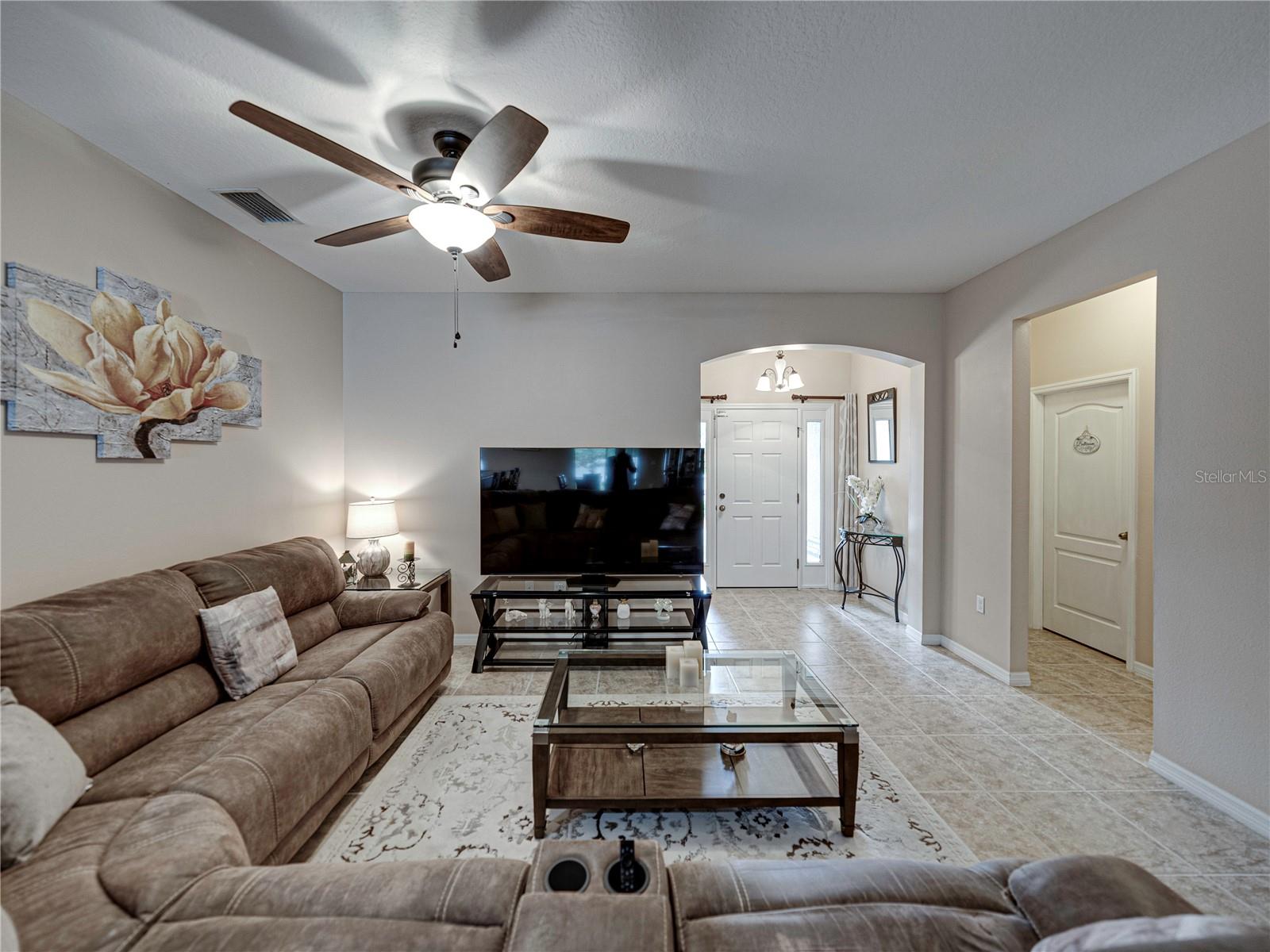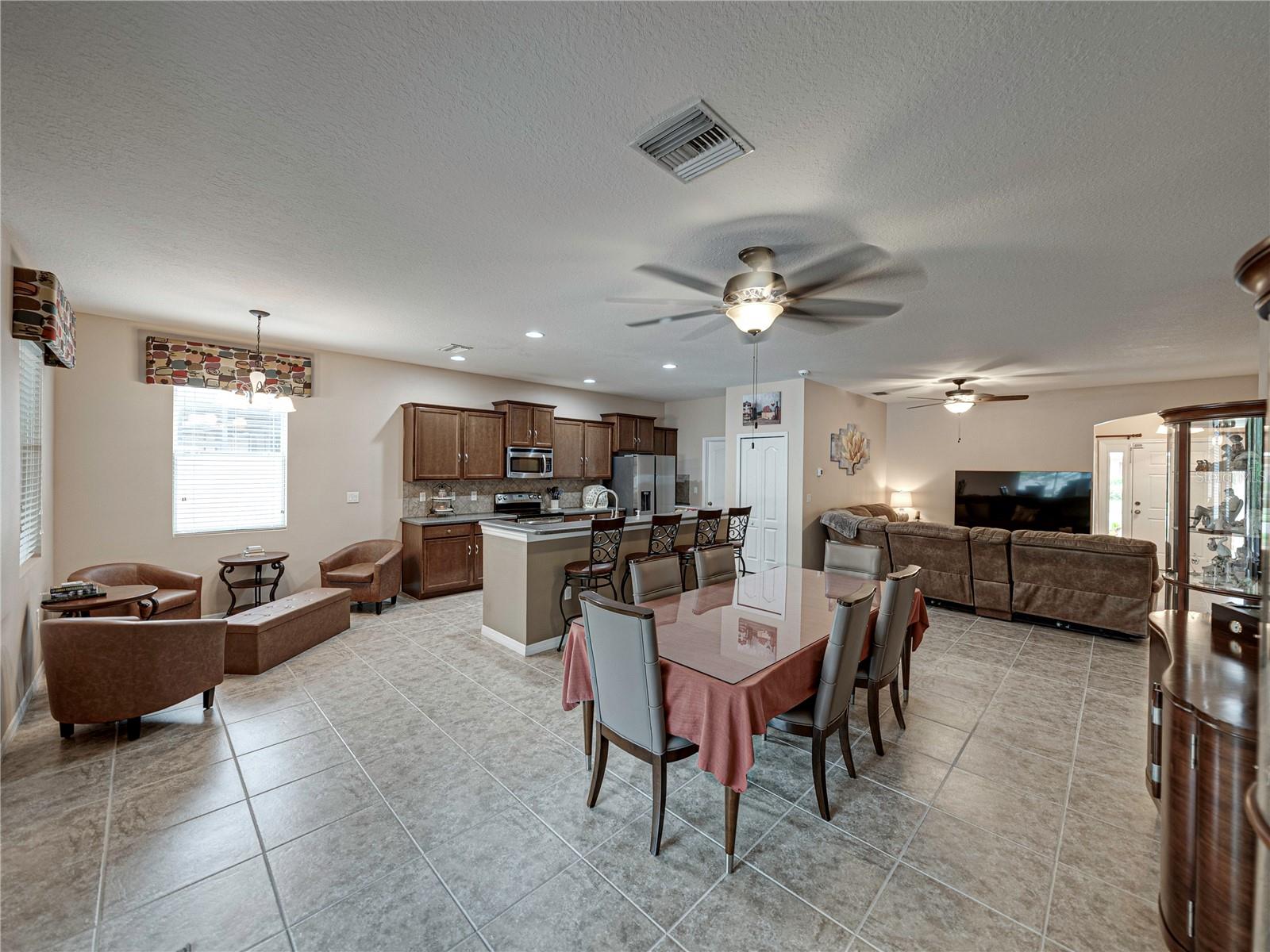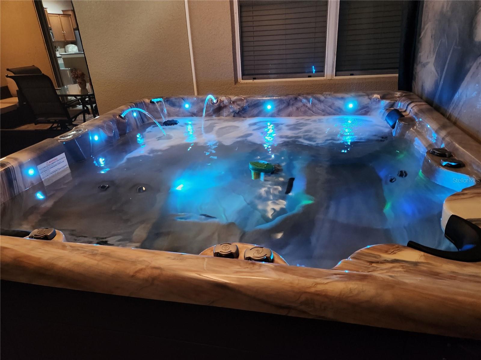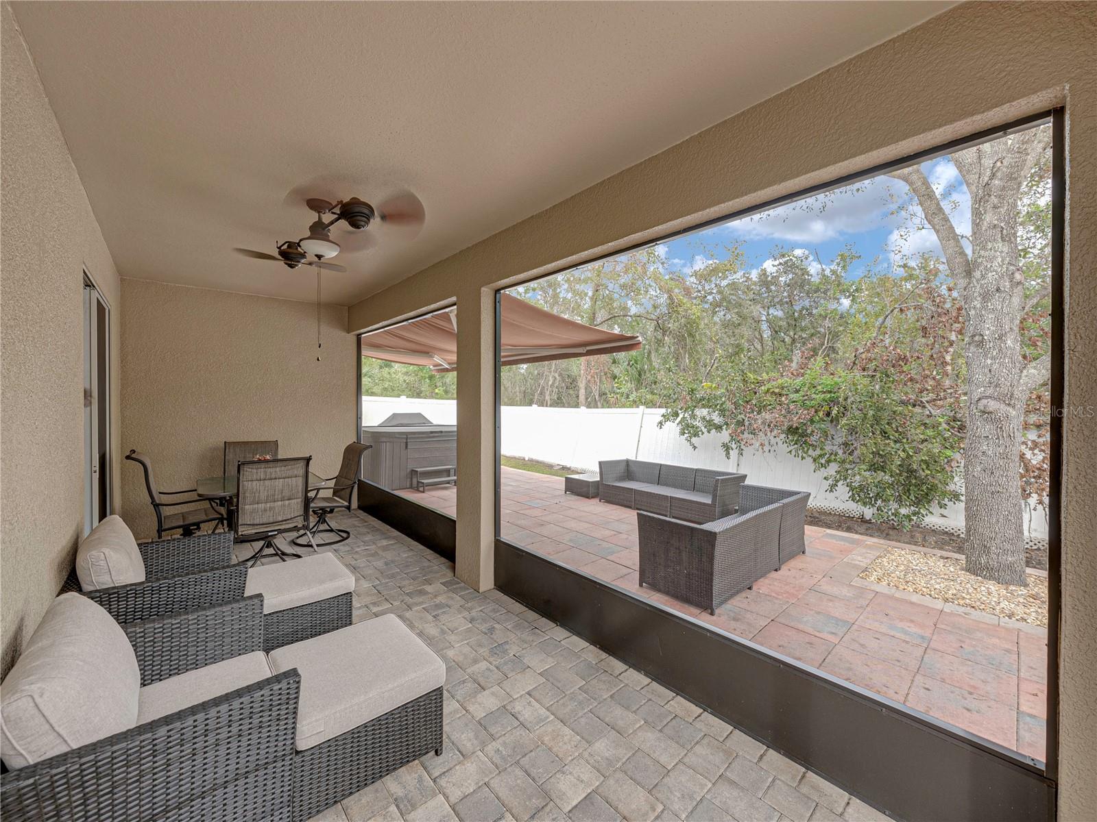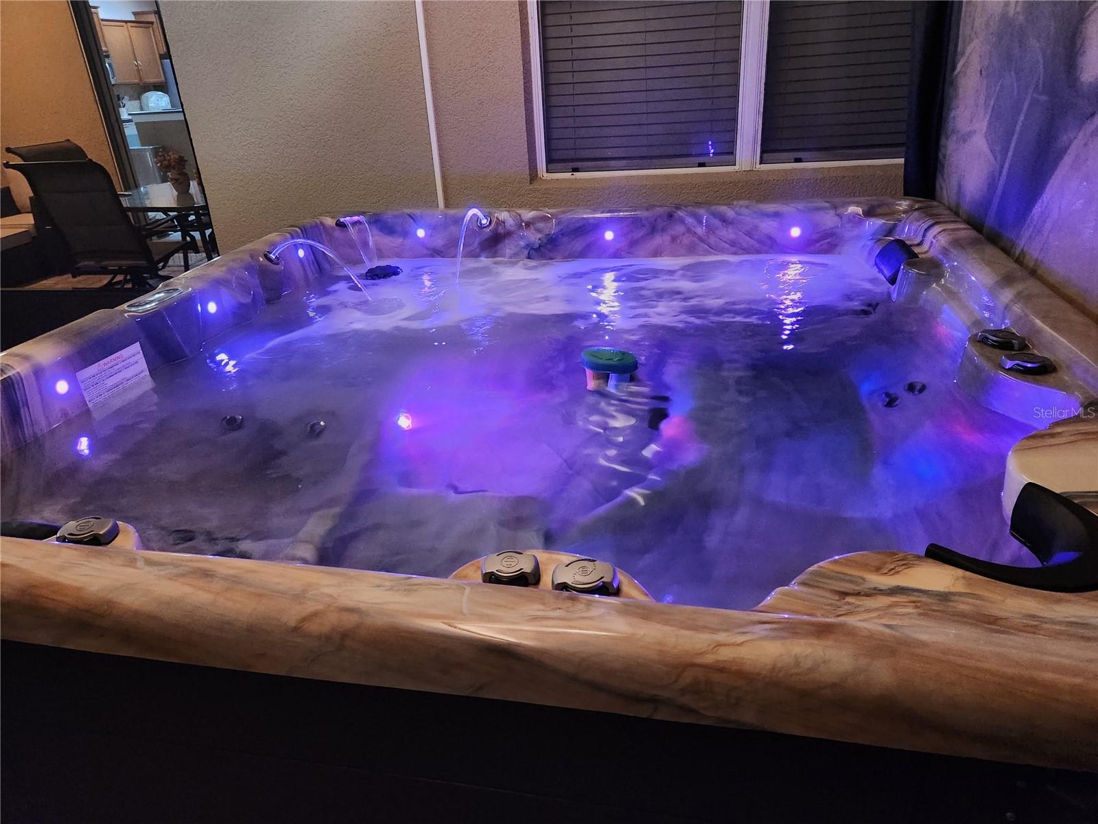 Immaculately Maintained Home in Riverplace with a BRAND NEW ROOF!!! NO CDD!! Welcome to your dream home! This beautifully maintained property offers a spacious and open living/dining/kitchen floor plan that seamlessly extends to an expansive screened lanai. Perfect for entertaining or relaxing, the lanai leads to a raised deck in the fenced backyard, featuring a luxurious hot tub with dual motors, 56 jets, lighting, waterfall, and fountain. Enjoy the privacy of no backyard neighbors and the comfort of a large retractable awning that lights up, providing wonderful shade and cooling the entire house. Inside, you’ll find tile flooring throughout the main living areas and wet areas, ensuring easy maintenance and a sleek look. The primary bedroom is a true retreat with an en suite bath that includes a large soaking tub, separate shower, and dual sinks. The kitchen is a chef’s delight, boasting an island with seating for four, a large pantry, and a convenient coffee station. Additional features include a direct wire in the garage for a generator plug-in, perfect for stormy days when power outages occur. Nestled in the private neighborhood of Riverplace, this home offers tranquility and convenience with no CDD fees. All schools are conveniently located with bus pickup in the neighborhood. Don’t miss out on this exceptional home that has everything you need and more. Schedule your showing today!
