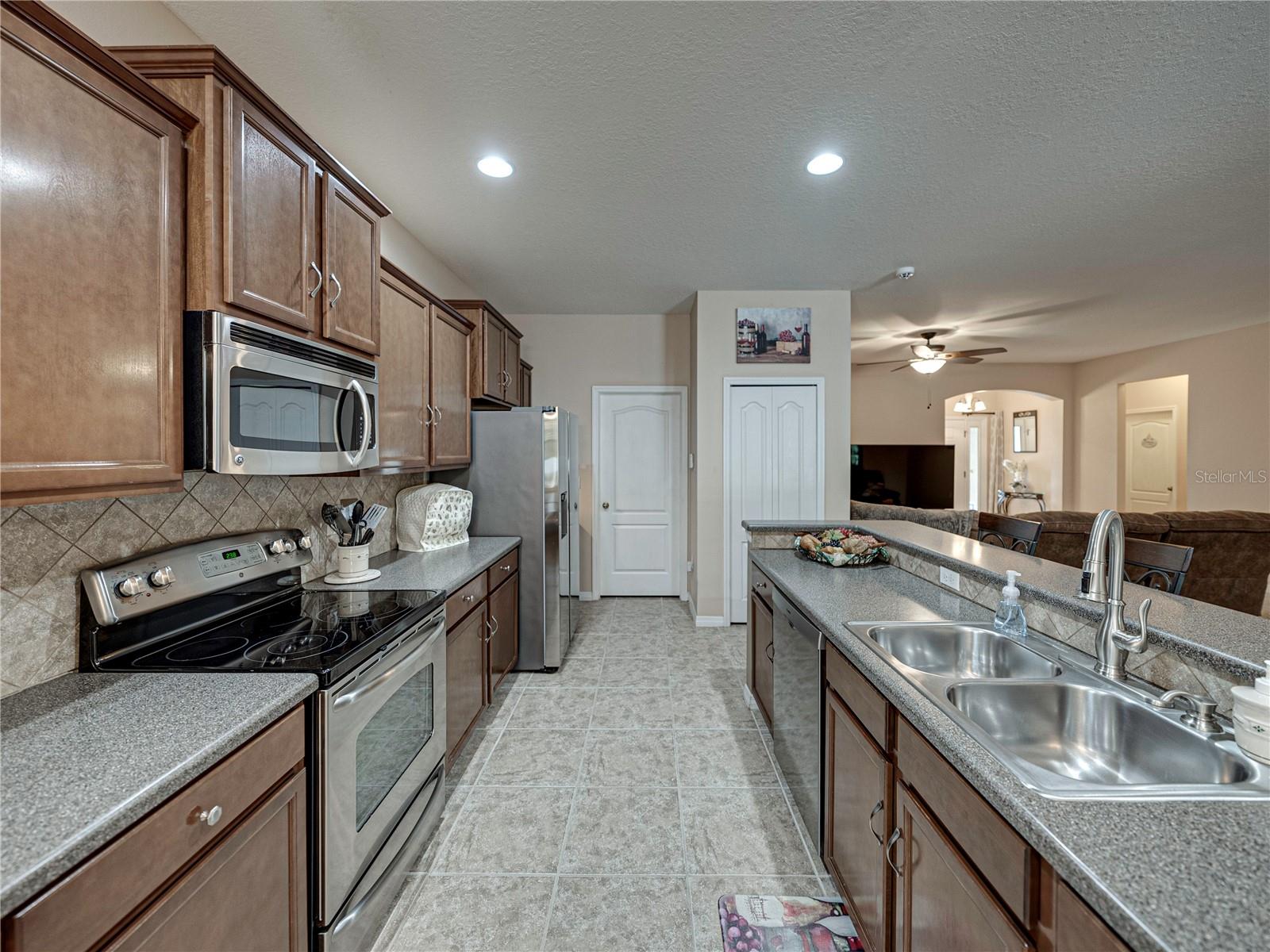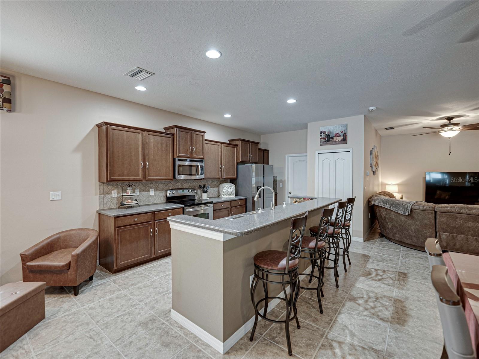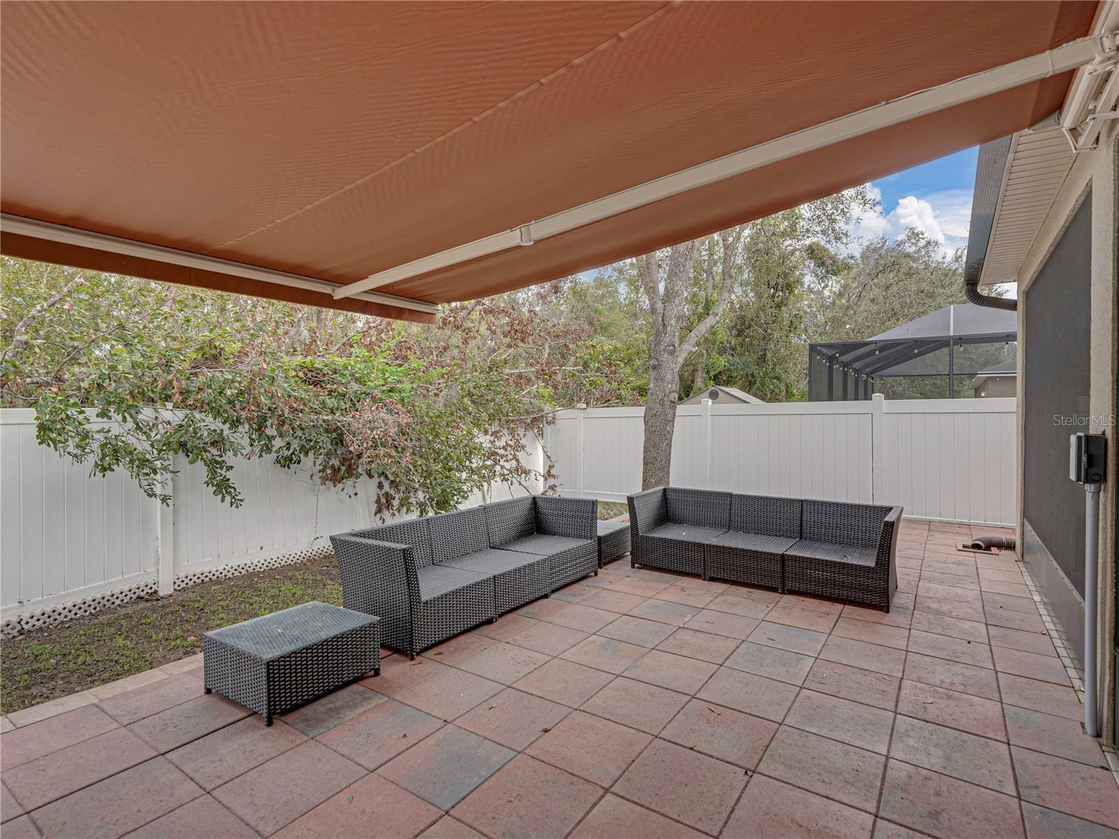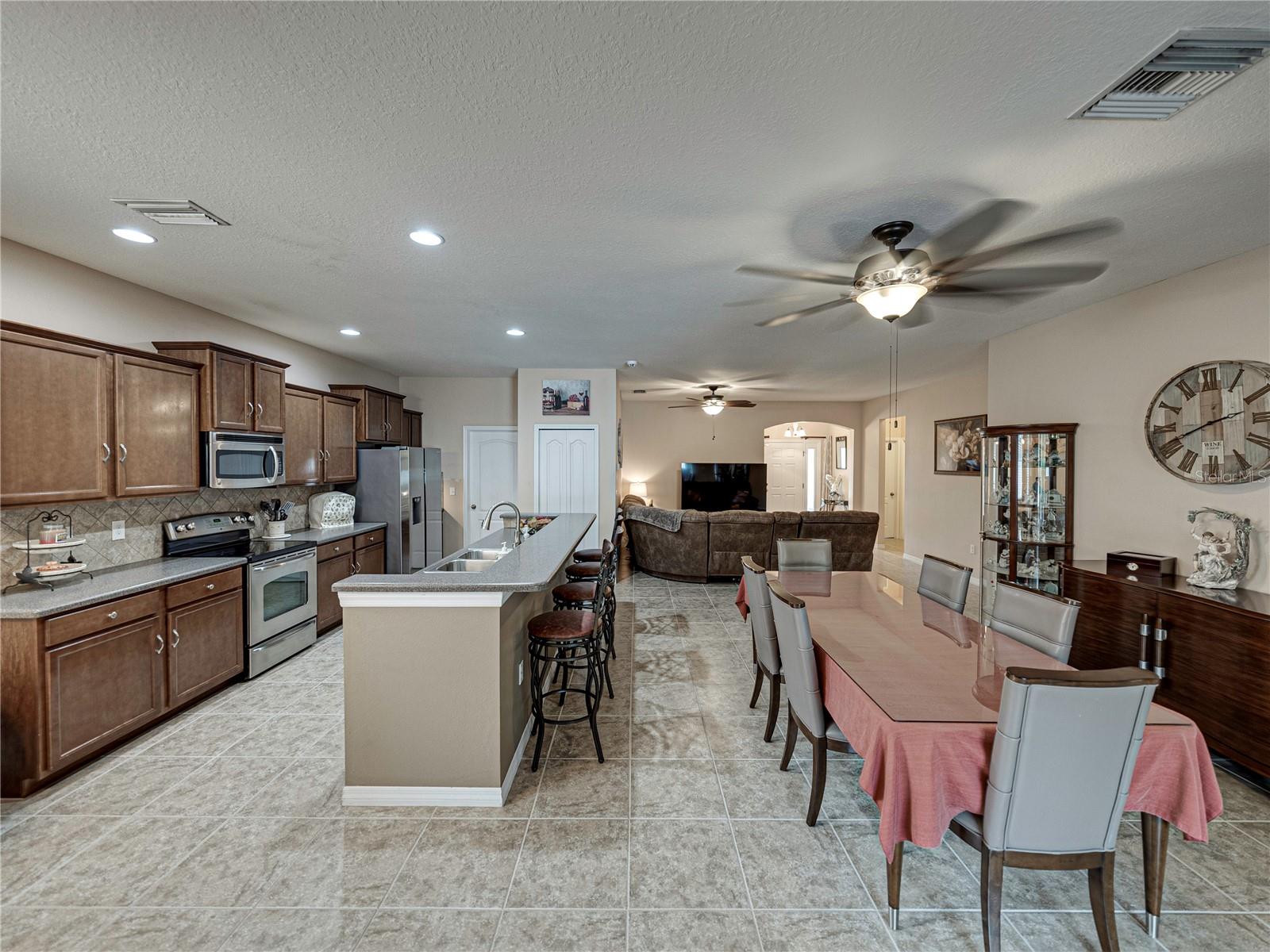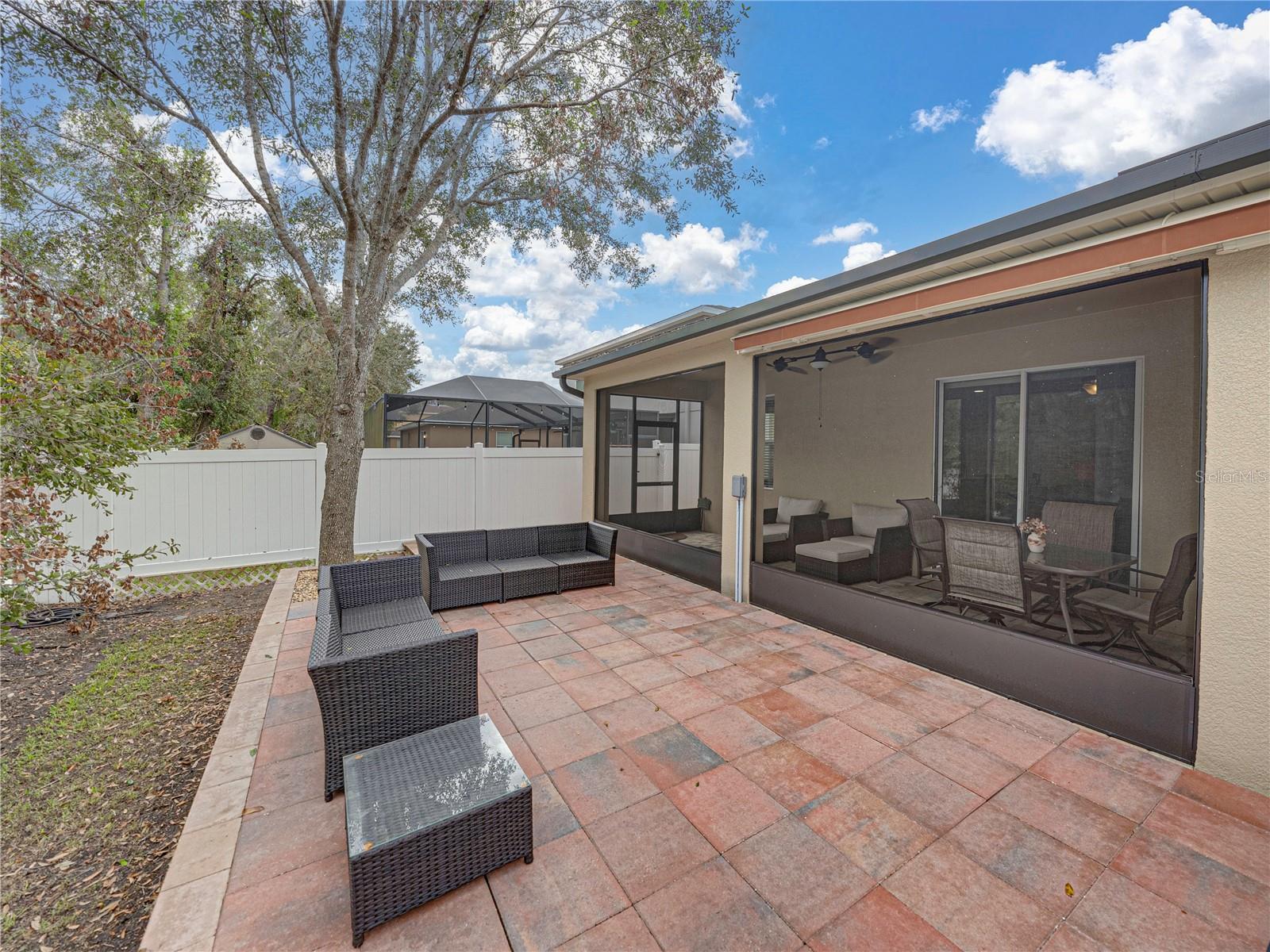 Immaculately Maintained Home in Riverplace with a BRAND NEW ROOF!!! NO CDD!! Welcome to your dream home! This beautifully maintained property offers a spacious and open living/dining/kitchen floor plan that seamlessly extends to an expansive screened lanai. Perfect for entertaining or relaxing, the lanai leads to a raised deck in the fenced backyard, featuring a luxurious hot tub with dual motors, 56 jets, lighting, waterfall, and fountain. Enjoy the privacy of no backyard neighbors and the comfort of a large retractable awning that lights up, providing wonderful shade and cooling the entire house. Inside, you’ll find tile flooring throughout the main living areas and wet areas, ensuring easy maintenance and a sleek look. The primary bedroom is a true retreat with an en suite bath that includes a large soaking tub, separate shower, and dual sinks. The kitchen is a chef’s delight, boasting an island with seating for four, a large pantry, and a convenient coffee station. Additional features include a direct wire in the garage for a generator plug-in, perfect for stormy days when power outages occur. Nestled in the private neighborhood of Riverplace, this home offers tranquility and convenience with no CDD fees. All schools are conveniently located with bus pickup in the neighborhood. Don’t miss out on this exceptional home that has everything you need and more. Schedule your showing today!