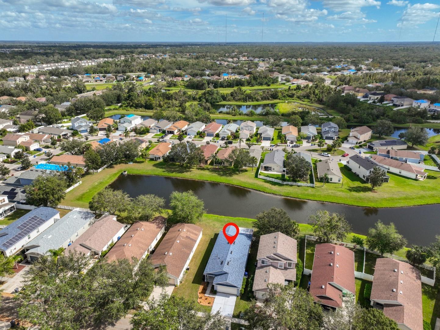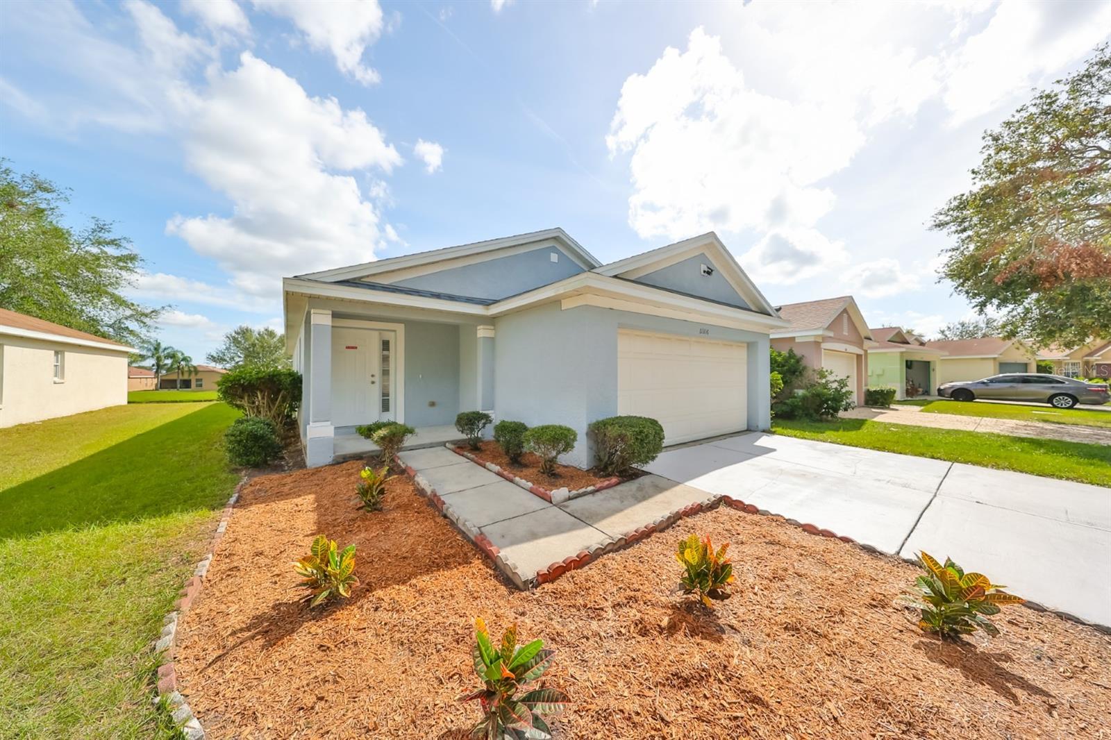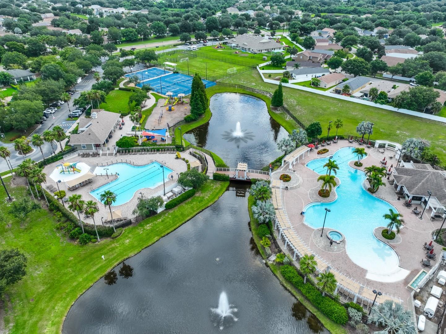 Welcome to Rivercrest, where scenic, tree-lined streets and fantastic community amenities create a charming neighborhood feel! This warm and inviting 3-bedroom, 2-bathroom home with a 2-car garage with NEWER ROOF 2023, features a desirable split floor plan, offering privacy with a secluded master suite. The home boasts beautiful floors, high ceilings, enjoy the screened back patio with a view of the tranquil pond. Rivercrest amenities include basketball courts, a playground, and two pools one with a splash pad for family fun and another resort-style pool for relaxation. Outdoor kitchens with BBQ rentals near the resort pool, a cozy fire pit, and ponds for seasonal catch-and-release fishing make this community feel like a retreat. Located conveniently close to I-75 and Highway 301, you'll have easy access to Tampa and Sarasota. Don't miss out?schedule your viewing today!