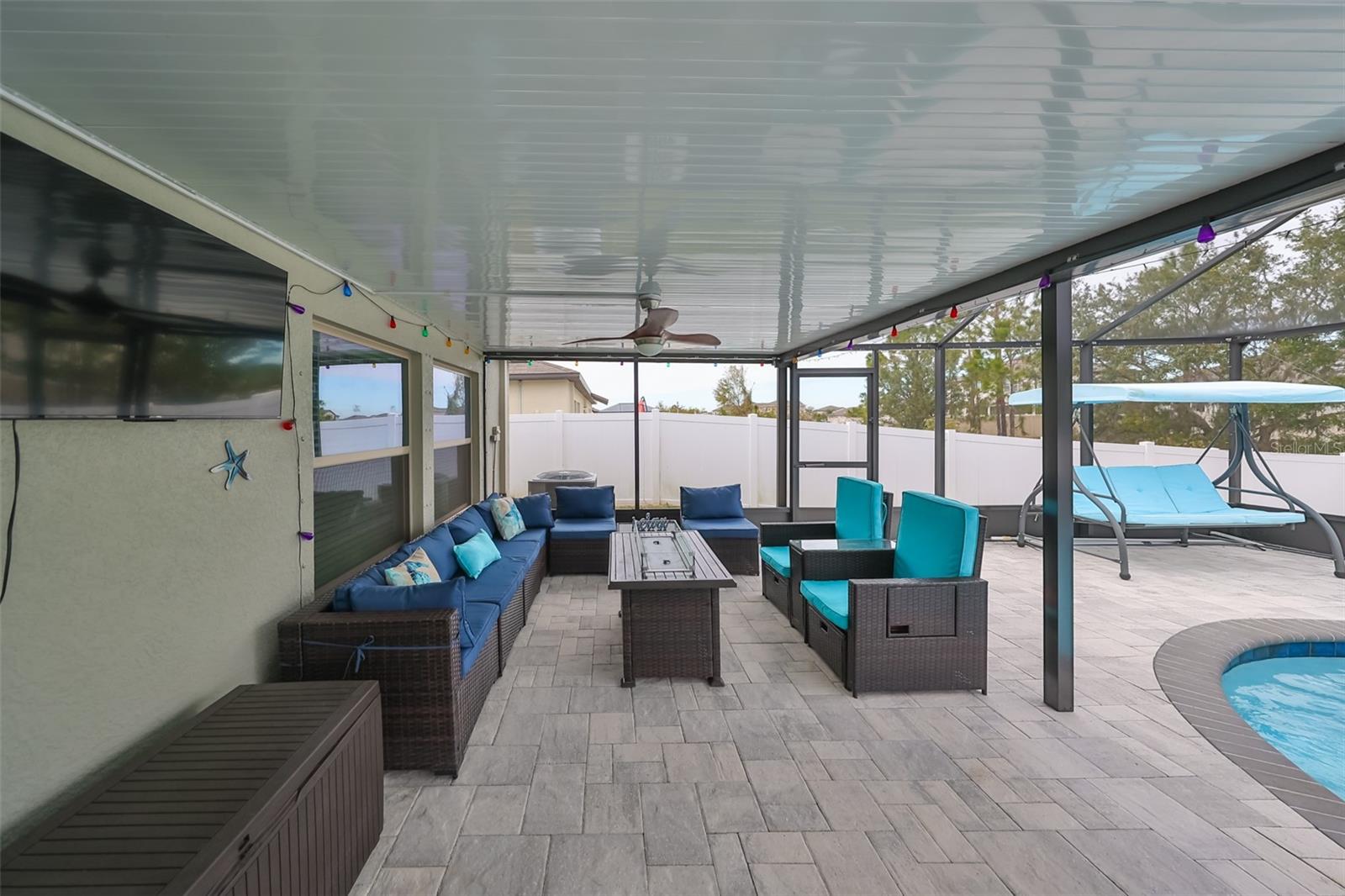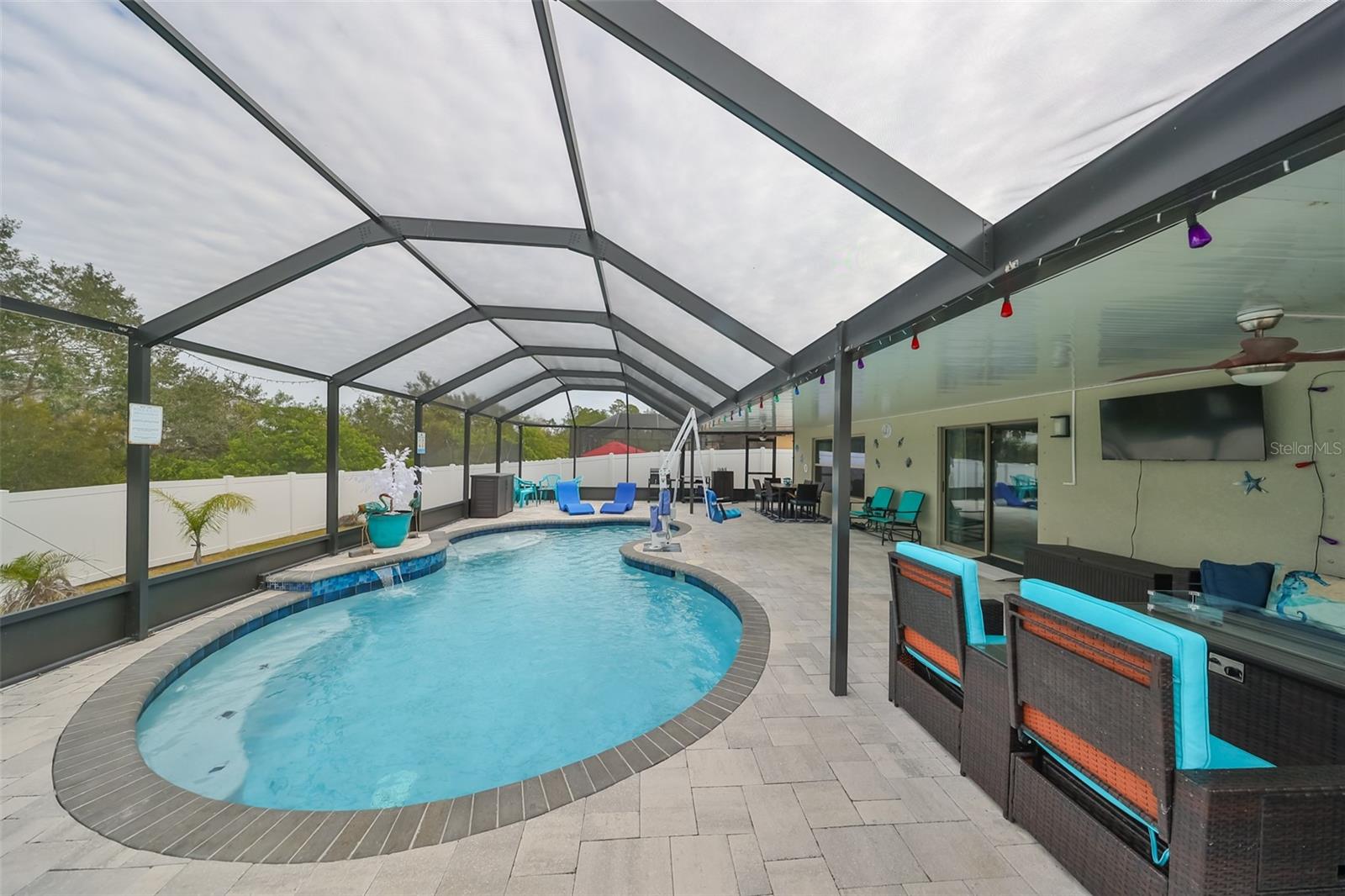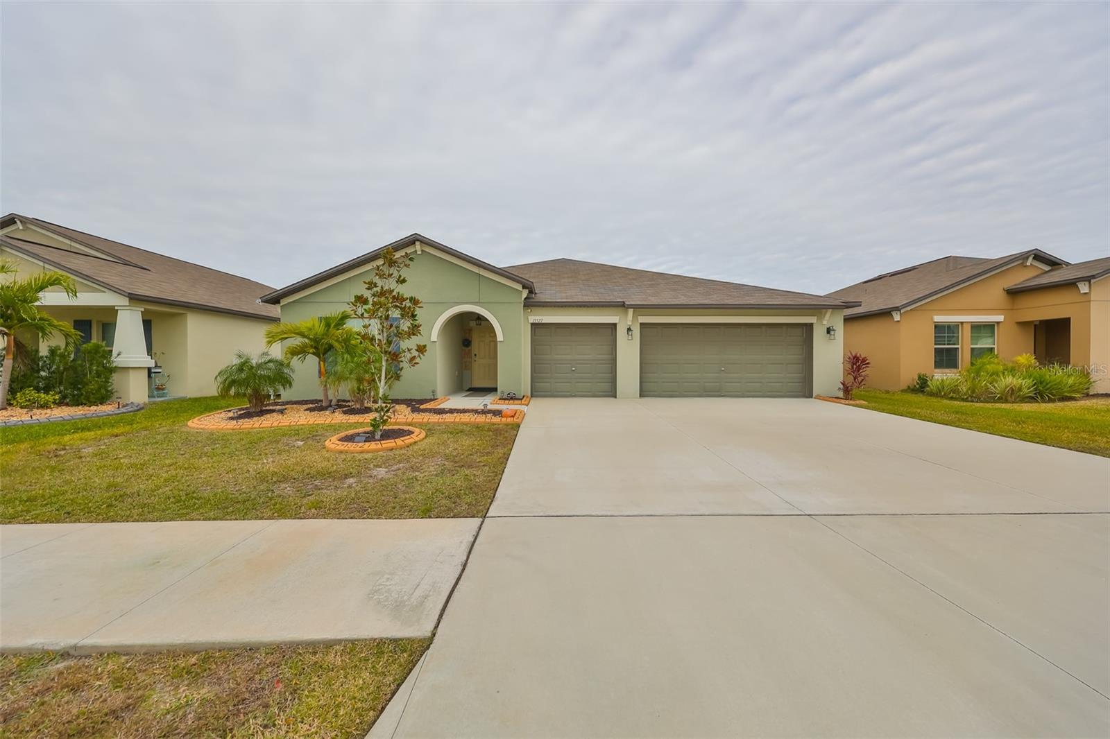* PRICE REDUCTION* If you wanted an up-to-date large one floor pool home, look no more! This sprawling ranch in Sunstone Ridge with 4 bedrooms, 3 baths with an in-law suite and a flex room now can be yours! 3 years young, it's just a dream home. Enter the foyer and two bedrooms and full bath are right there for your guests. Continue down the hall and the in-law suite is just past the laundry on your right with a private bedroom and bath. Ahead of you is the bright and expansive Great Room with the sliders and pool view and the Chef's Kitchen with cabinets galore, granite counters, huge cooking and serving island and a very large walk-in pantry where you can stock enough stuff for weeks! The Primary Suite is off to the right, and also has that relaxing pool view. Your privacy is assured in the Primary bedroom as it is secluded from the rest of the home. Primary bath with dual sinks and walk-in closet makes it a perfect refuge. The large Flex Room can be a study, home office, formal dining room, media room or whatever you'd like it to be. Through the sliders there's your own private kidney shape pool with two waterfalls, a bubbler and a chair lift! The screened lanai is so large that it will be your entertainment and party place! The lanai has room for an entire outdoor set, an outdoor dining set and a 2nd outdoor set! The popular South Fork III community has an outdoor pool, basketball court, playground, tot lot, and walking trails too. NOTE: taxes (including CDD) are not-homestead, no exemptions. Hillsborough County Property Assessor site estimates tax at $7,505.31- $8,958.98 if homesteaded for new buyer(s). What are you waiting for?