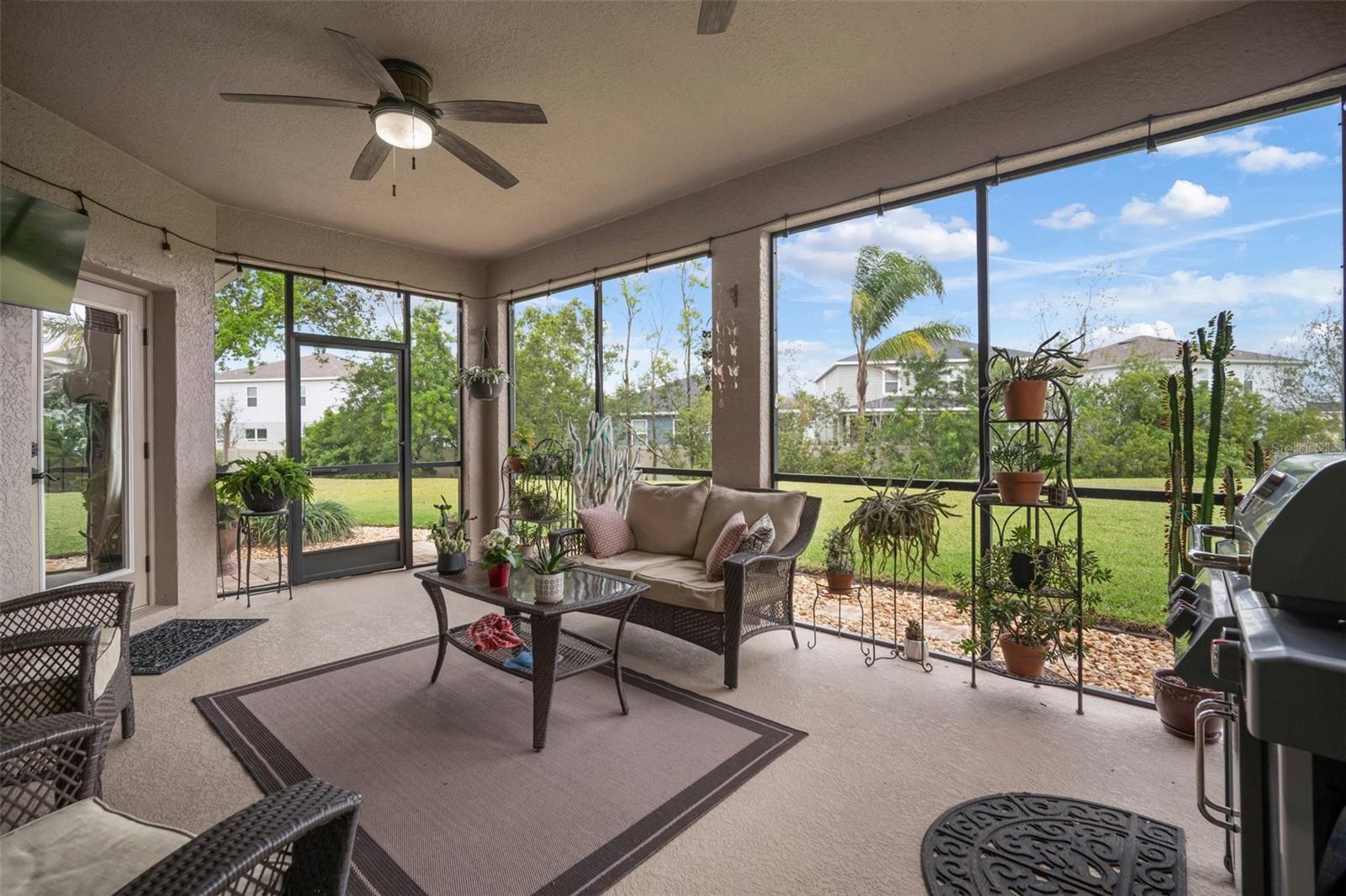 Seller is offering up to 2% toward buyer closing costs or interest rate buy-down with an acceptable offer—an incredible opportunity for added value in one of Riverview’s most desirable neighborhoods! This stunning 4-bedroom, 3-bathroom home sits on an oversized corner lot and features a spacious 3-car garage, open-concept layout, hardwood floors in the main living areas, and flexible living spaces throughout. The chef’s kitchen includes 42” maple cabinetry, solid surface counters, and a large pantry, all overlooking the breakfast nook and family room with built-in ceiling speakers for an enhanced audio experience. The primary suite includes a sitting area, walk-in closet, and a private en-suite bath with dual vanities, soaking tub, and walk-in shower. A versatile bonus room is perfect for a playroom, home gym, office, or media space. Outdoor living shines with a covered, screened lanai featuring built-in speakers and a TV mount (TV does not convey), plus a covered front porch and an expansive backyard ideal for future customization. Recent updates include a new roof (March 2025), A/C (May 2022), and water heater (March 2022), offering peace of mind and long-term value. Located in Panther Trace, residents enjoy resort-style amenities including a community pool with splash pad, clubhouse, playgrounds, tennis and pickleball courts, basketball court, and batting cages—all just a short walk away. With easy access to I-75, US-301, and the Selmon Expressway, commuting to Tampa, MacDill AFB, and Florida’s beaches is effortless. Don’t miss this move-in-ready home with unmatched upgrades and seller-backed incentives—schedule your private showing today!