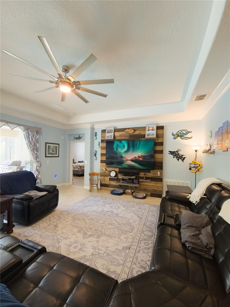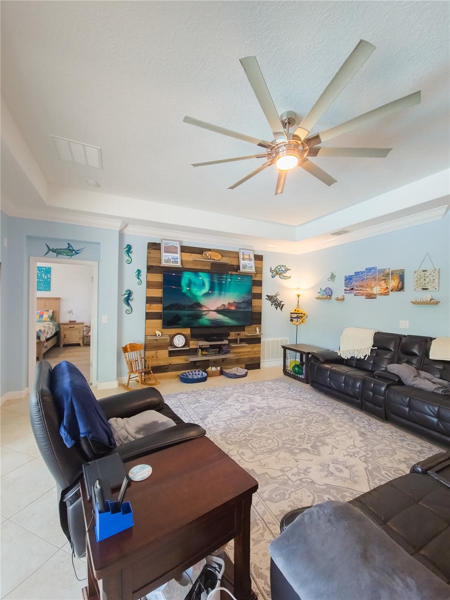 A 3D tour is available on Realtor and Homes, helping prospective buyers feel encouraged and confident to explore the property remotely, especially after Zillow removed Matterport tours. Welcome Home to an exceptional two-story residence nestled in the serene Waterleaf gated community. This extraordinary property, featuring unique elements such as a spacious natural conservation lot, a saltwater gunite pool, and a media wall in the living room, offers over 3,300 square feet of living space, comprising four bedrooms, three and a half bathrooms, and a three-car garage. Positioned on a spacious natural conservation lot, this home ensures a sense of privacy and tranquility, with no backyard neighbors. The property features a tile roof, hurricane shutters, and double-pane energy-efficient windows, which collectively enhance its contemporary appeal. Upon entering, one is greeted by a versatile area that can serve as an office, formal living, or formal dining room, seamlessly connected to the butler's pantry and an expansive custom walk-in pantry. The kitchen is equipped with stainless steel appliances, granite countertops, and a sizable island, all of which contribute to its sleek, modern aesthetic. The open-concept living room is distinguished by its tray ceilings and a custom-built-in media wall. The triple slider doors lead to an extensive outdoor lanai that houses a saltwater gunite pool with a waterfall and a sun shelf. The surrounding paved area and partially fenced yard create an ideal environment for entertainment. The primary suite located on the main floor includes an en-suite bathroom equipped with dual sinks, a walk-in shower, a soaking tub, and a private water closet. The large walk-in closet offers convenient access to both the primary bathroom and the laundry room. The updated staircase provides access to an additional living space, featuring three split bedrooms and two bathrooms. The homeowner association fee covers Spectrum UltraFi WiFi (1 gig) and extended basic cable, including Showtime, HBO Max, Paramount+, Hulu, Disney+, Peacock, ESPN, Vix, Fox One, and AMC+. The property has been recently updated, ensuring it is modern and well-maintained. This residence is conveniently located just 30 minutes from Downtown Tampa and is in proximity to highly rated schools, shopping, dining, medical facilities, and major highways. The Waterleaf community further offers a resort-style pool, a clubhouse, bike and walking trails, and a sports court, enhancing the overall living experience. The property's location provides the convenience of being close to all essential amenities and major highways, making it an ideal home for those who value accessibility. This prime location is sure to make you feel excited about the convenience and accessibility it offers.