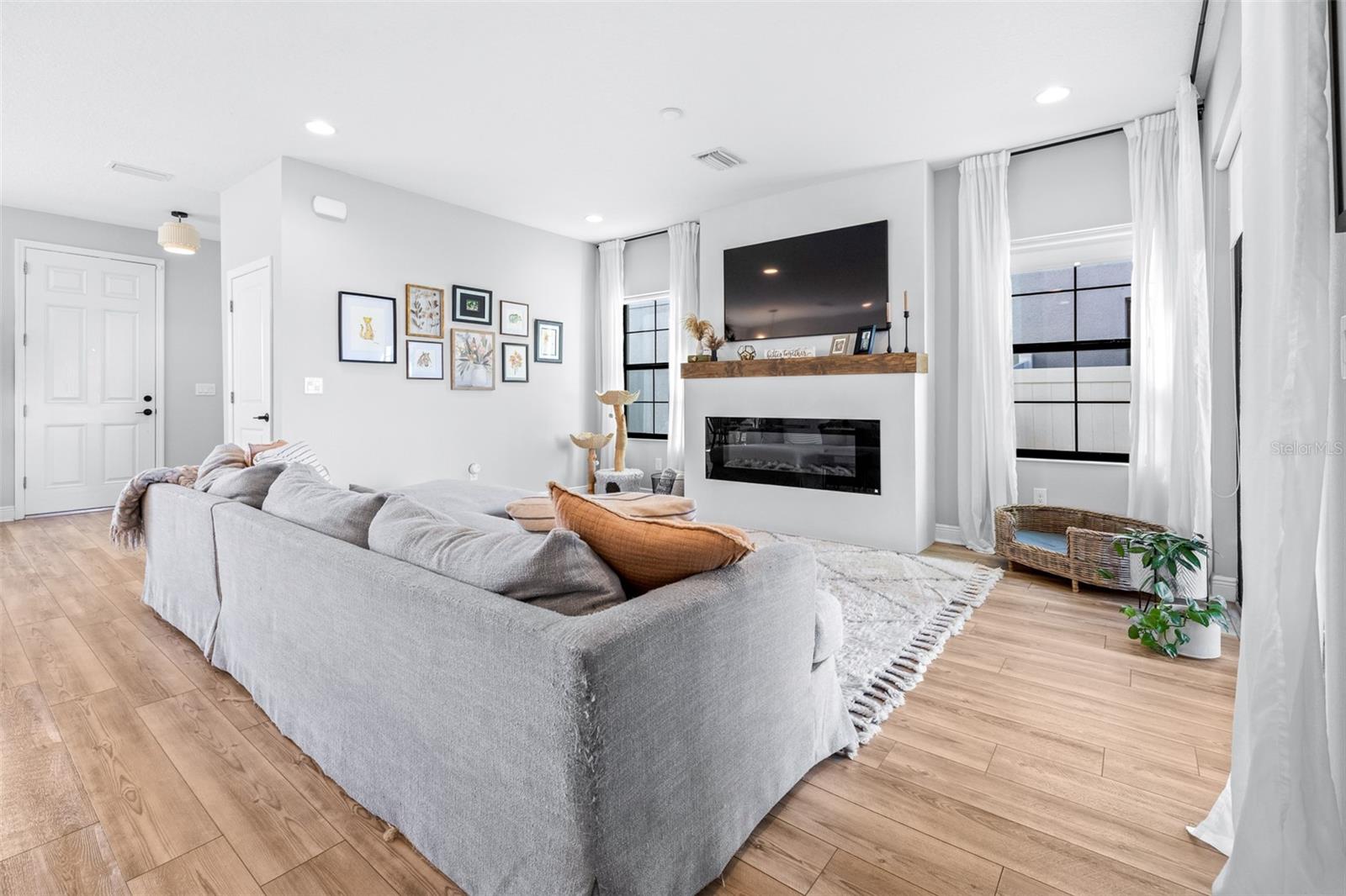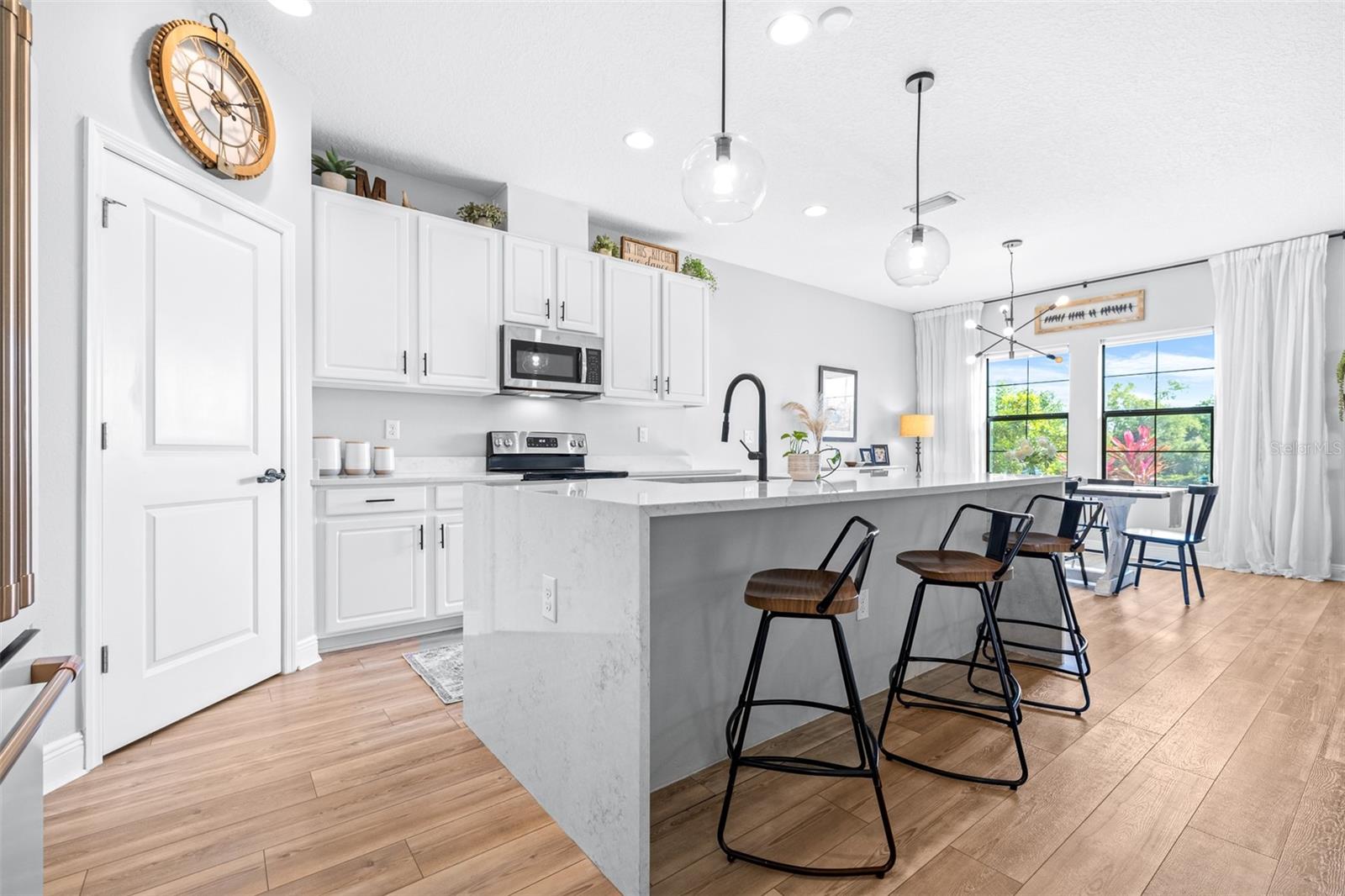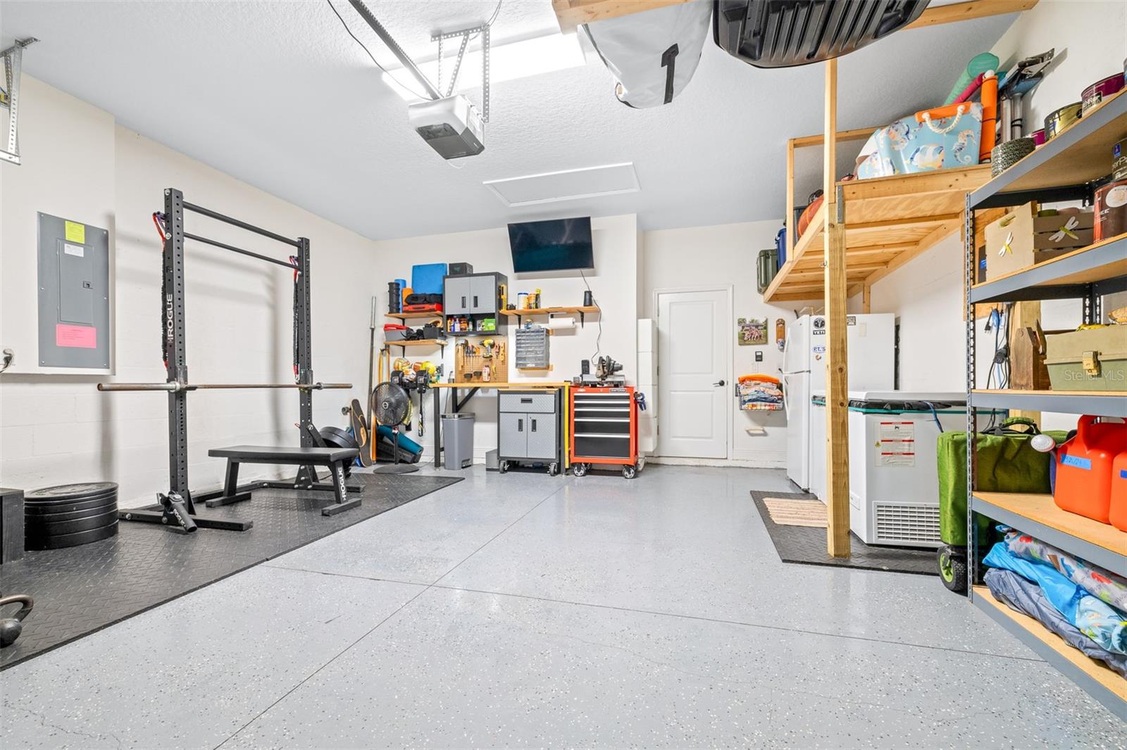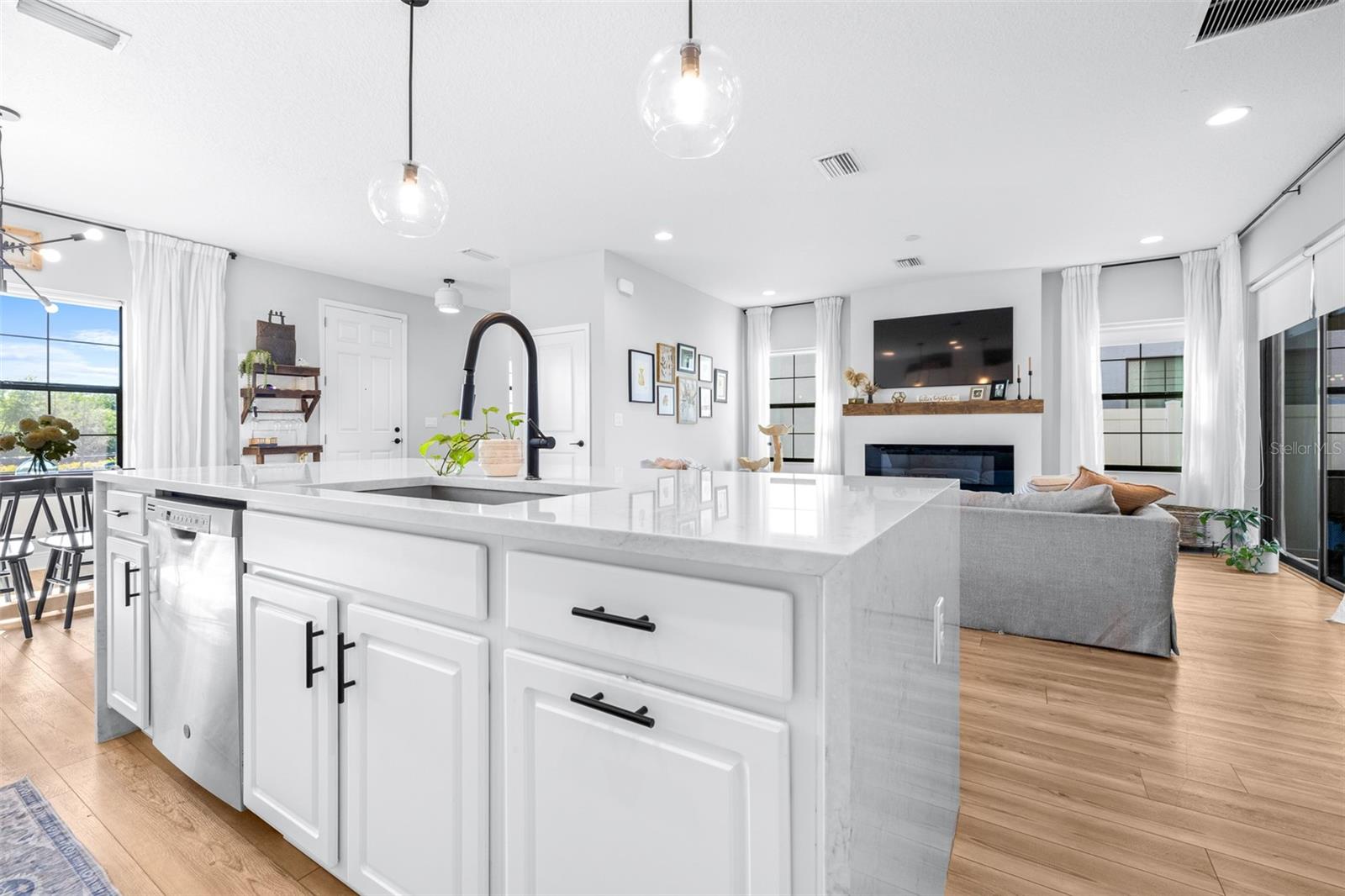 Welcome to the stunning Sunflower Model by WestBay Homes, where bright, airy, and open concept living awaits you. The heart of the home features beautiful QUARTZ kitchen countertops enhanced by a striking WATERFALL ISLAND, CAFE refrigerator and stainless steel appliances. The pantry boasts BUILT IN SHELVING that ensures all your essentials are neatly organized. A CUSTOM FIREPLACE with a modern minimalist mantle adds a nice touch to the living area. Covered lanai and NEW FENCING encloses the yard, providing a safe place for your pets to roam. FRESHLY LANDSCAPED front and backyard, complete with two new palm trees. Practical upgrades throughout the home include EPOXY FLOORING in the garage, added SHELVING AND STORAGE solutions in the garage, and even FLOORING IN THE ATTIC for additional storage needs! The laundry room features a custom tabletop build. FRESH INTERIOR PAINT completed in March 2025. UPGRADED LIGHT FIXTURES and can lights that illuminate the home beautifully.This layout offers ultimate convenience, with one bedroom located downstairs accompanied by its own full bathroom, while the primary bedroom, two other bedrooms and laundry room are situated upstairs, along with a spacious loft area that can serve as a playroom, office, or additional living space. The primary suite features an en suite bathroom, equipped with upgraded dual vanity, and tile shower. Owners NEVER LOST POWER during hurricanes as the community has underground utilities and wiring. Home has wind resistant windows and shutters. The Triple Creek community elevates your lifestyle with an array of incredible amenities, including a club amenity center featuring a multi-purpose room and an open-air social room, fitness center, an expansive pavilion, and a resort-style pool with lap lanes, a zero-entry section. Additionally, you’ll find tennis courts, a basketball court, an open play field and the Central Bark dog park, perfect for your pets. New pickleball court, pool, and volleyball court are also being completed. Nature trails for walking and biking provide a serene escape just outside your door.