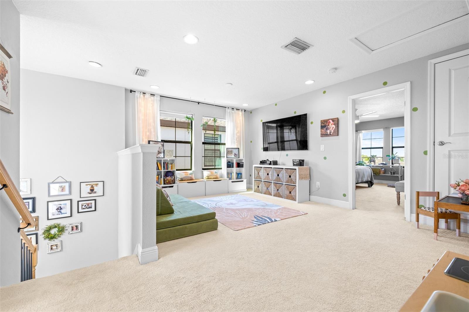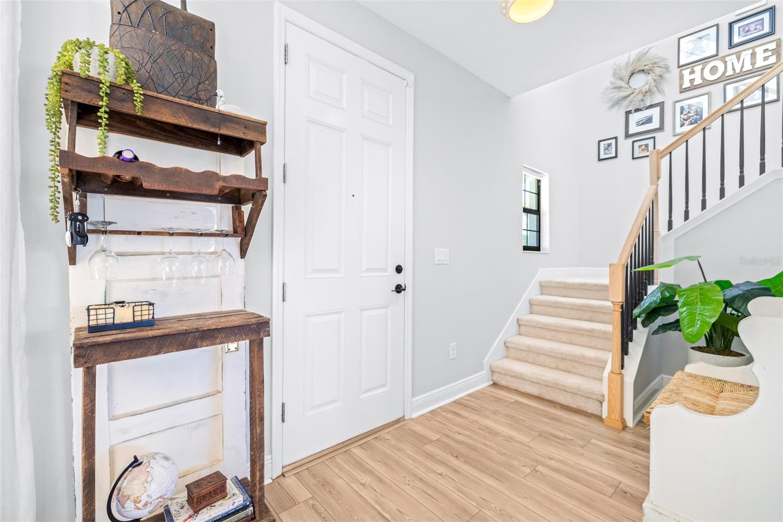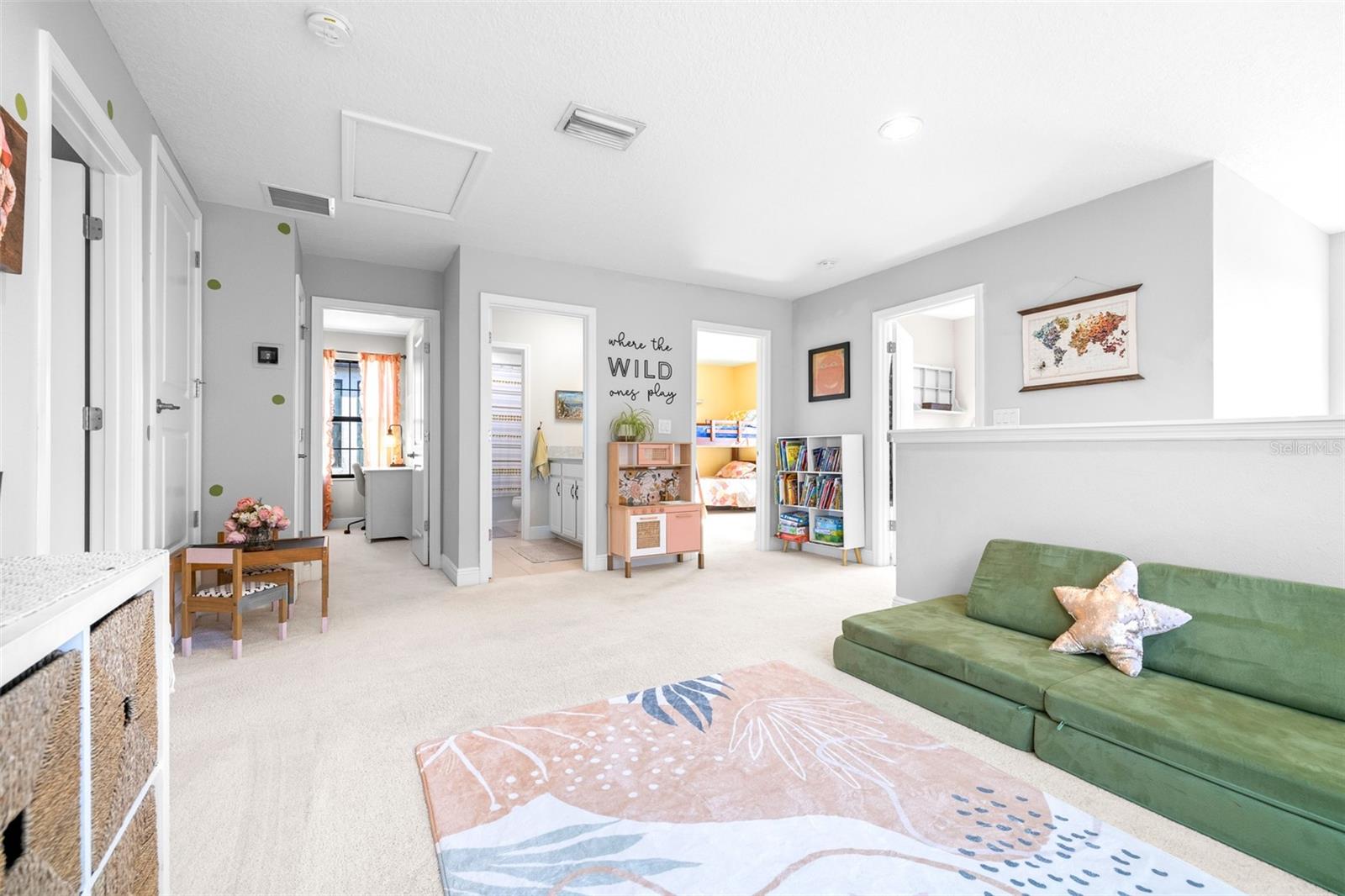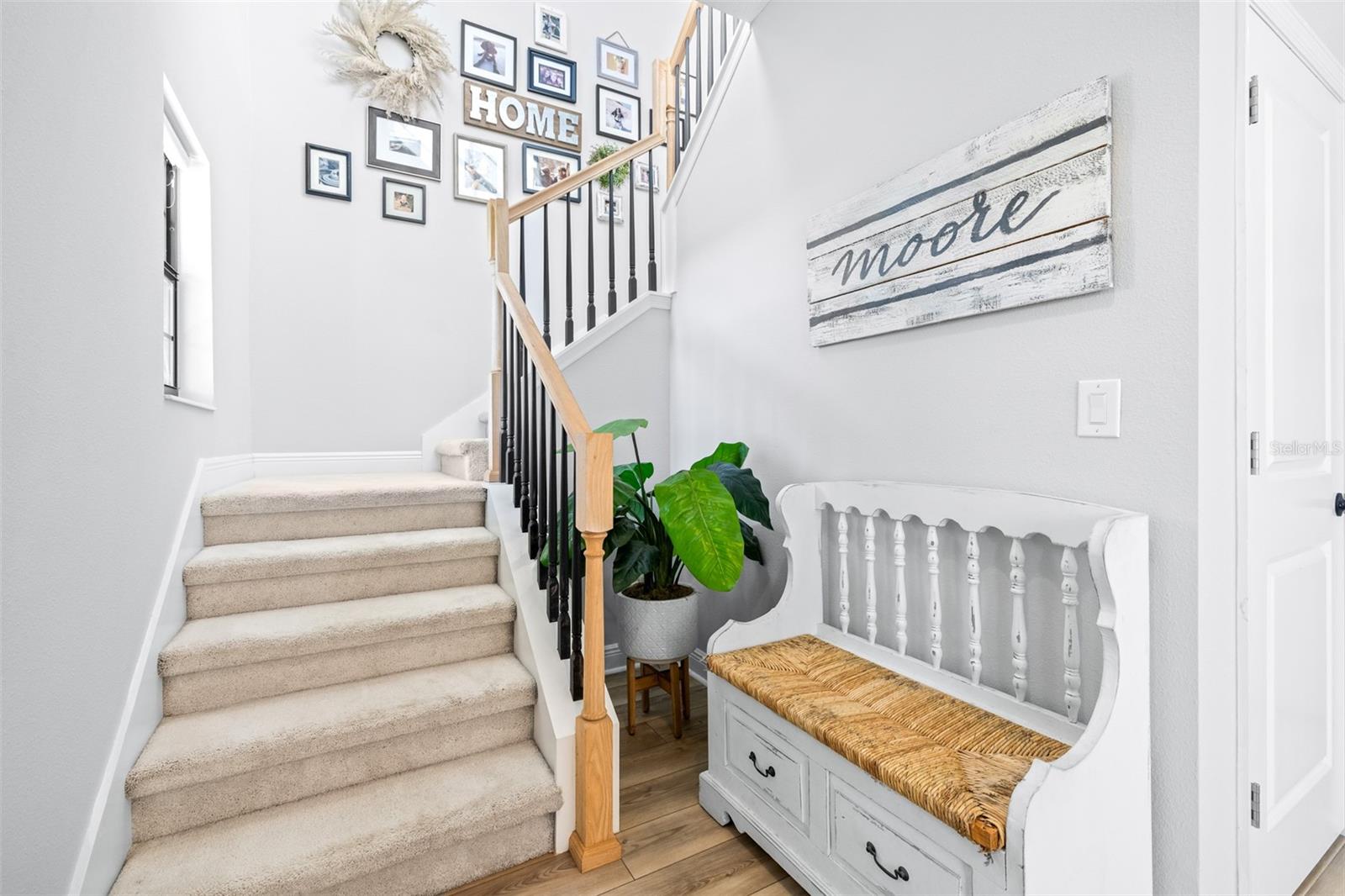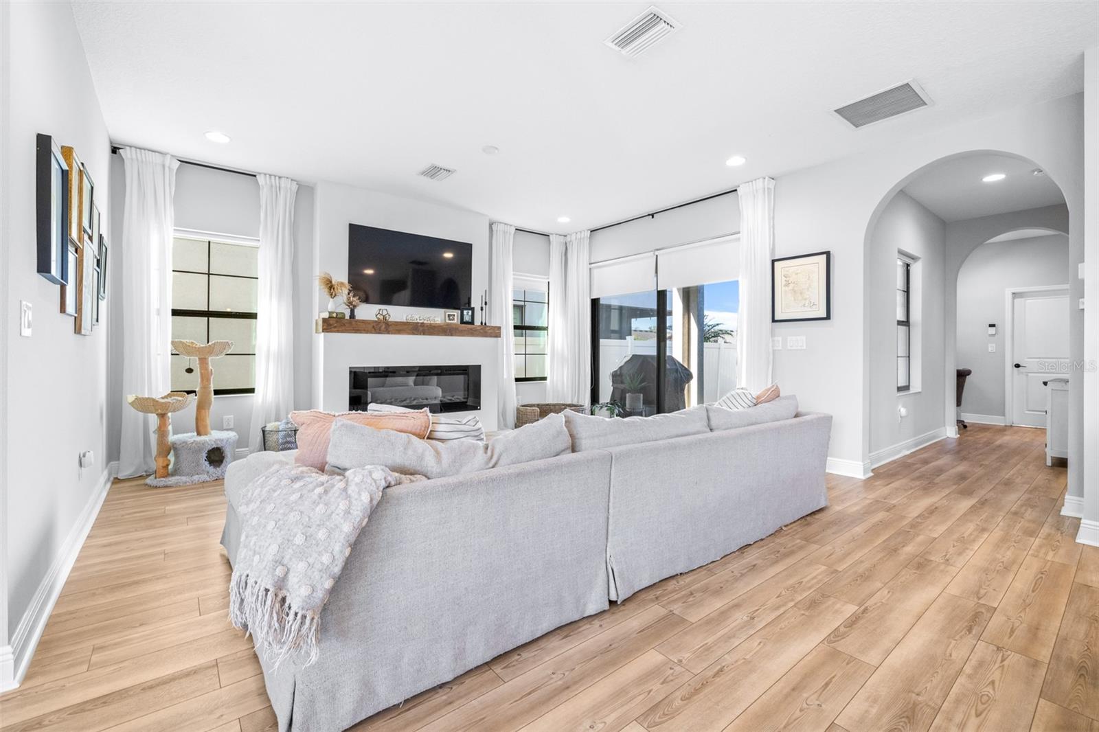 Welcome to the stunning Sunflower Model by WestBay Homes, where bright, airy, and open concept living awaits you. The heart of the home features beautiful QUARTZ kitchen countertops enhanced by a striking WATERFALL ISLAND, CAFE refrigerator and stainless steel appliances. The pantry boasts BUILT IN SHELVING that ensures all your essentials are neatly organized. A CUSTOM FIREPLACE with a modern minimalist mantle adds a nice touch to the living area. Covered lanai and NEW FENCING encloses the yard, providing a safe place for your pets to roam. FRESHLY LANDSCAPED front and backyard, complete with two new palm trees. Practical upgrades throughout the home include EPOXY FLOORING in the garage, added SHELVING AND STORAGE solutions in the garage, and even FLOORING IN THE ATTIC for additional storage needs! The laundry room features a custom tabletop build. FRESH INTERIOR PAINT completed in March 2025. UPGRADED LIGHT FIXTURES and can lights that illuminate the home beautifully.This layout offers ultimate convenience, with one bedroom located downstairs accompanied by its own full bathroom, while the primary bedroom, two other bedrooms and laundry room are situated upstairs, along with a spacious loft area that can serve as a playroom, office, or additional living space. The primary suite features an en suite bathroom, equipped with upgraded dual vanity, and tile shower. Owners NEVER LOST POWER during hurricanes as the community has underground utilities and wiring. Home has wind resistant windows and shutters. The Triple Creek community elevates your lifestyle with an array of incredible amenities, including a club amenity center featuring a multi-purpose room and an open-air social room, fitness center, an expansive pavilion, and a resort-style pool with lap lanes, a zero-entry section. Additionally, you’ll find tennis courts, a basketball court, an open play field and the Central Bark dog park, perfect for your pets. New pickleball court, pool, and volleyball court are also being completed. Nature trails for walking and biking provide a serene escape just outside your door.