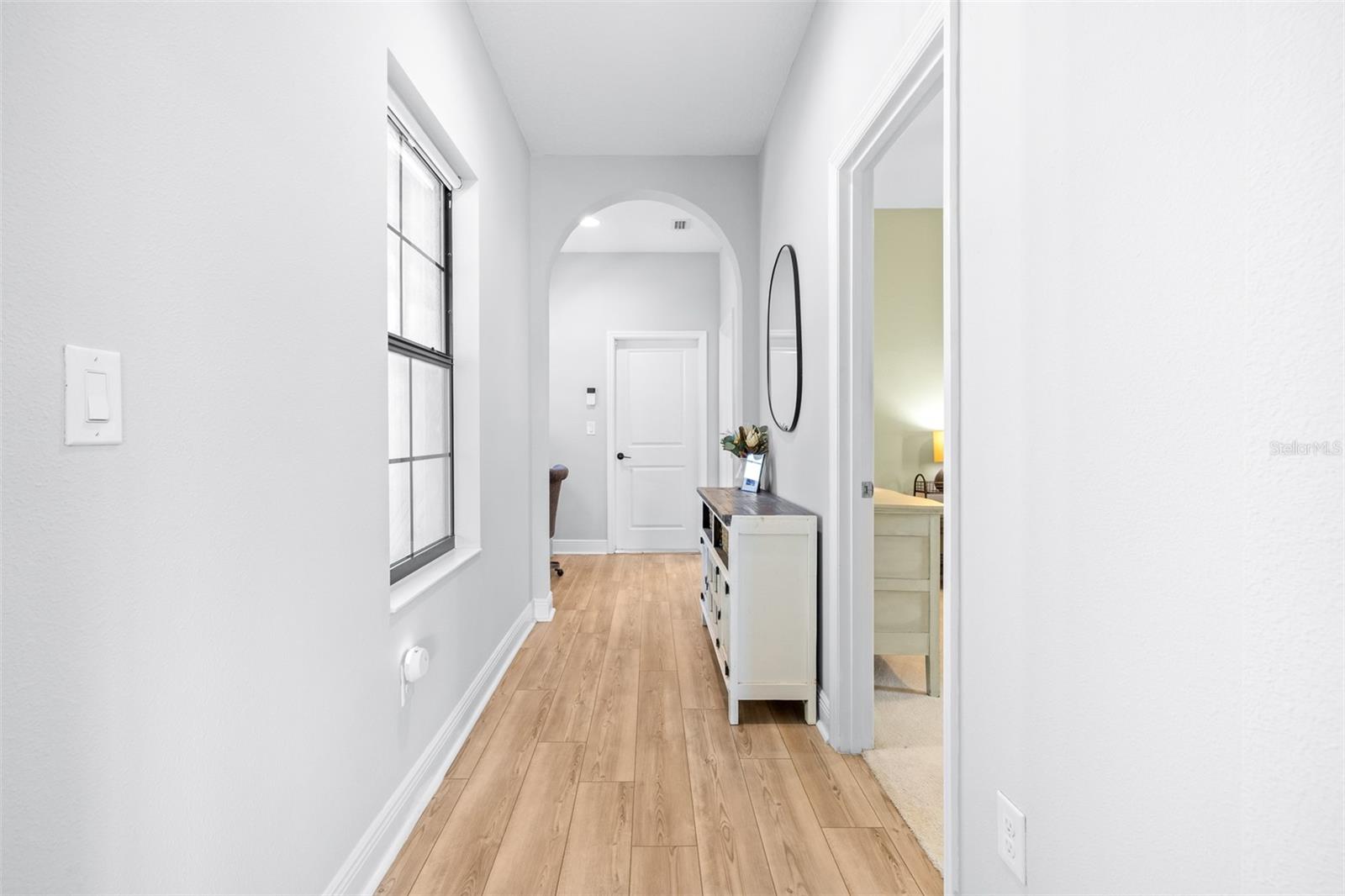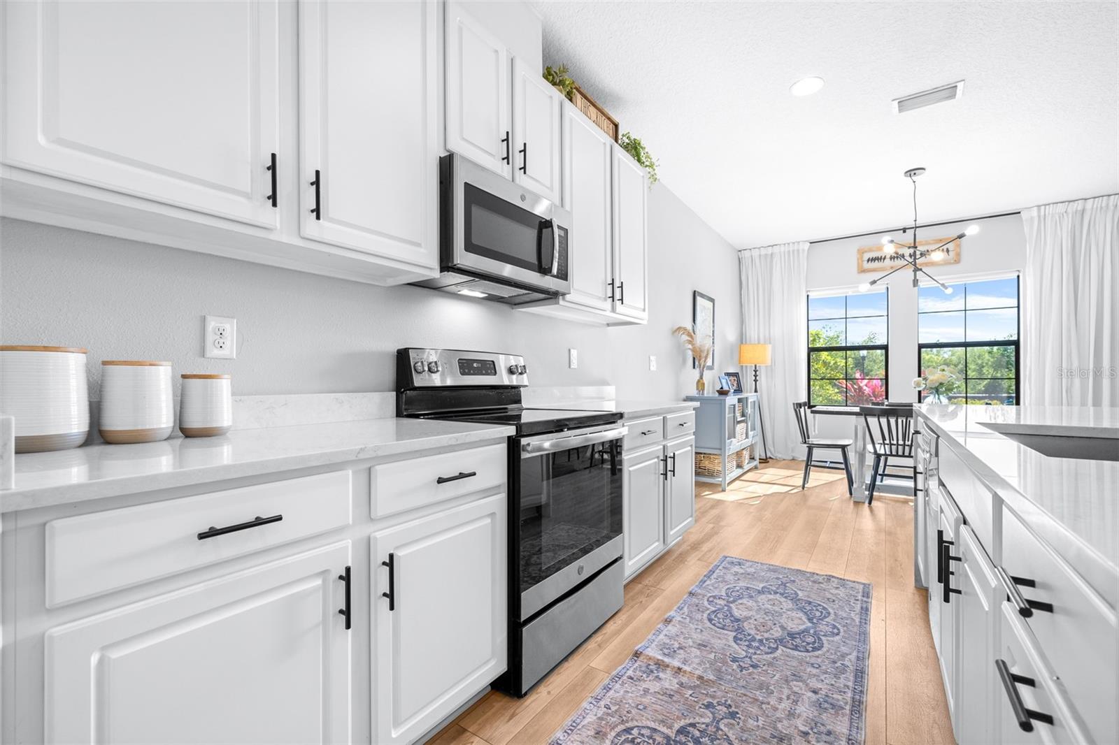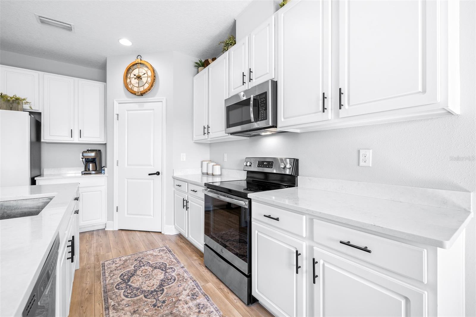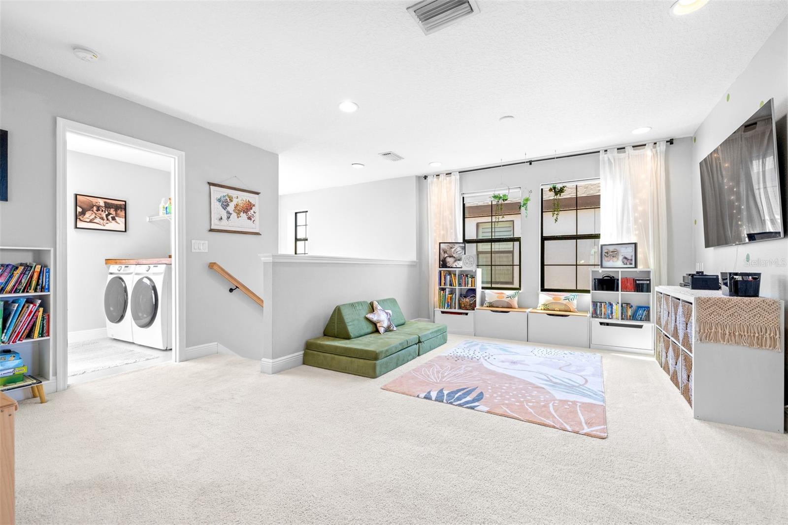 Welcome to the stunning Sunflower Model by WestBay Homes, where bright, airy, and open concept living awaits you. The heart of the home features beautiful QUARTZ kitchen countertops enhanced by a striking WATERFALL ISLAND, CAFE refrigerator and stainless steel appliances. The pantry boasts BUILT IN SHELVING that ensures all your essentials are neatly organized. A CUSTOM FIREPLACE with a modern minimalist mantle adds a nice touch to the living area. Covered lanai and NEW FENCING encloses the yard, providing a safe place for your pets to roam. FRESHLY LANDSCAPED front and backyard, complete with two new palm trees. Practical upgrades throughout the home include EPOXY FLOORING in the garage, added SHELVING AND STORAGE solutions in the garage, and even FLOORING IN THE ATTIC for additional storage needs! The laundry room features a custom tabletop build. FRESH INTERIOR PAINT completed in March 2025. UPGRADED LIGHT FIXTURES and can lights that illuminate the home beautifully.This layout offers ultimate convenience, with one bedroom located downstairs accompanied by its own full bathroom, while the primary bedroom, two other bedrooms and laundry room are situated upstairs, along with a spacious loft area that can serve as a playroom, office, or additional living space. The primary suite features an en suite bathroom, equipped with upgraded dual vanity, and tile shower. Owners NEVER LOST POWER during hurricanes as the community has underground utilities and wiring. Home has wind resistant windows and shutters. The Triple Creek community elevates your lifestyle with an array of incredible amenities, including a club amenity center featuring a multi-purpose room and an open-air social room, fitness center, an expansive pavilion, and a resort-style pool with lap lanes, a zero-entry section. Additionally, you’ll find tennis courts, a basketball court, an open play field and the Central Bark dog park, perfect for your pets. New pickleball court, pool, and volleyball court are also being completed. Nature trails for walking and biking provide a serene escape just outside your door.
