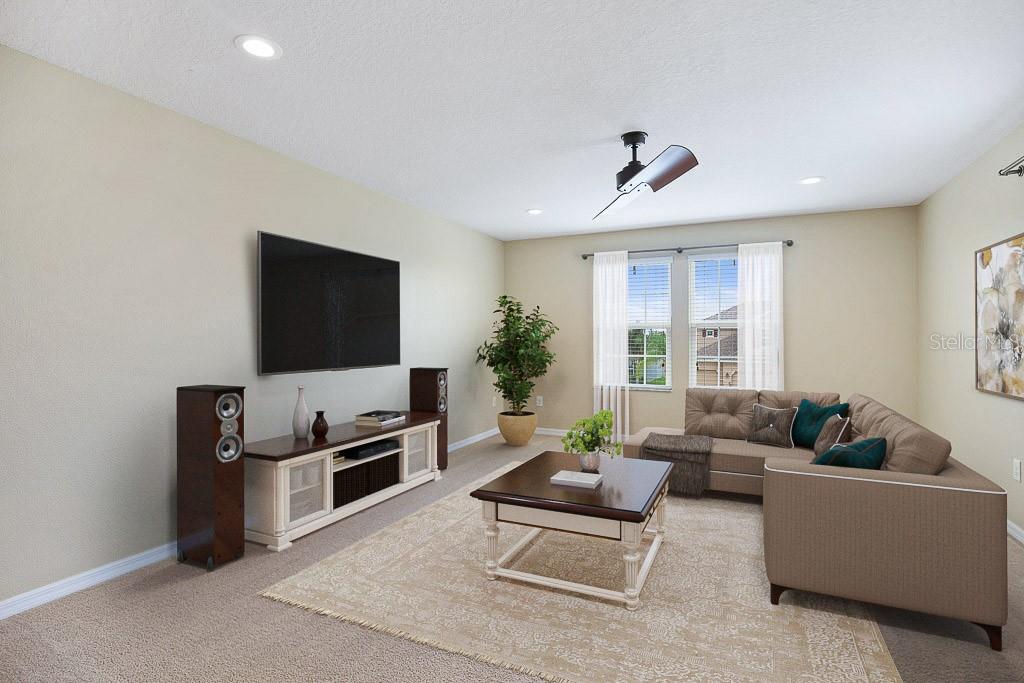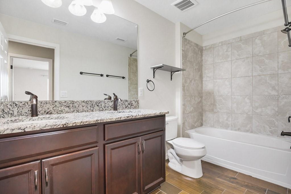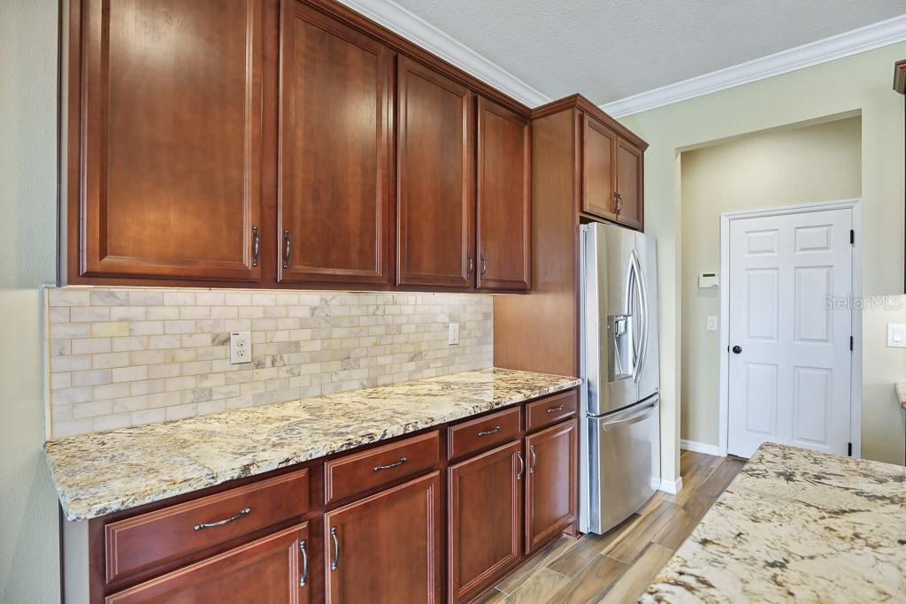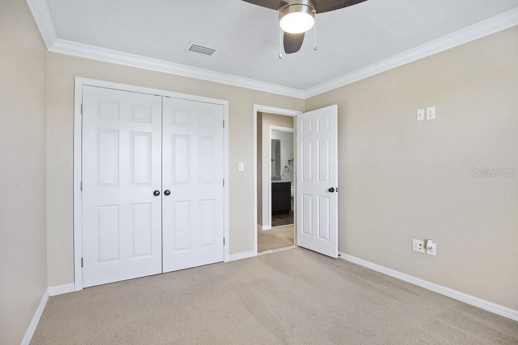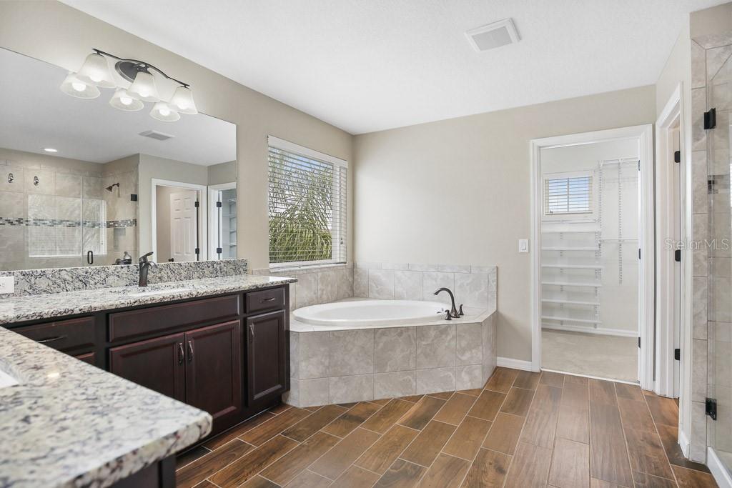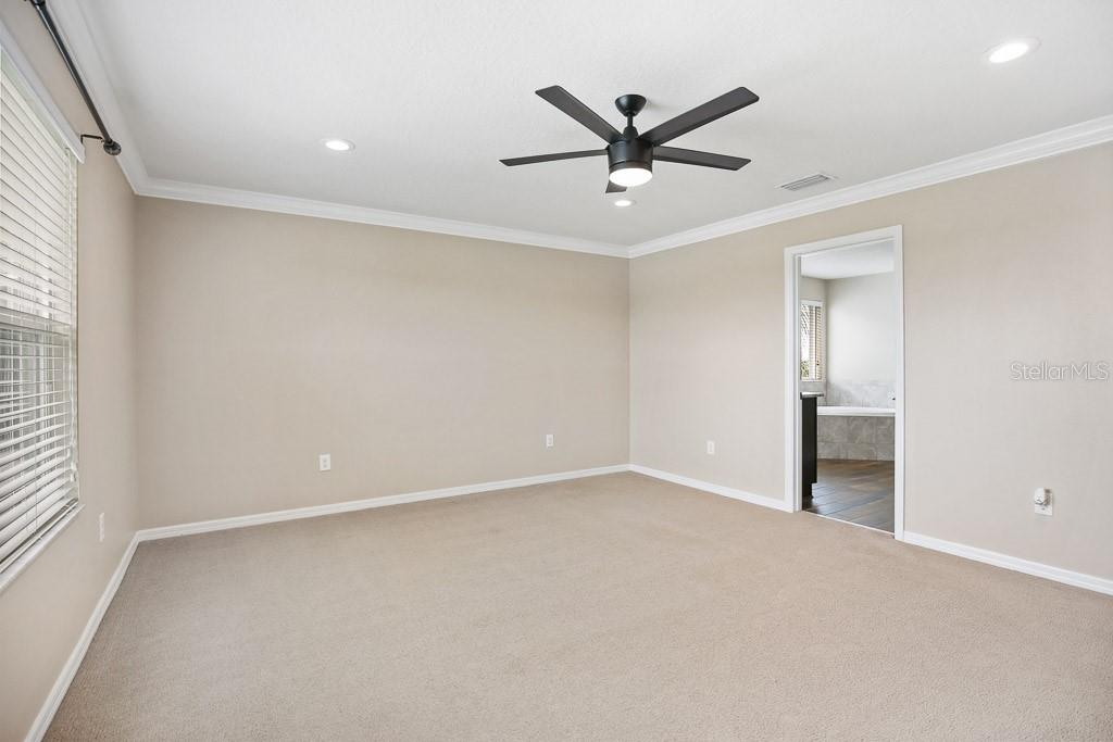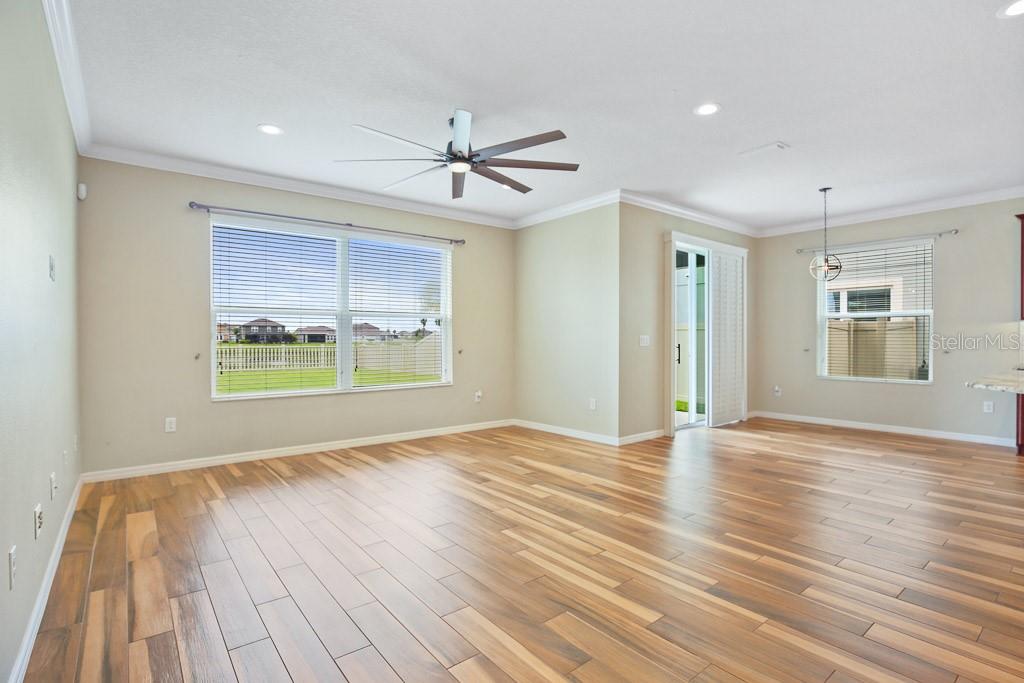 One or more photo(s) has been virtually staged. ATTRACTIVE VA ASSUMABLE at 4.75%. Experience the charm of the Reserve at Pradera! With just under 150 homes and well-appointed recreation amenities you don’t want to miss your opportunity to own in the community. This stunning 4-bedroom plus office/flex/5th bedroom, 3-bathroom, 2,912 sq ft home is perfectly situated on an oversized, fenced lot with a captivating pond view. Tucked away in a private cul de sac, this property features meticulous landscaping, elegant palm trees, and fresh exterior paint from 2021, ensuring impressive curb appeal. Upon entry, you'll be immediately charmed by the formal dining room's tray ceiling, adorned with a chic light fixture and a custom-designed accent wall. The home offers wood-look tile flooring throughout the main living areas and bathrooms, while the bedrooms are carpeted for added comfort. Crown molding along the ceilings enhances the elegance of all entertainment spaces. The open concept living room at the back of the house is a perfect space for entertaining, complete with a ceiling fan and prewiring for a home entertainment system. This area seamlessly connects to a gourmet kitchen equipped with stainless steel appliances, including double built-in ovens and a spacious cooktop. Granite countertops, a stylish tile backsplash, and beautifully crafted cabinets with crown molding add to the kitchen's allure. The large island/breakfast bar, featuring a farmhouse sink, is ideal for serving meals, and a spacious walk-in pantry provides ample storage. The dinette area, which overlooks the outdoor patio through plantation shutters on the sliding glass door, is perfect for casual dining. A guest suite on the main floor, complete with its own full bathroom featuring granite countertops and a shower/tub combo, ensures comfort and privacy for guests. Upstairs, an oversized bonus room awaits, prewired for a home theater system. The primary suite serves as a private retreat with natural light streaming in through two large windows that offer picturesque views of the backyard and pond. The primary bathroom boasts a dual vanity with ample granite counter space, wrap-around mirrors, a walk-in shower with a glass door, a separate soaking tub, and a private water closet. An expansive master closet completes the primary suite. The additional three spacious bedrooms (one of which has been converted from a sitting area in the primary bedroom), including one with a walk-in closet, share a bathroom featuring a dual vanity, granite countertops, and a shower/tub combo. The conveniently located upstairs laundry room eliminates the need to carry laundry up and down the stairs. The backyard features a covered patio, and the fully fenced yard offers privacy and security while providing stunning views of the pond. Additional features include a water softener and a kitchen reverse osmosis system. Community amenities such as a pool, playgrounds, and a dog park further enhance the appeal of this home. Conveniently located just a short drive away from shopping, dining, nature parks, hospitals, and the entrances to I-75 and US 301, this home truly has everything you need.