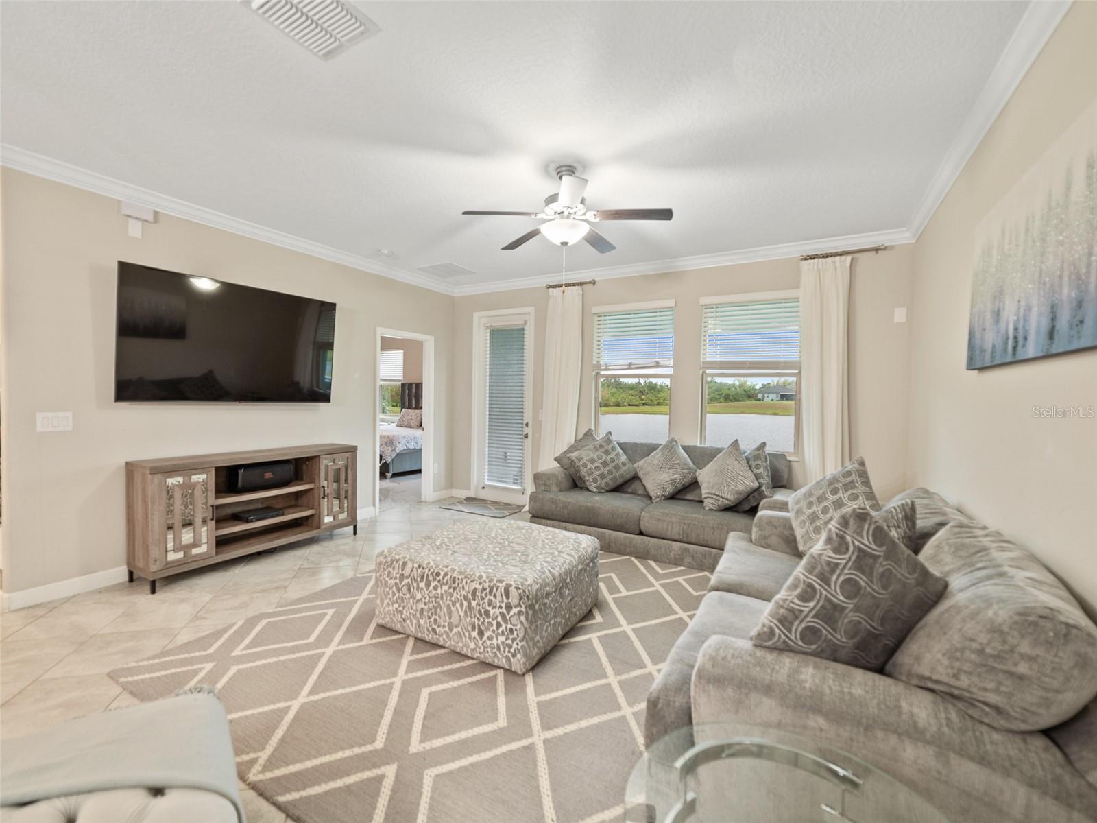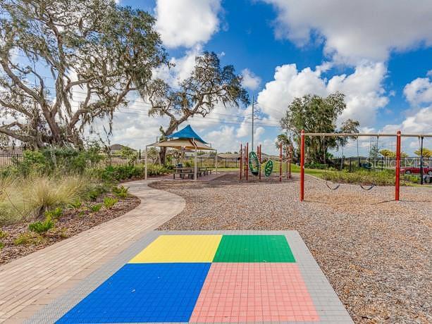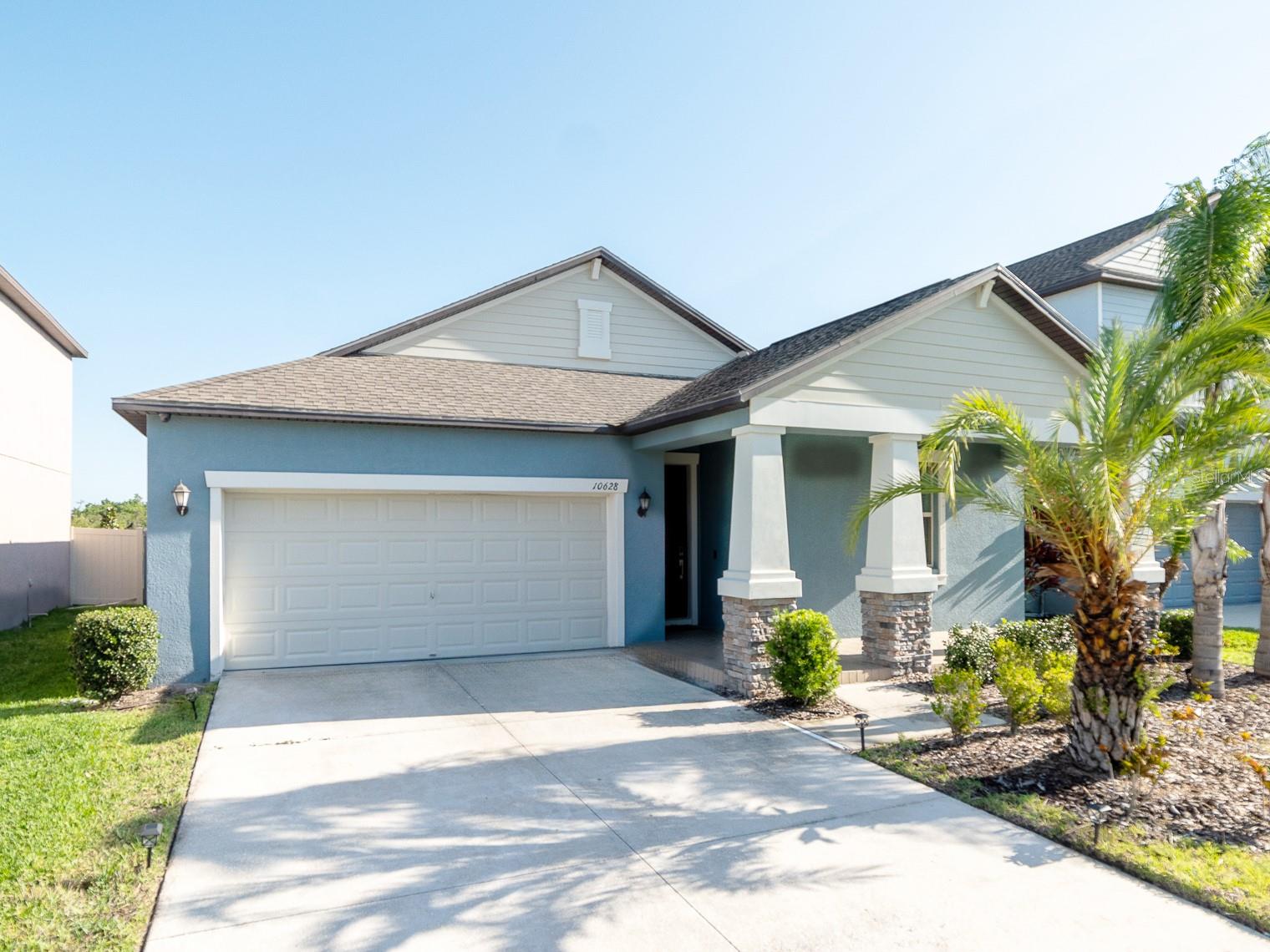 One or more photo(s) has been virtually staged. Craftsman Charm Meets Florida Living Pond Views, Resort-Style Amenities, and Room for Everyone Step into a home that checks every box—and then some. This beautifully designed 4-bedroom, 3-bathroom residence in the sought-after Oaks at Shady Creek blends Craftsman-style curb appeal with peaceful pond views and a layout made for real life. From the welcoming front porch to the breezy open-concept floor plan, this home is filled with thoughtful upgrades and natural light. Inside, you’ll find over 2,000 square feet of stylish comfort, including a chef-inspired kitchen with granite countertops, white staggered cabinetry, stainless steel appliances, and a generous island with bar seating. Whether you’re hosting a dinner party or just whipping up weeknight meals, this kitchen is up for anything. The layout offers smart separation, with the primary suite tucked away in the back of the home for maximum privacy. It features a spacious walk-in closet, granite dual-sink vanity, step-in shower, and a garden tub for those long, relaxing soaks. Best part? There's direct access to the laundry room right from the primary bathroom—because who wants to carry laundry across the house? Three additional bedrooms provide flexibility for guests, kids, or a home office setup. A drop station near the garage keeps your everyday essentials organized, while diagonal tile flooring adds style and easy maintenance throughout the main living areas. Take your coffee out to the lanai and enjoy tranquil pond views, or stretch out in the spacious backyard that’s perfect for gardening, playing fetch, or just soaking up the Florida sunshine. This home is part of a vibrant community that includes a pool, playground, fitness center, and basketball court—all with a low-maintenance lifestyle in mind. With smart home features, hurricane shutters, water softener, and even mowing service included in the HOA, it’s built for comfort and peace of mind. This isn’t just a home—it’s a lifestyle. And it's ready for you to move right in. Several Charter and Public School located close to the community including the Charter School Slam.