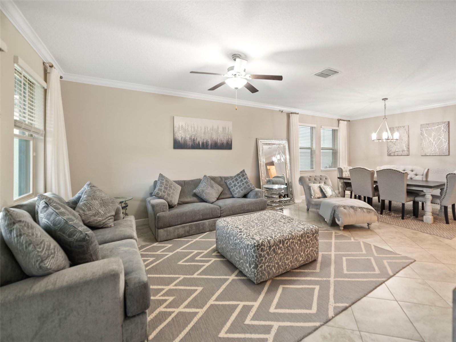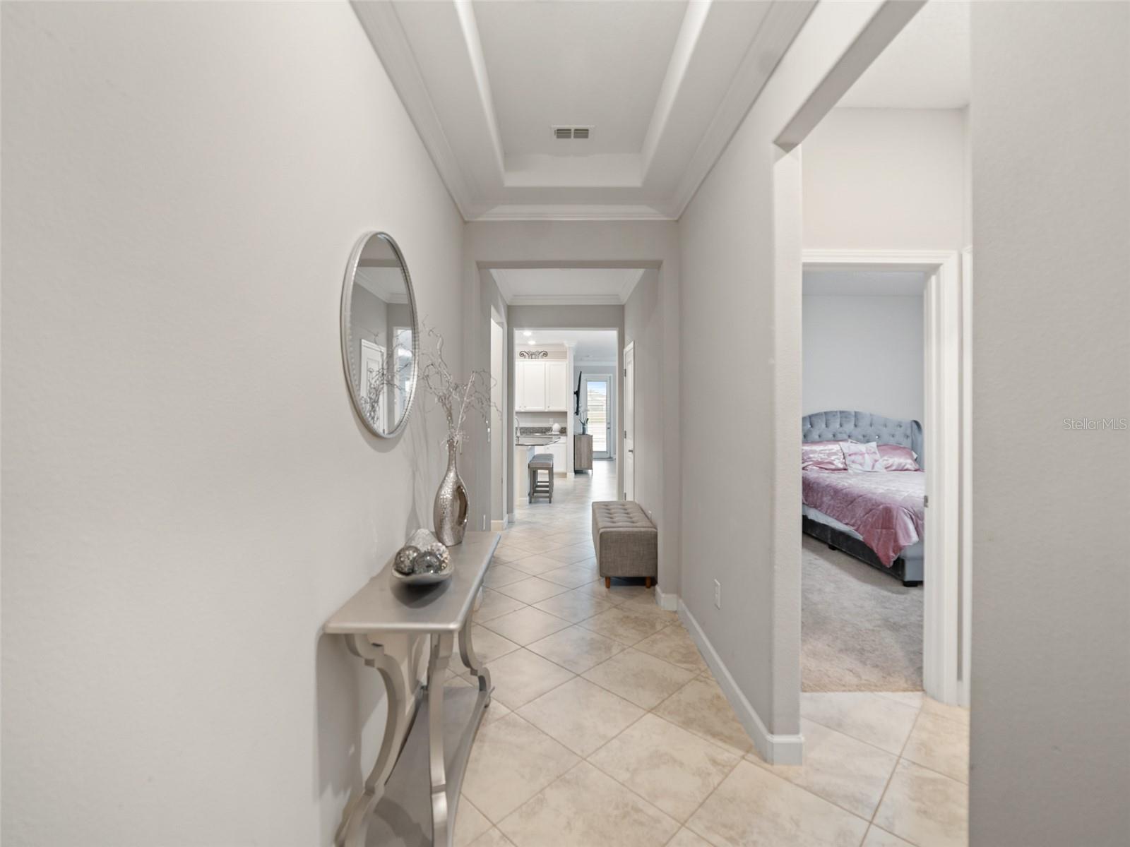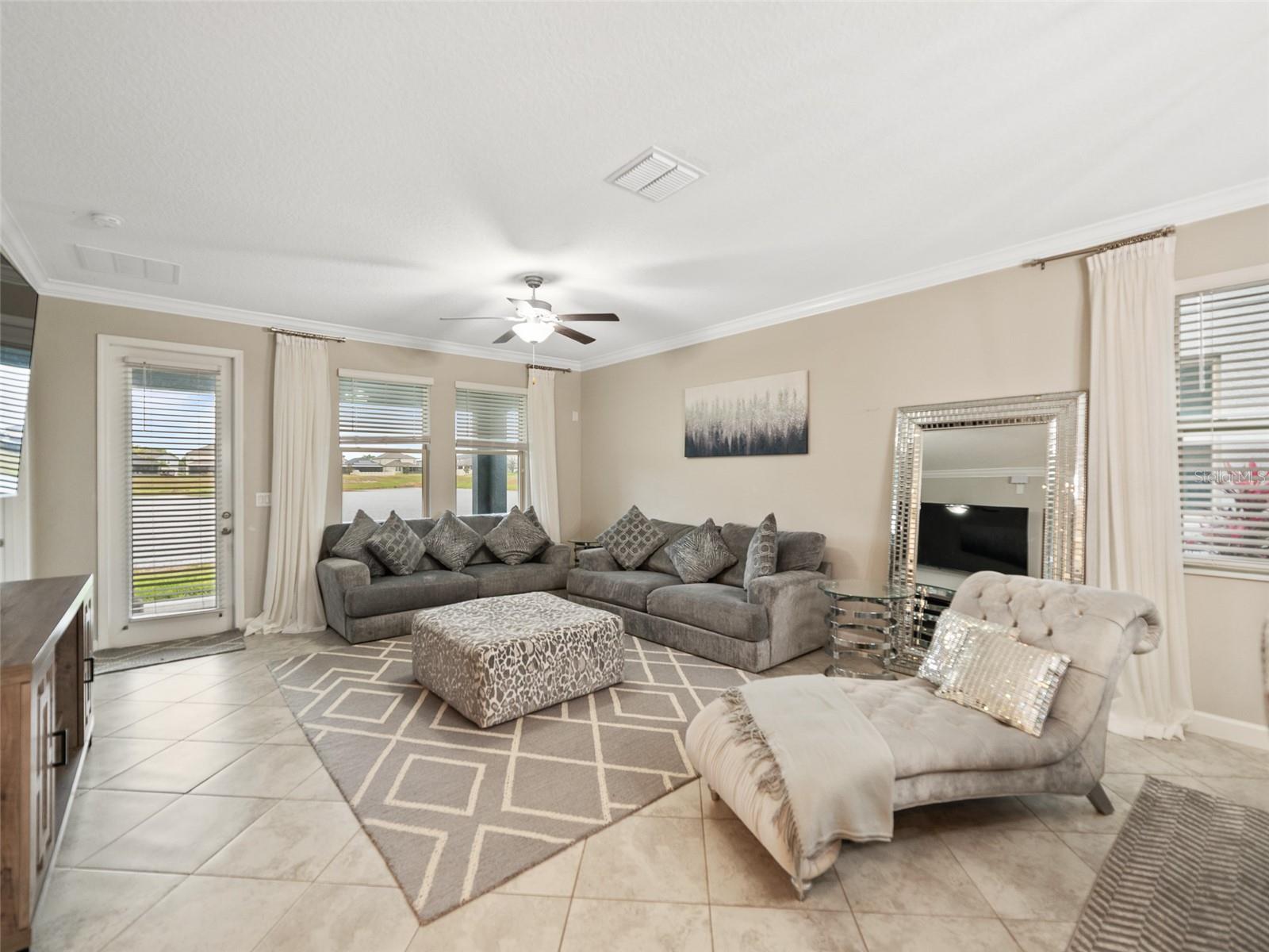 One or more photo(s) has been virtually staged. Craftsman Charm Meets Florida Living Pond Views, Resort-Style Amenities, and Room for Everyone Step into a home that checks every box—and then some. This beautifully designed 4-bedroom, 3-bathroom residence in the sought-after Oaks at Shady Creek blends Craftsman-style curb appeal with peaceful pond views and a layout made for real life. From the welcoming front porch to the breezy open-concept floor plan, this home is filled with thoughtful upgrades and natural light. Inside, you’ll find over 2,000 square feet of stylish comfort, including a chef-inspired kitchen with granite countertops, white staggered cabinetry, stainless steel appliances, and a generous island with bar seating. Whether you’re hosting a dinner party or just whipping up weeknight meals, this kitchen is up for anything. The layout offers smart separation, with the primary suite tucked away in the back of the home for maximum privacy. It features a spacious walk-in closet, granite dual-sink vanity, step-in shower, and a garden tub for those long, relaxing soaks. Best part? There's direct access to the laundry room right from the primary bathroom—because who wants to carry laundry across the house? Three additional bedrooms provide flexibility for guests, kids, or a home office setup. A drop station near the garage keeps your everyday essentials organized, while diagonal tile flooring adds style and easy maintenance throughout the main living areas. Take your coffee out to the lanai and enjoy tranquil pond views, or stretch out in the spacious backyard that’s perfect for gardening, playing fetch, or just soaking up the Florida sunshine. This home is part of a vibrant community that includes a pool, playground, fitness center, and basketball court—all with a low-maintenance lifestyle in mind. With smart home features, hurricane shutters, water softener, and even mowing service included in the HOA, it’s built for comfort and peace of mind. This isn’t just a home—it’s a lifestyle. And it's ready for you to move right in. Several Charter and Public School located close to the community including the Charter School Slam.