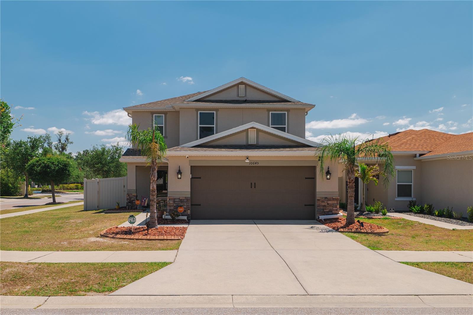 HUGE PRICE DROP!!Motivated Seller! Welcome to your dream home in the highly sought-after Medford Lakes Community of Riverview! This meticulously maintained two-story corner lot home, built in 2016, offers the perfect blend of modern style, comfort, and convenience. With four bedrooms, including a spacious master, two and a half bathrooms, and a two-car garage, this home is designed for both relaxation and entertaining. The bright, open floor plan creates an inviting atmosphere, making it the ideal space for family gatherings and social events year-round. The open kitchen is a chef’s dream, featuring stainless steel appliances and an abundance of counter space, making it perfect for preparing meals and entertaining. Recent upgrades add to the home's appeal, including hurricane shutters for peace of mind, a beautiful patio (2020) that’s perfect for outdoor relaxation, and a privacy fence (2020) that ensures your backyard remains a private oasis. The second full bathroom was thoughtfully upgraded in 2020 with stylish finishes that blend both comfort and function. You’ll also enjoy the elegance of the aluminum storm front door (2020) and the sleek epoxy garage floors (2020), which are both easy to maintain and visually appealing. For added security, the home is equipped with four hardwired security cameras (2021). Inside, you'll find luxury vinyl plank flooring throughout (2021), offering durability and a modern touch. The HVAC unit was recently replaced in 2023 for reliable comfort, and a water softener (2024) has been installed to enhance water quality throughout the home. Plus, the garage has been upgraded with new mechanisms (2024), including a quiet spring tensioner and motor belt-driven operator for smoother operation. Located just a short walk from the community pool, this home combines the benefits of private living with the convenience of nearby amenities. Don't miss your chance to own this exceptional home—schedule a private showing today and take the first step toward making it your forever home!
