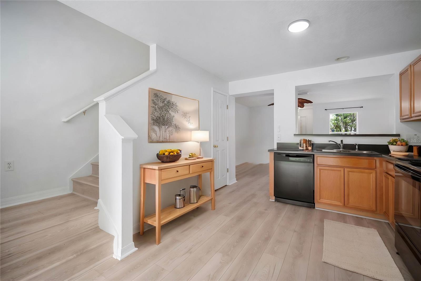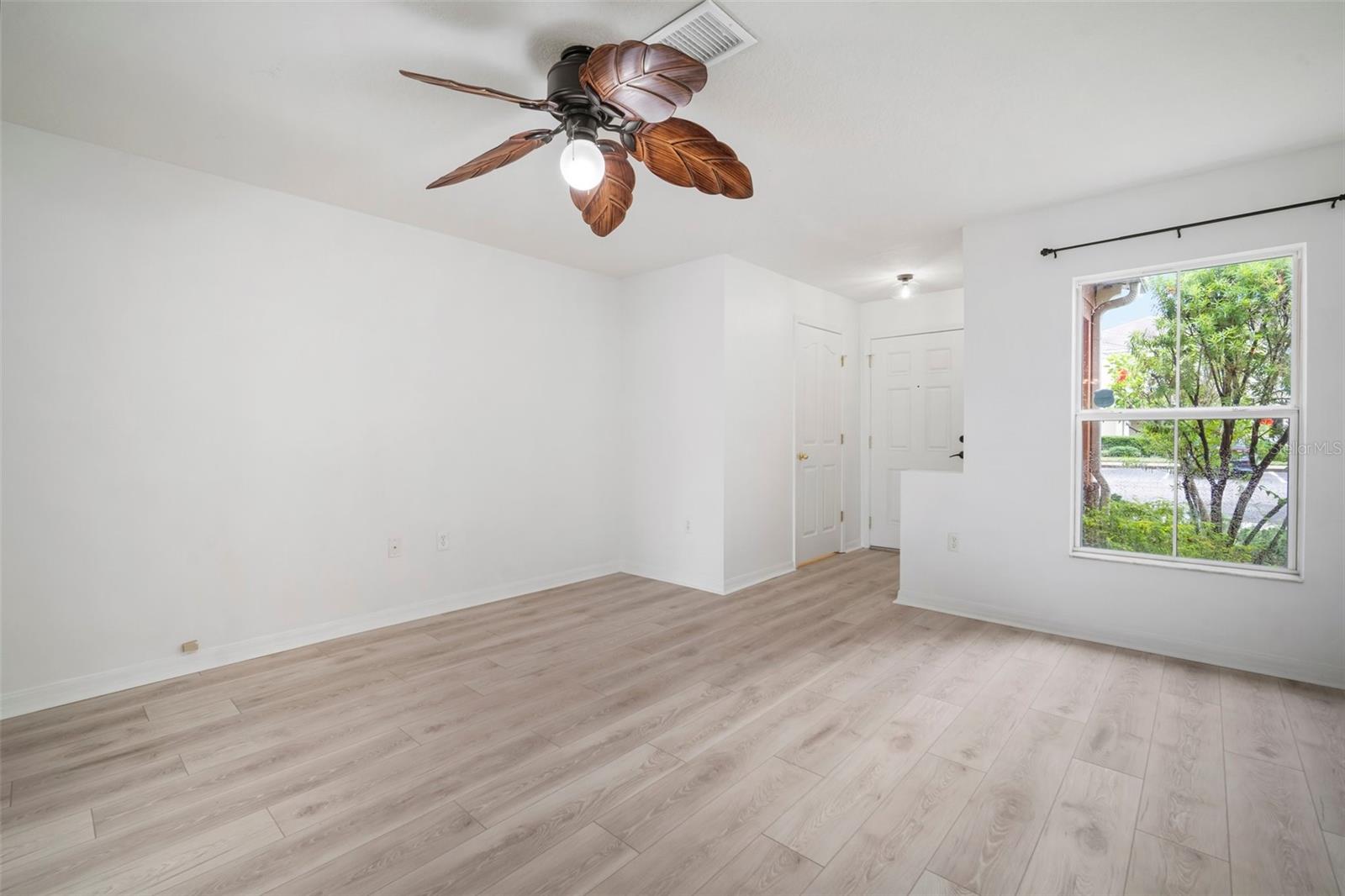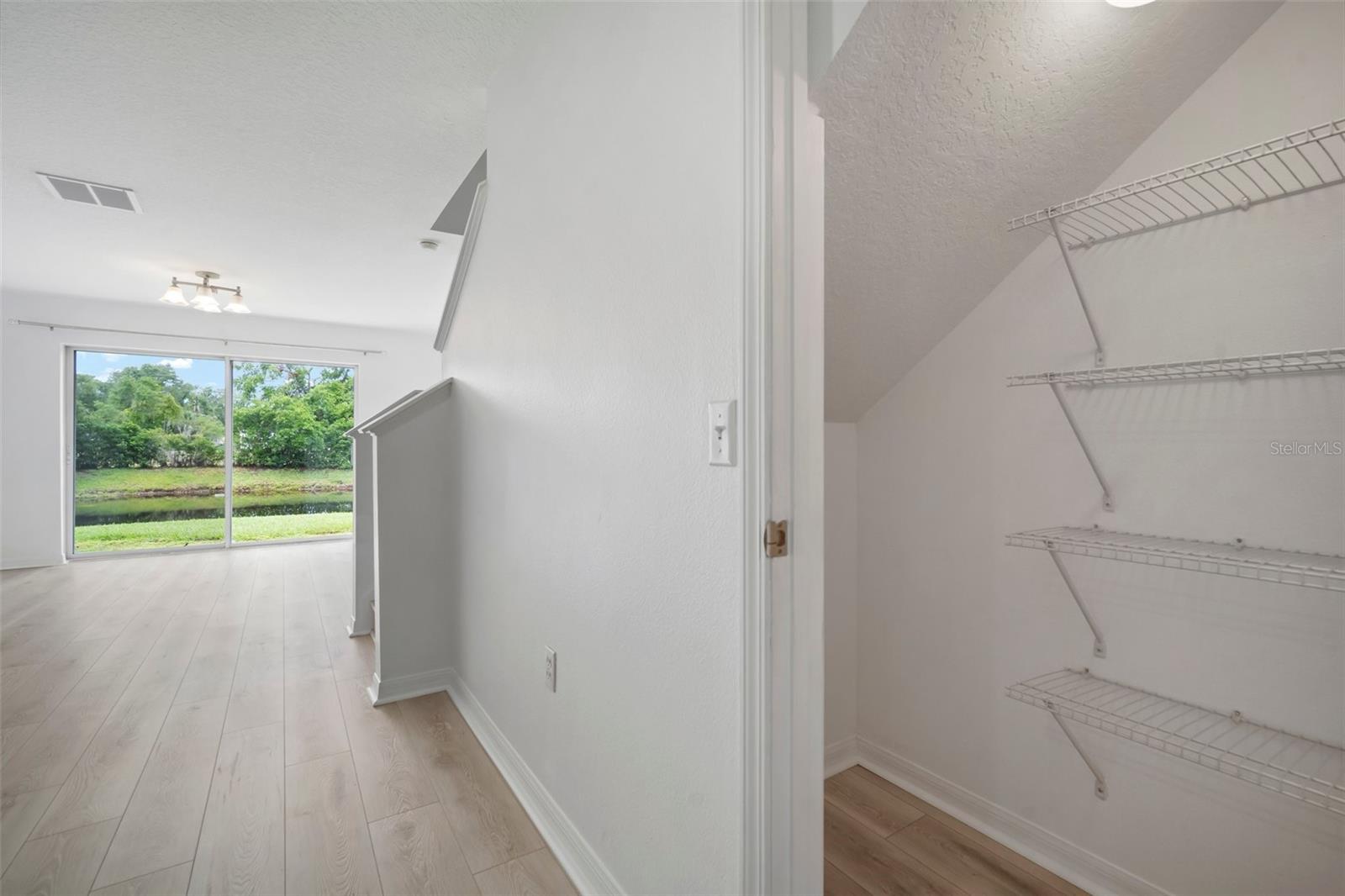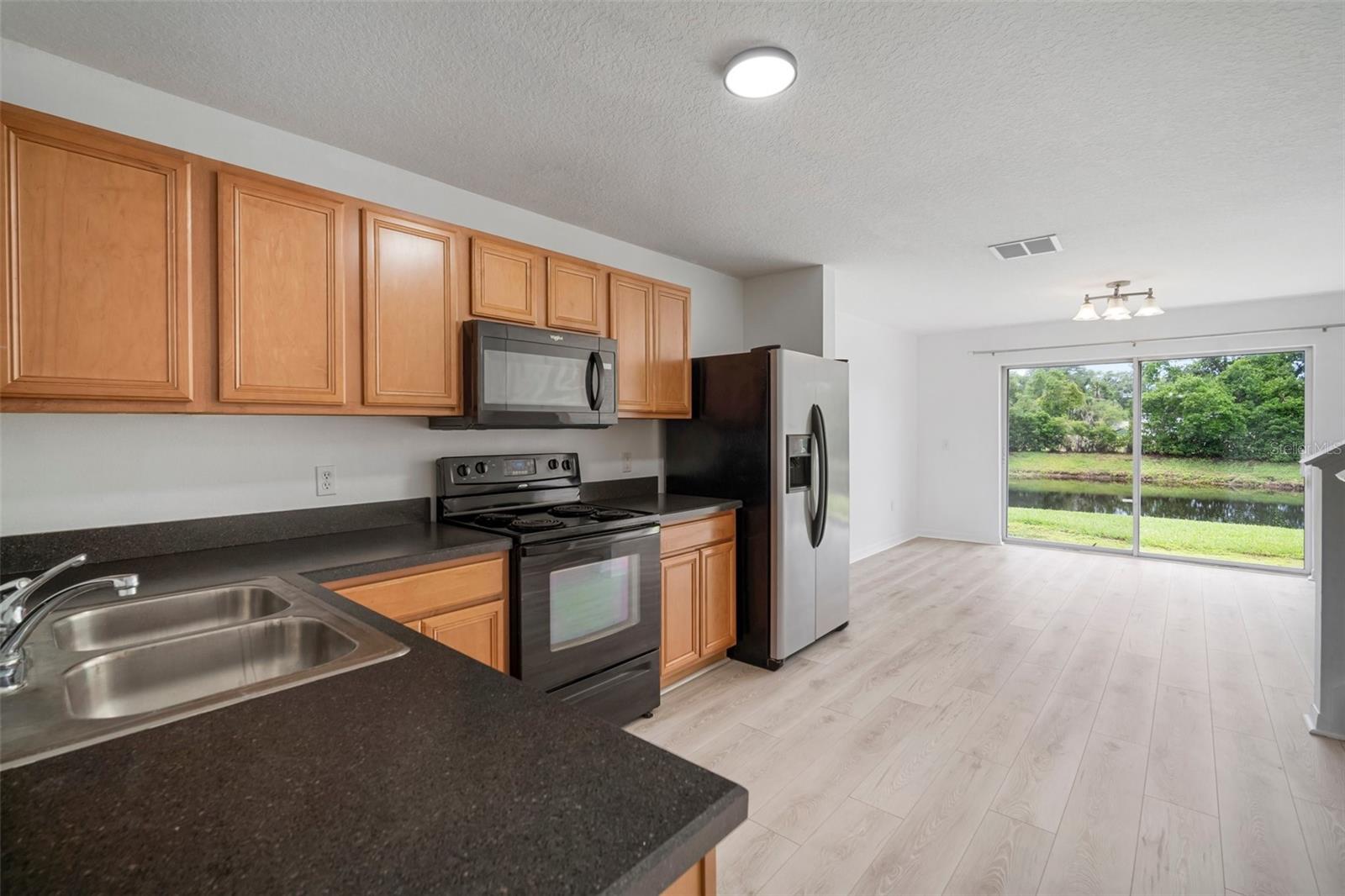 One or more photo(s) has been virtually staged. Welcome to effortless living in this freshly painted 2-bedroom, 2.5-bath townhome nestled in the serene St. Charles Place community of Riverview. Enjoy tranquil pond views from your backyard patio, perfect for morning coffee or evening relaxation. Inside, the open-concept layout features luxury vinyl plank flooring throughout, creating a cohesive and modern aesthetic. The spacious living and family rooms provide ample space for entertaining, while the kitchen offers generous cabinet storage and a convenient pantry. Upstairs, two private en-suite bedrooms boast ample closet space, and the laundry room adds everyday convenience. Community amenities include a sparkling pool, sidewalks, and beautifully maintained green spaces. Monthly HOA fees cover exterior maintenance, lawn care, water, sewer, trash, and access to community amenities—all with no CDD fees. Located just minutes from I-75, MacDill AFB, downtown Tampa, the VA clinic, and close to shopping and dining, this home is ideal for first-time buyers, downsizers, or investors seeking low-maintenance living in a prime location.