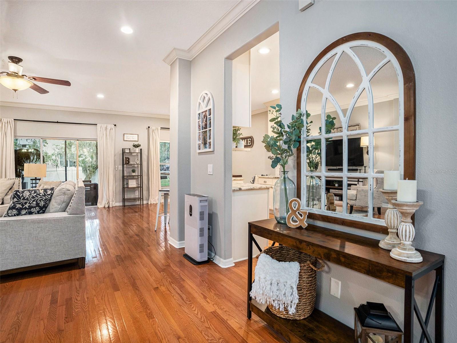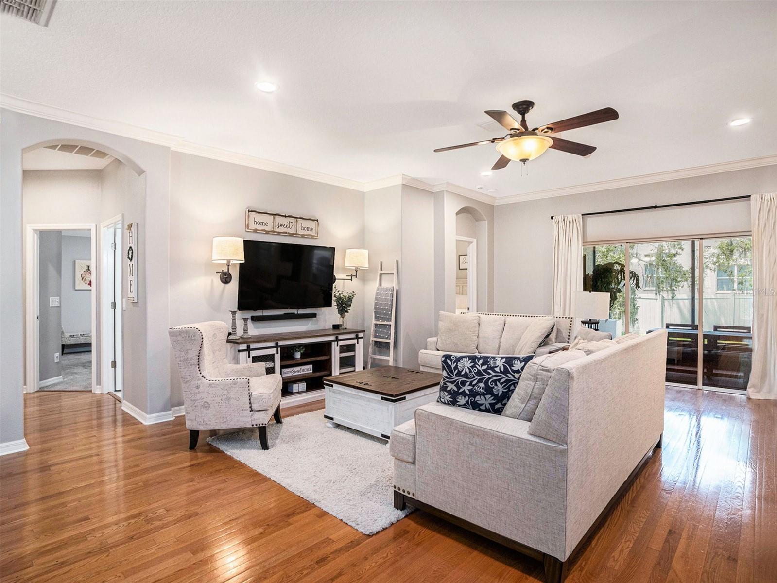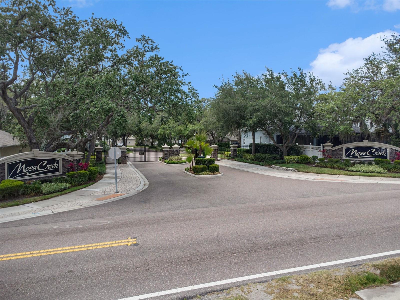 Welcome to Moss Creek – Where Elegance Meets Peace of Mind. Nestled in the heart of Riverview, this gated community offers the ideal balance of location, privacy, and charm. This beautifully maintained 3-bedroom, 2-bathroom home with a den/office offers space, style, and comfort for today’s lifestyle. The open layout flows effortlessly, perfect for both quiet nights at home and effortless entertaining. The kitchen is a true showpiece — granite countertops, stainless steel appliances, and a reverse osmosis filtration system make it a dream for anyone who loves to cook or host. Fall in love with the warm hardwood floors, soaring ceilings, crown molding, tinted windows and doors, and a relaxing screened-in patio with solar-powered retractable shades — your private oasis for enjoying Florida’s beautiful weather. The master suite offers calm and comfort, with a spacious walk-in closet and luxurious ensuite bath. Sitting on a desirable corner lot with a 3-car garage, low HOA, and no CDD — this home checks all the boxes. Minutes from top-rated schools, shopping, dining, and with easy access to Crosstown and I-75. Homes in Moss Creek sell fast — don’t miss this one! Schedule your private showing today and take the first step toward the life you’ve been dreaming of.
