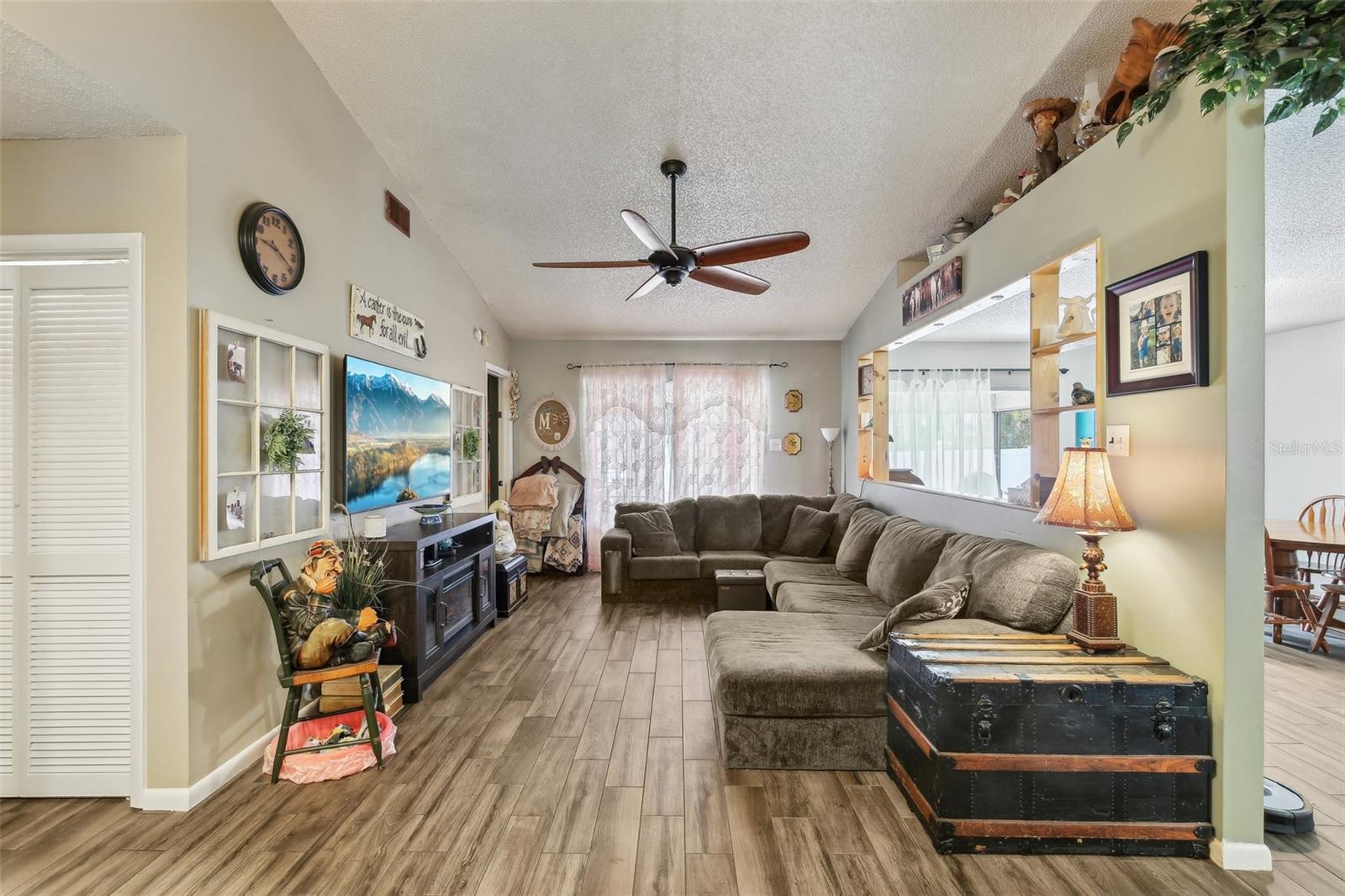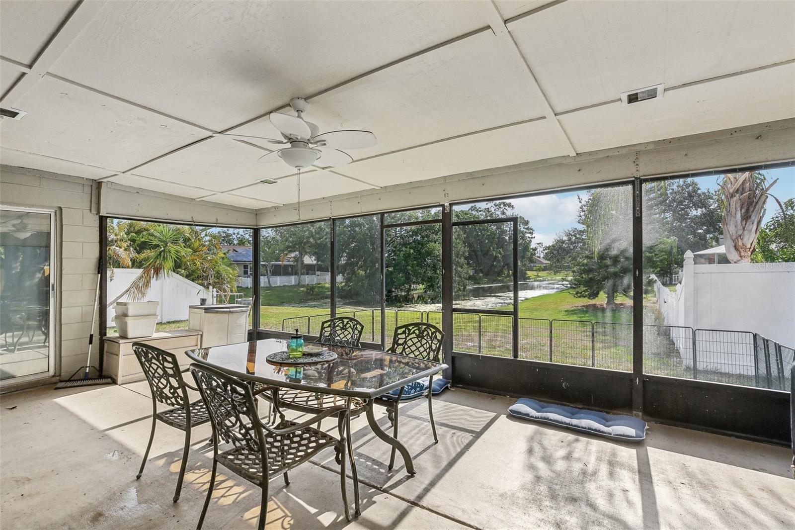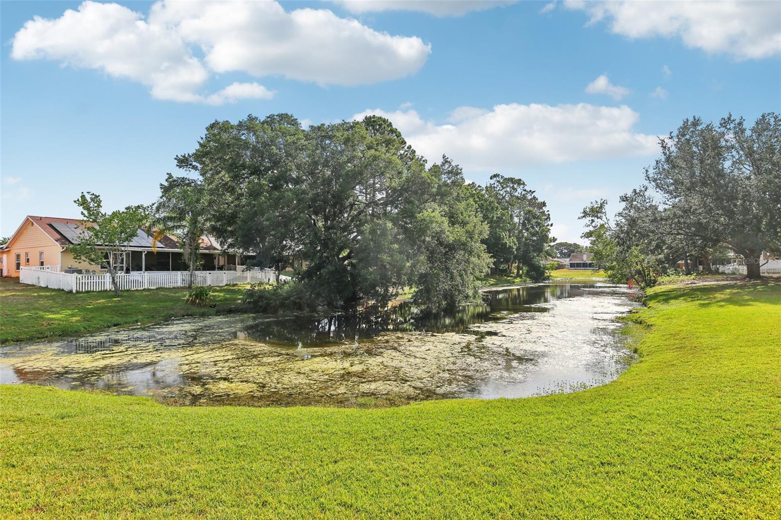 This 3-bedroom, 2-bathroom home with a 2-car garage and a dedicated office/studio space offers approximately 1,600 sq ft of interior living space, plus expansive outdoor areas perfect for relaxing or entertaining. If you know any nature-loving buyers seeking a family-friendly community with a bit of privacy, this home is a perfect fit. Designed for both comfort and functionality, it features a built-in bar overlooking a spacious living room and large open-concept living spaces inside and out. The backyard is a true retreat, overlooking a serene pond that’s home to fish, turtles, herons, spoonbills, otters, and more. The property also includes a lush, Florida-native pollinator garden that attracts butterflies, bees, and songbirds, including cardinals and blue jays. This one-owner home has been well cared for and is surrounded by wonderful neighbors on a quiet loop with no through traffic—ideal for bike rides, walks, and a peaceful lifestyle. No CDD. Low HOA. Community amenities include pools, playgrounds, dog parks, tennis and basketball courts, baseball and soccer fields, and a splash pad coming soon. Located within one mile of public and charter schools, daycares, medical facilities, and with quick access to I-75. Plenty of nearby restaurants and grocery stores for added convenience.