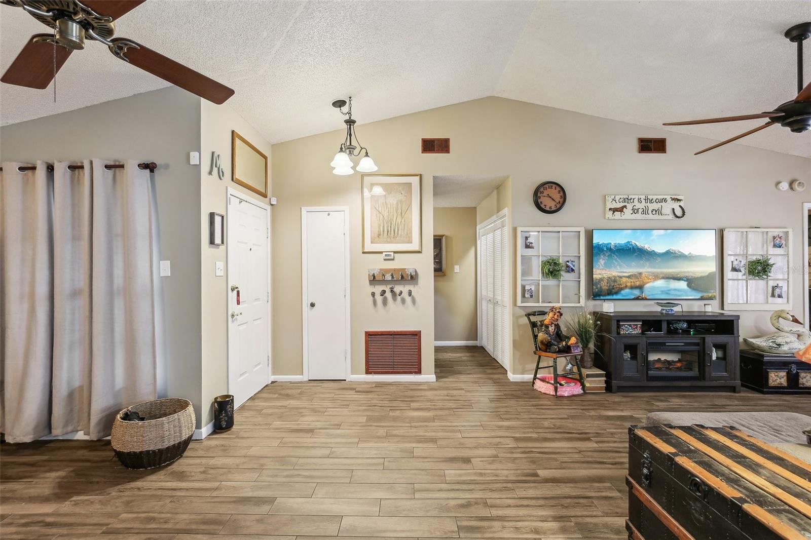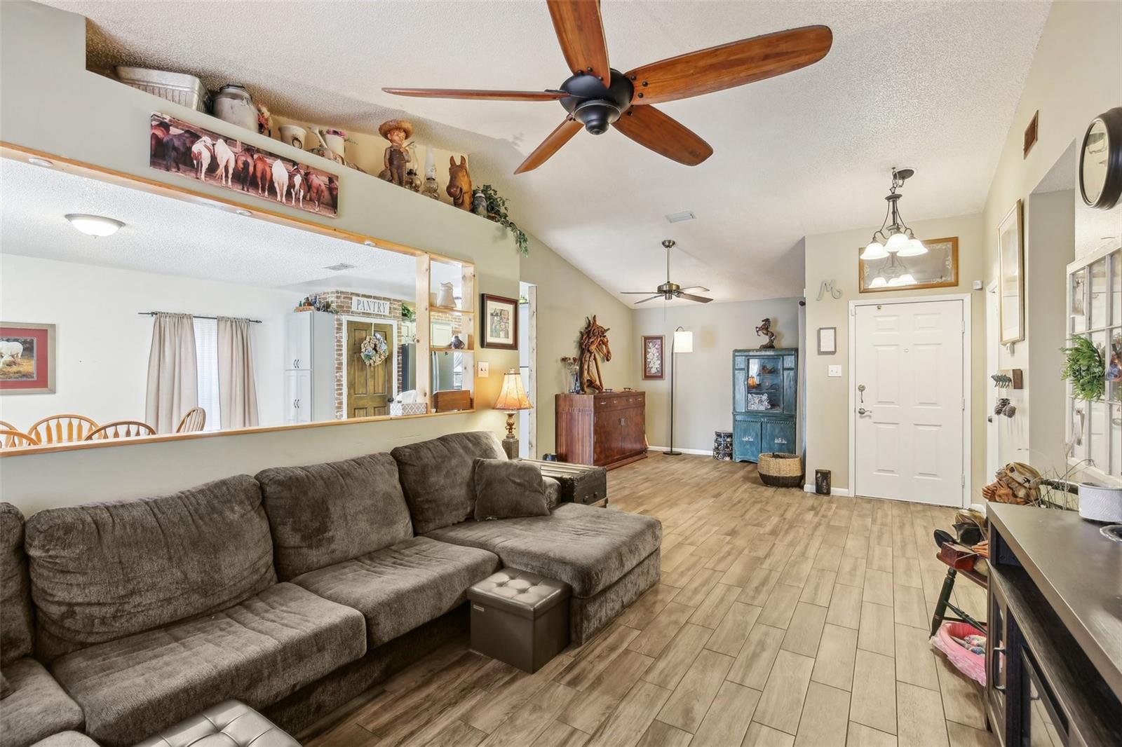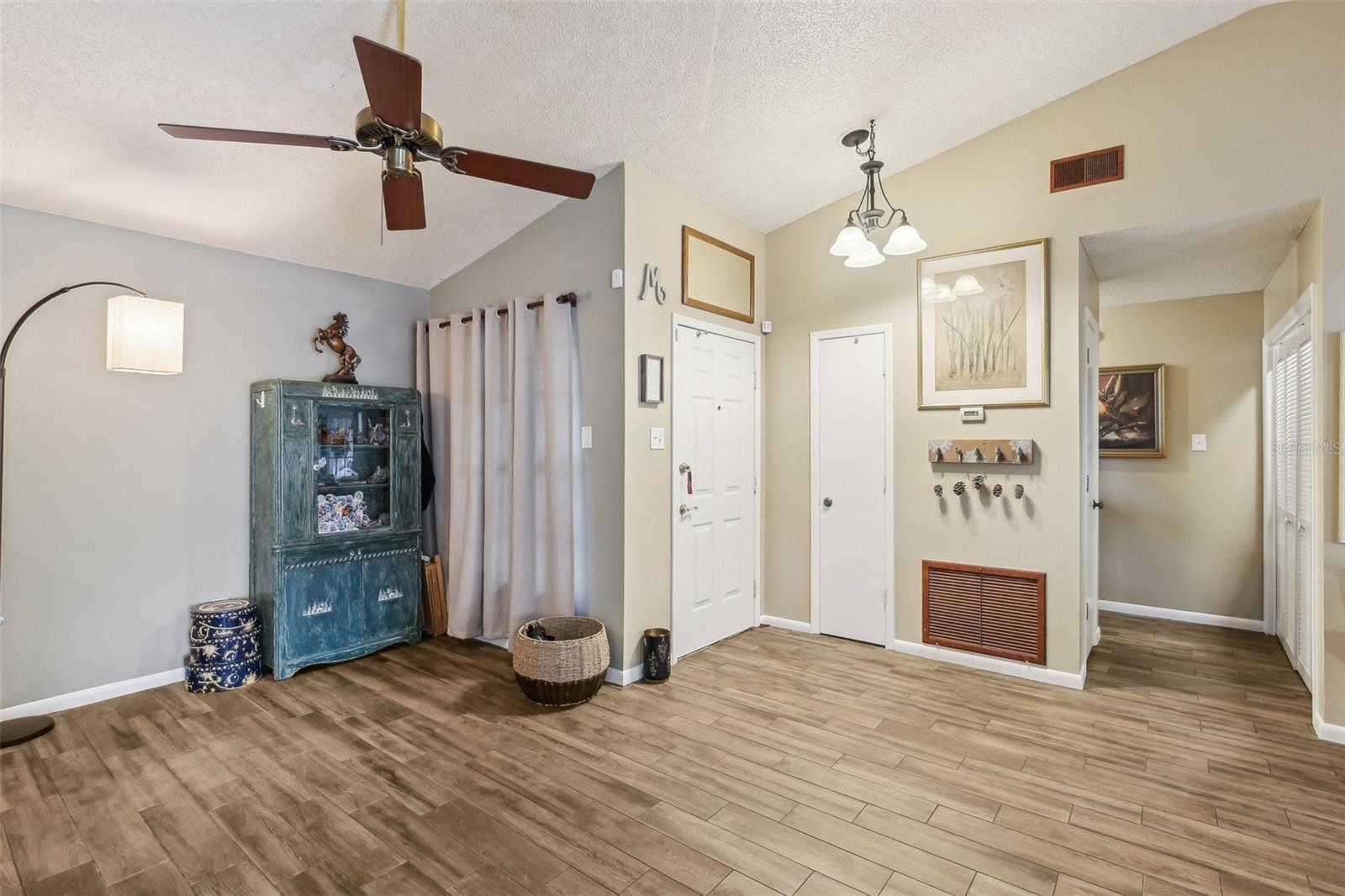 This 3-bedroom, 2-bathroom home with a 2-car garage and a dedicated office/studio space offers approximately 1,600 sq ft of interior living space, plus expansive outdoor areas perfect for relaxing or entertaining. If you know any nature-loving buyers seeking a family-friendly community with a bit of privacy, this home is a perfect fit. Designed for both comfort and functionality, it features a built-in bar overlooking a spacious living room and large open-concept living spaces inside and out. The backyard is a true retreat, overlooking a serene pond that’s home to fish, turtles, herons, spoonbills, otters, and more. The property also includes a lush, Florida-native pollinator garden that attracts butterflies, bees, and songbirds, including cardinals and blue jays. This one-owner home has been well cared for and is surrounded by wonderful neighbors on a quiet loop with no through traffic—ideal for bike rides, walks, and a peaceful lifestyle. No CDD. Low HOA. Community amenities include pools, playgrounds, dog parks, tennis and basketball courts, baseball and soccer fields, and a splash pad coming soon. Located within one mile of public and charter schools, daycares, medical facilities, and with quick access to I-75. Plenty of nearby restaurants and grocery stores for added convenience.