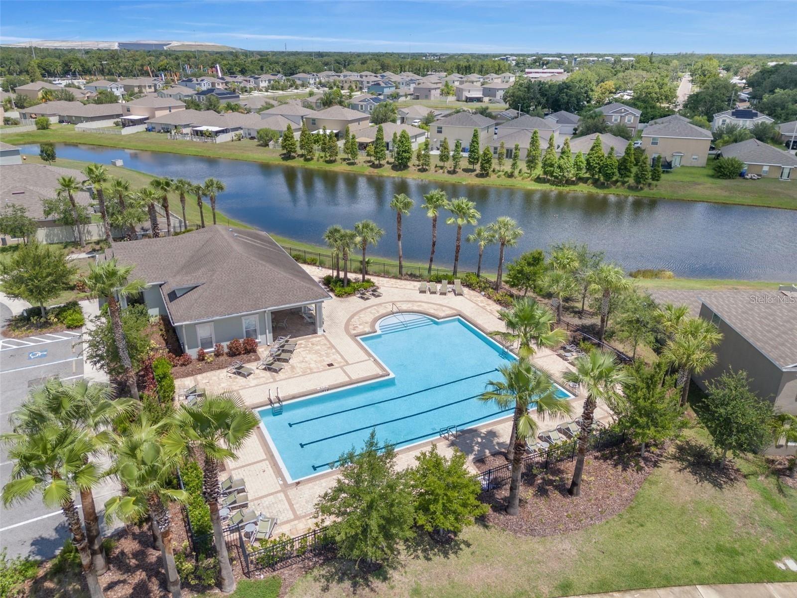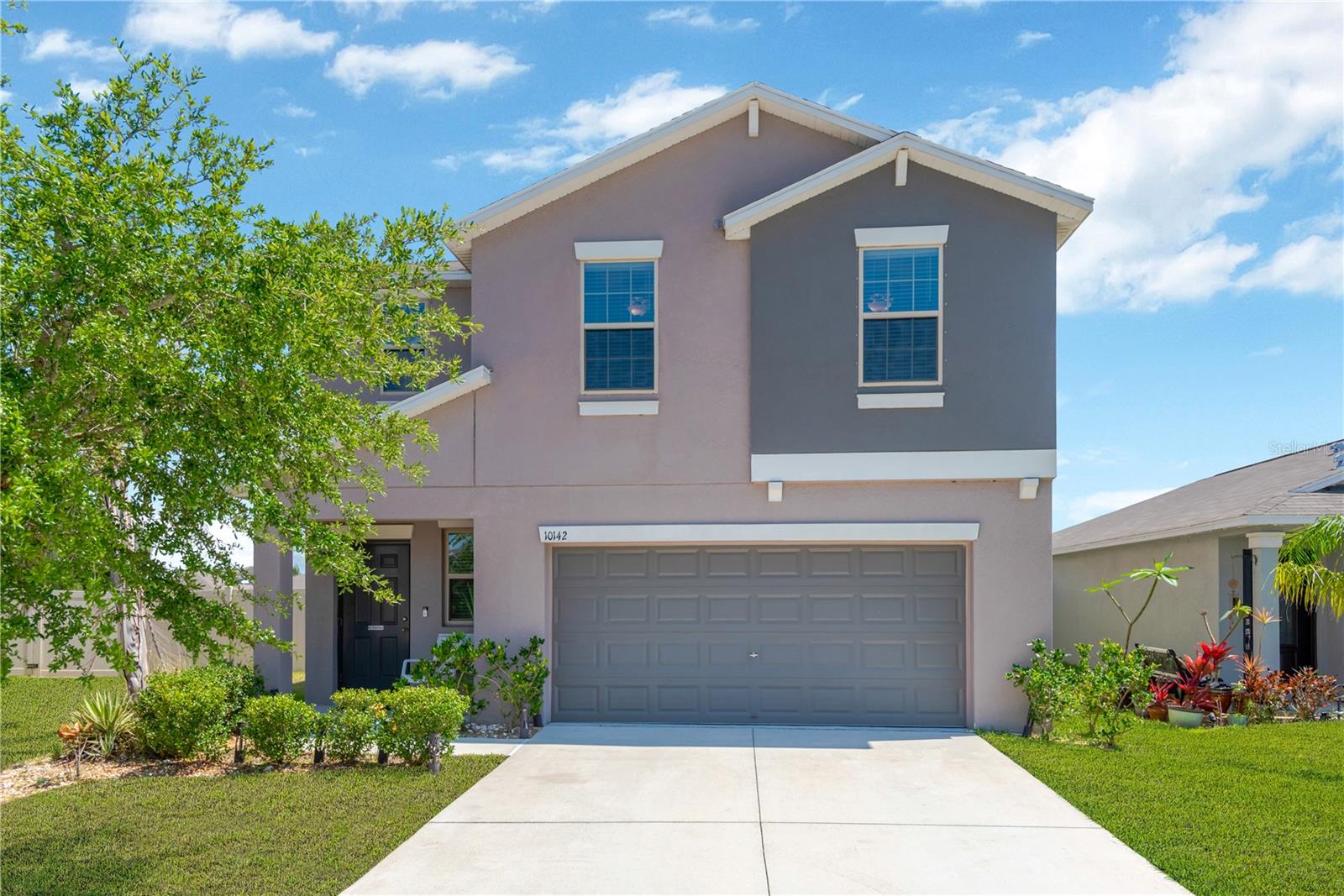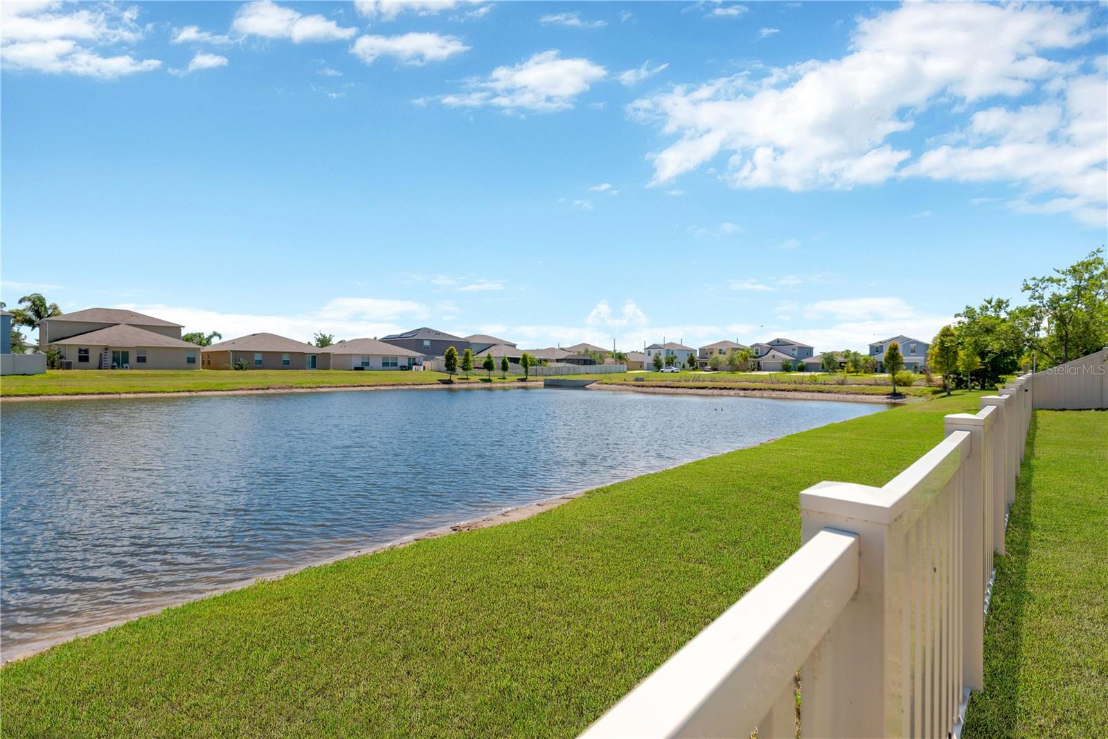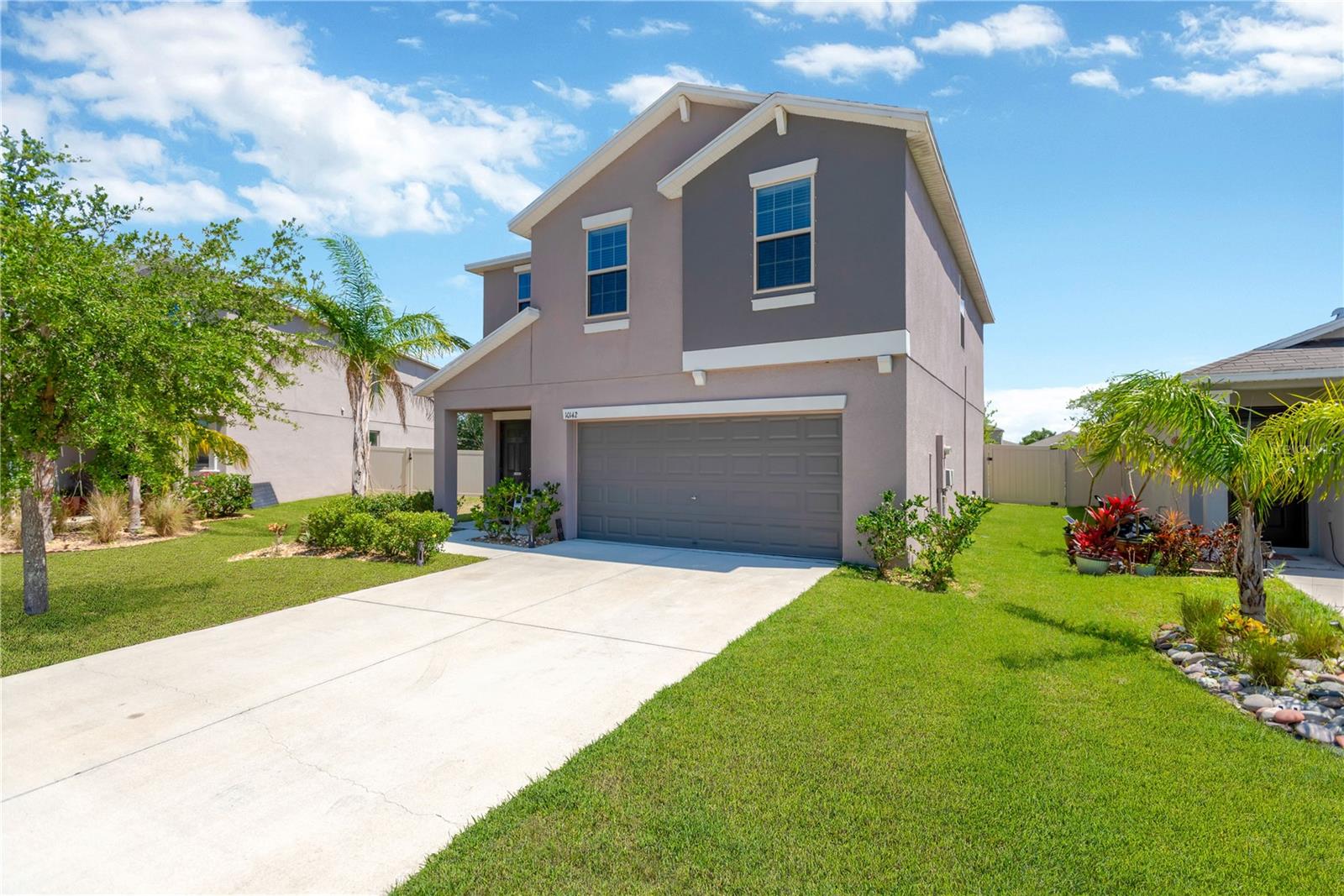 Welcome home! The popular Atlanta floorplan built by Lennar is a dream 2-story home located in The Summit at Fern Hill neighborhood. When you enter the home look up and notice the soaring ceilings! Perfectly placed windows and a wide hallway give the home a bright cheerful entrance. The flooring on the entire first floor is 18x18 tile, easy to maintain and durable for years to come. You will love the open floorplan, where the kitchen, dining and family room blend seamlessly. The cook in the family is sure to enjoy the kitchen with ample counter space (including a large center island), plenty of cabinets and a corner pantry for storage. The kitchen includes all appliances and features 36” staggered Andover Nutmeg raised panel square cabinets with laminate countertops. Enjoy a casual breakfast at the kitchen island on a barstool or take your meal in the more formal dining room. You’ll have a great view of the pond through your sliding glass doors no matter where you sit. The spacious backyard is fully fenced and features a stunning water view. Bring the kiddos and pups and let them play freely while you soak up the sun. A perfect size half bath is located on the first floor for convenience. Upstairs you will find the master suite, three additional bedrooms and a loft. The bonus loft space in the center of it all is perfect as a work from home office, kiddo play area or cozy reading nook. A convenient second-floor laundry room will save you from lugging endless loads up and down the stairs. Full size washer & dryer included. Both the master and secondary baths have Andover Nutmeg cabinets with laminate countertops. The master ensuite features dual sinks and large walk-in closet. All bedrooms and common areas upstairs have ceiling fans with lights, blinds and carpet flooring. Additional features that enhance the home’s appeal include a water softener, 600lb capacity storage racks and epoxy flooring in the garage. All appliances and big ticket items including HVAC and roof are only 6 years old. The Fern Hill neighborhood has a low HOA and offers a resort-style pool, clubhouse, playground, and dog park. In addition, this home weathered last year’s hurricanes like a champ – no flood zone here! The home is conveniently located near shopping, dining, major highways I75 & 301, and close access to both Tampa and Sarasota. Welcome home!