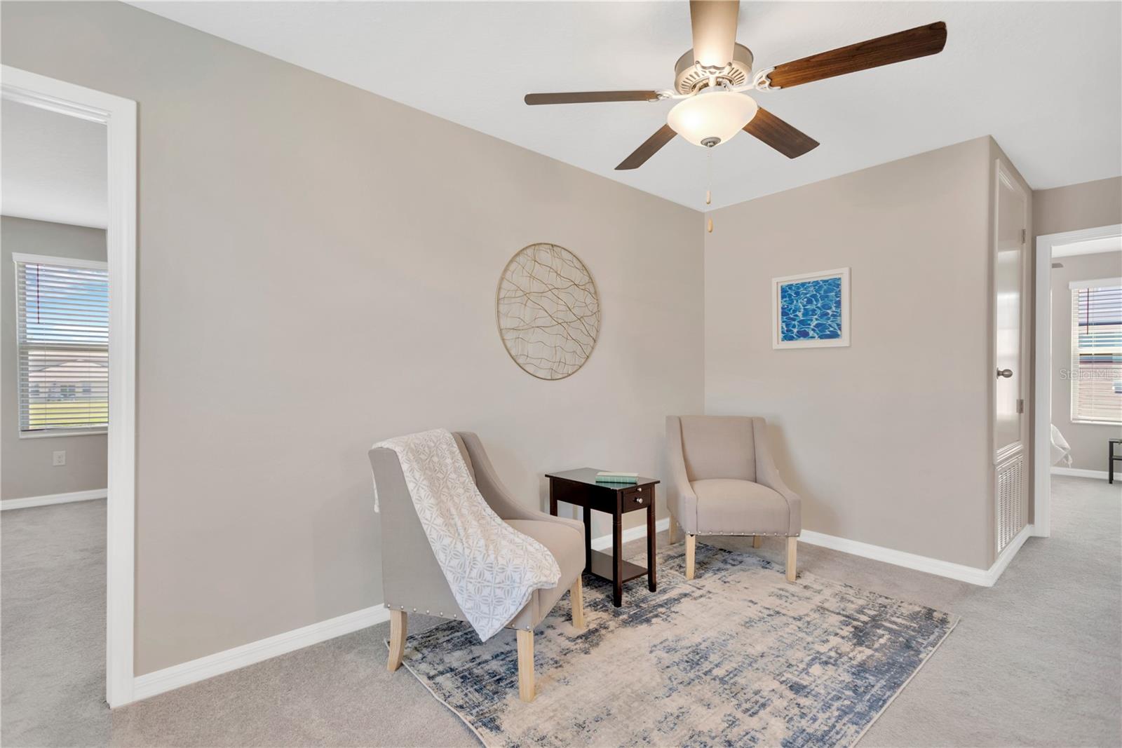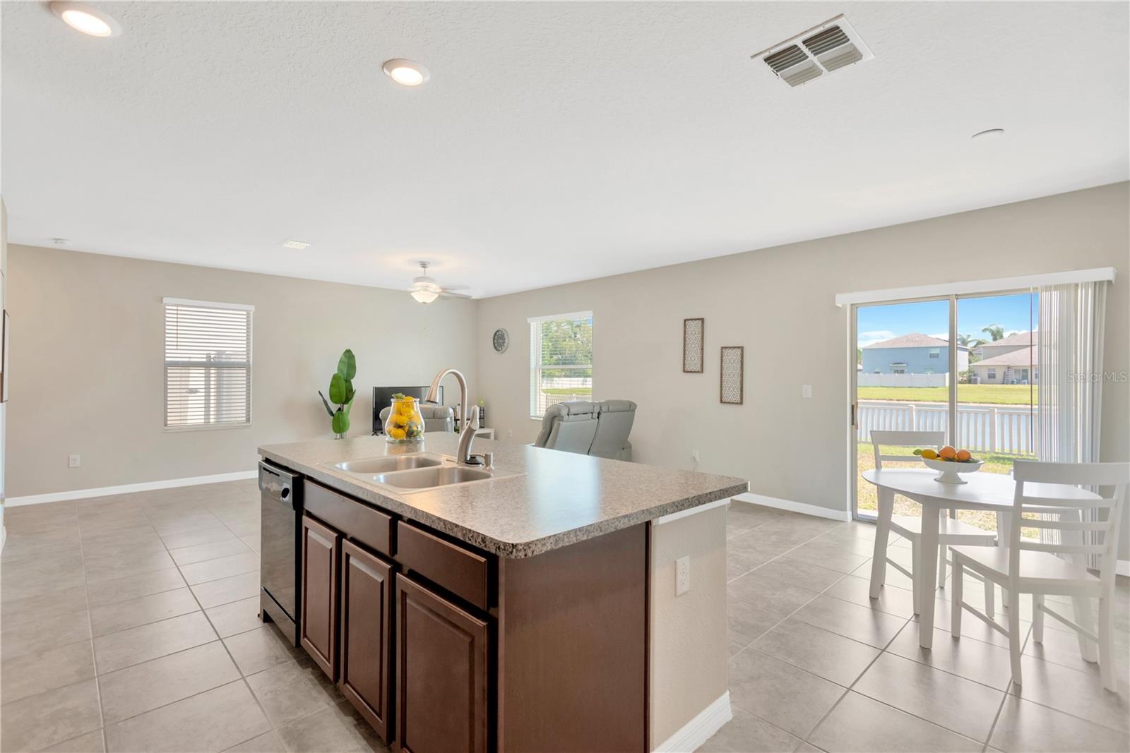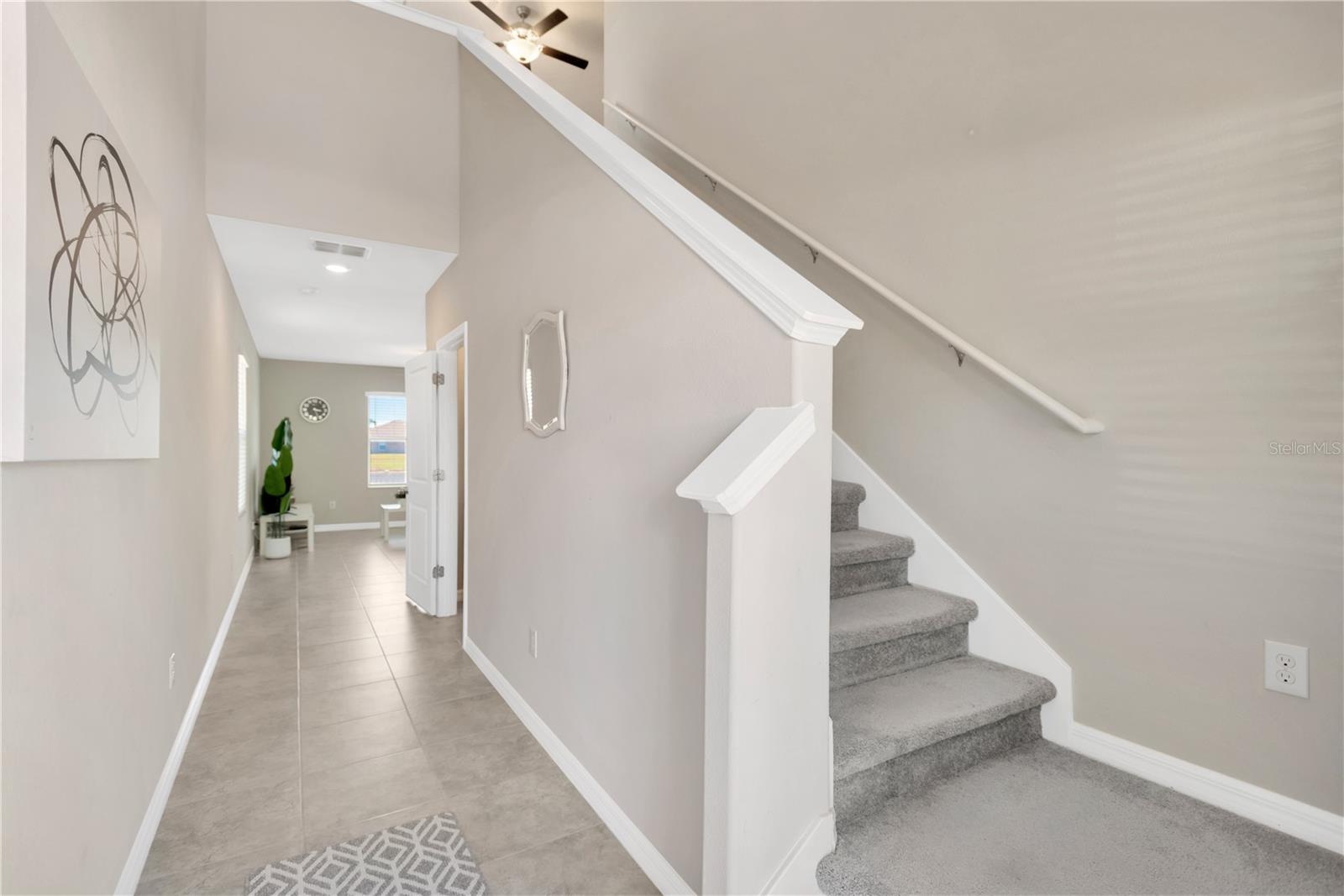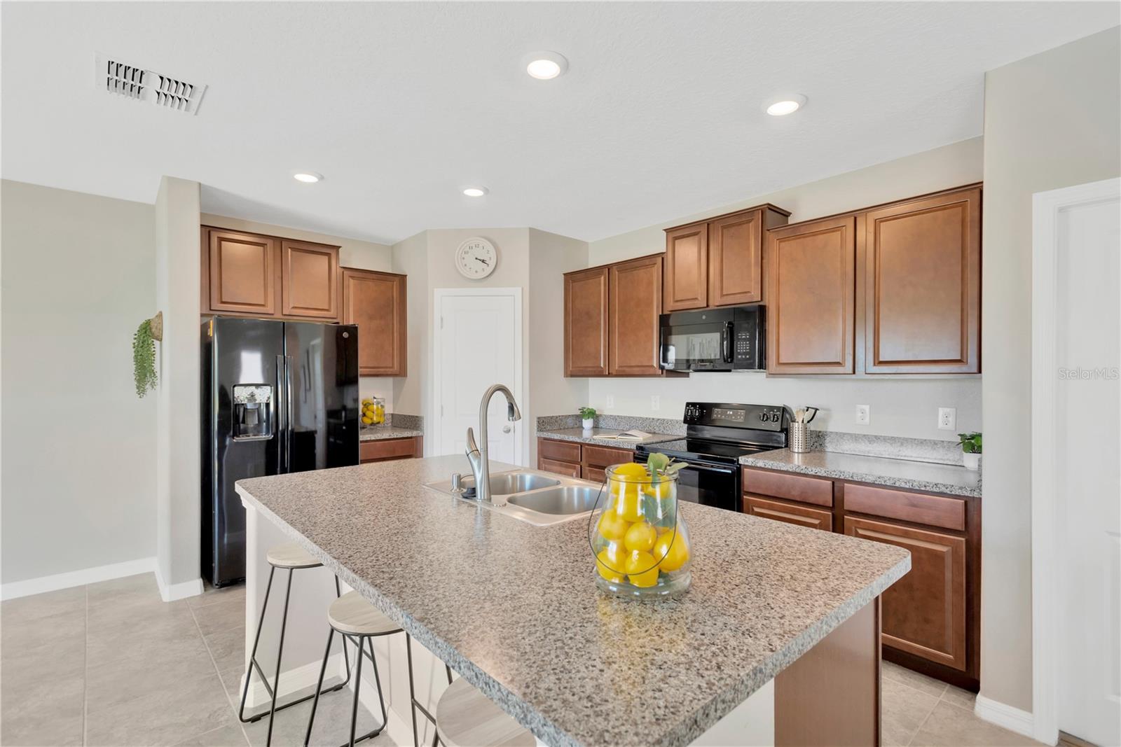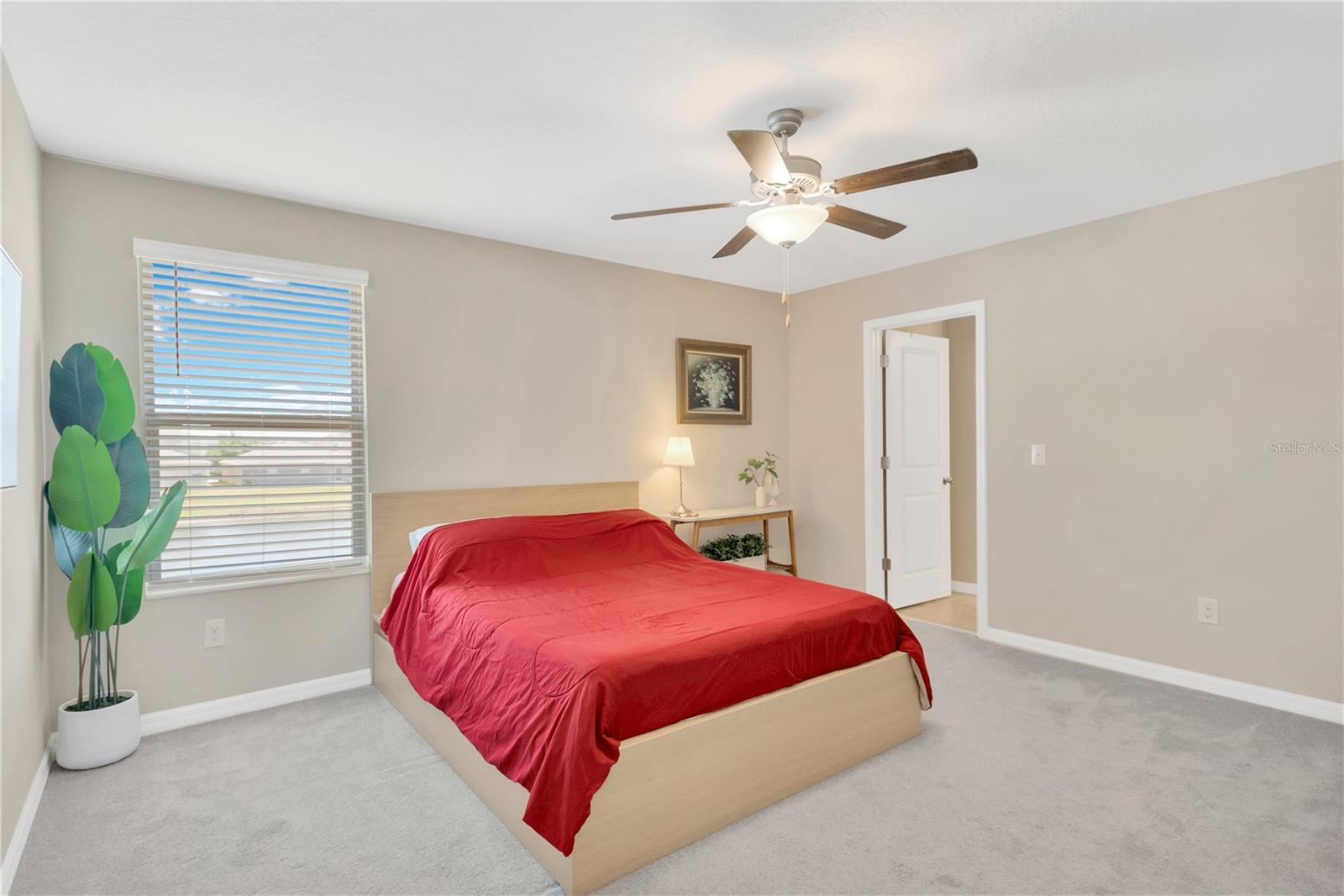 Welcome home! The popular Atlanta floorplan built by Lennar is a dream 2-story home located in The Summit at Fern Hill neighborhood. When you enter the home look up and notice the soaring ceilings! Perfectly placed windows and a wide hallway give the home a bright cheerful entrance. The flooring on the entire first floor is 18x18 tile, easy to maintain and durable for years to come. You will love the open floorplan, where the kitchen, dining and family room blend seamlessly. The cook in the family is sure to enjoy the kitchen with ample counter space (including a large center island), plenty of cabinets and a corner pantry for storage. The kitchen includes all appliances and features 36” staggered Andover Nutmeg raised panel square cabinets with laminate countertops. Enjoy a casual breakfast at the kitchen island on a barstool or take your meal in the more formal dining room. You’ll have a great view of the pond through your sliding glass doors no matter where you sit. The spacious backyard is fully fenced and features a stunning water view. Bring the kiddos and pups and let them play freely while you soak up the sun. A perfect size half bath is located on the first floor for convenience. Upstairs you will find the master suite, three additional bedrooms and a loft. The bonus loft space in the center of it all is perfect as a work from home office, kiddo play area or cozy reading nook. A convenient second-floor laundry room will save you from lugging endless loads up and down the stairs. Full size washer & dryer included. Both the master and secondary baths have Andover Nutmeg cabinets with laminate countertops. The master ensuite features dual sinks and large walk-in closet. All bedrooms and common areas upstairs have ceiling fans with lights, blinds and carpet flooring. Additional features that enhance the home’s appeal include a water softener, 600lb capacity storage racks and epoxy flooring in the garage. All appliances and big ticket items including HVAC and roof are only 6 years old. The Fern Hill neighborhood has a low HOA and offers a resort-style pool, clubhouse, playground, and dog park. In addition, this home weathered last year’s hurricanes like a champ – no flood zone here! The home is conveniently located near shopping, dining, major highways I75 & 301, and close access to both Tampa and Sarasota. Welcome home!