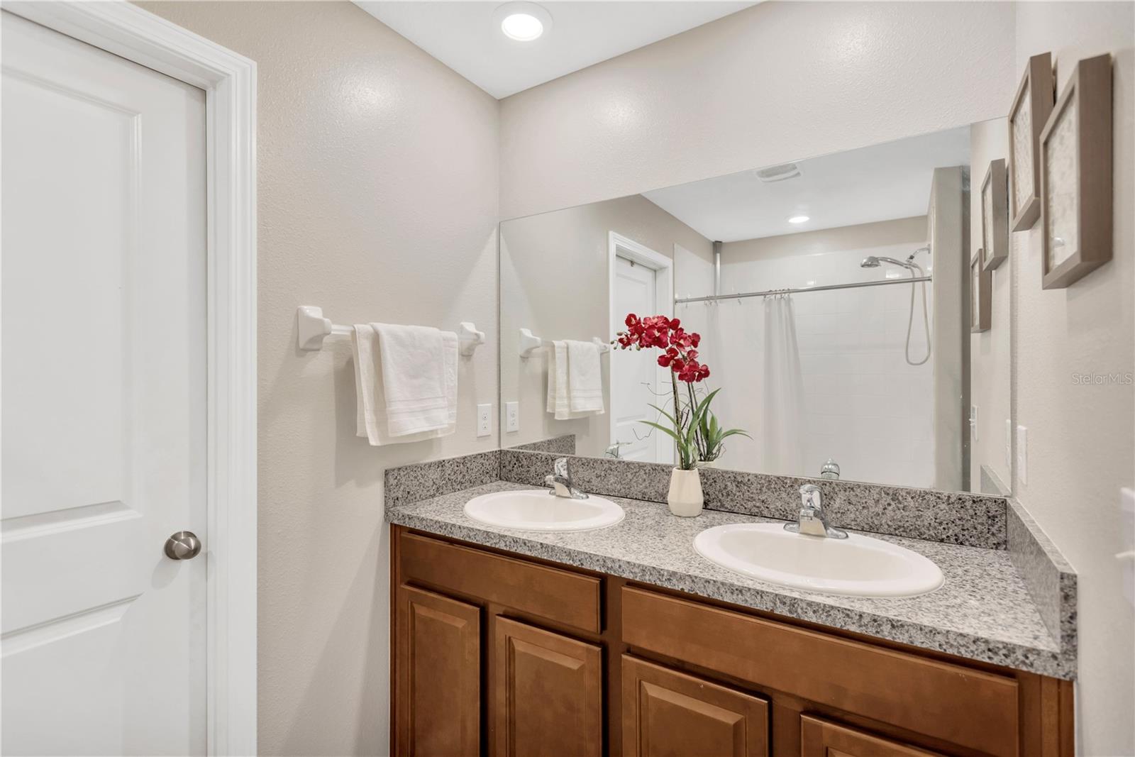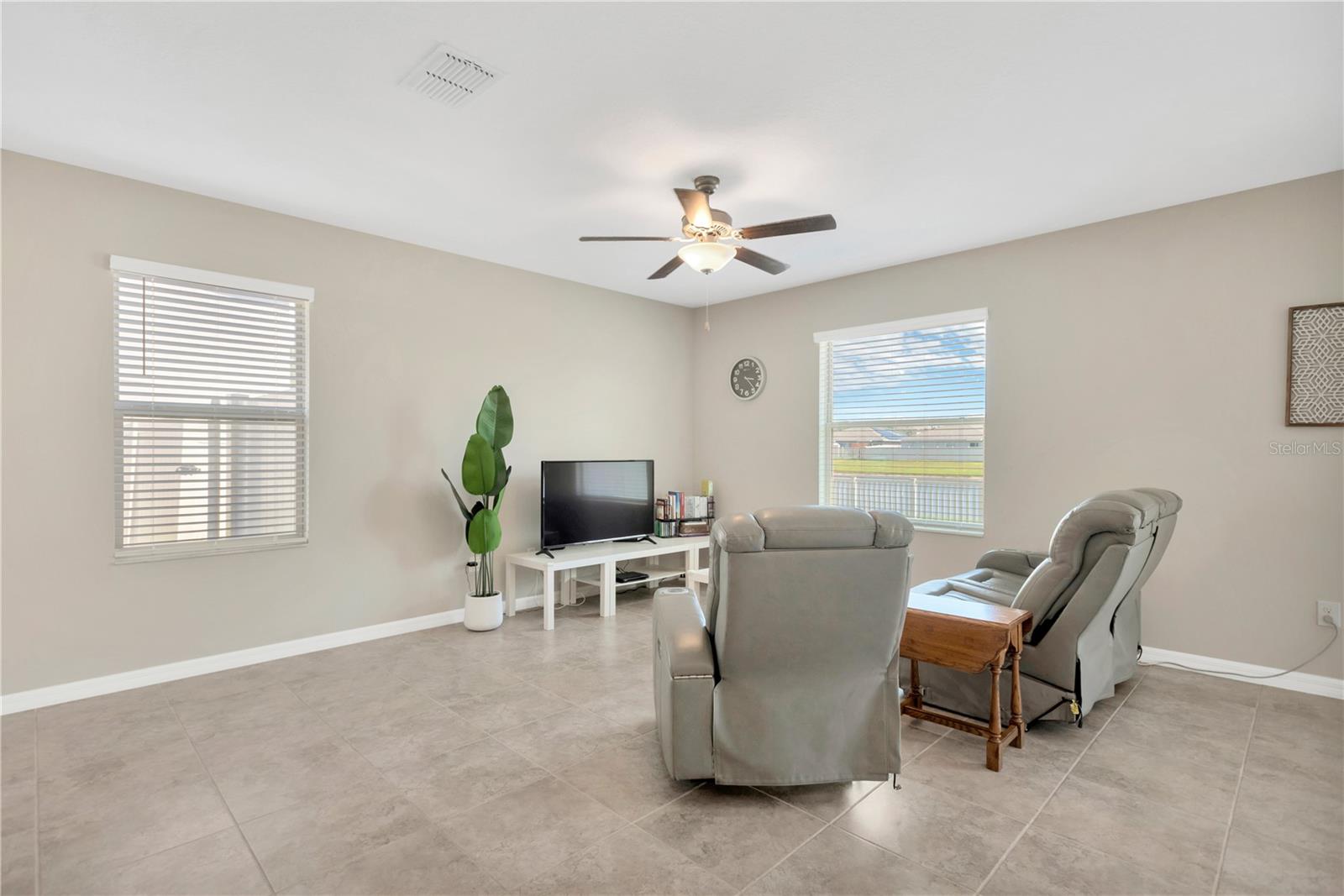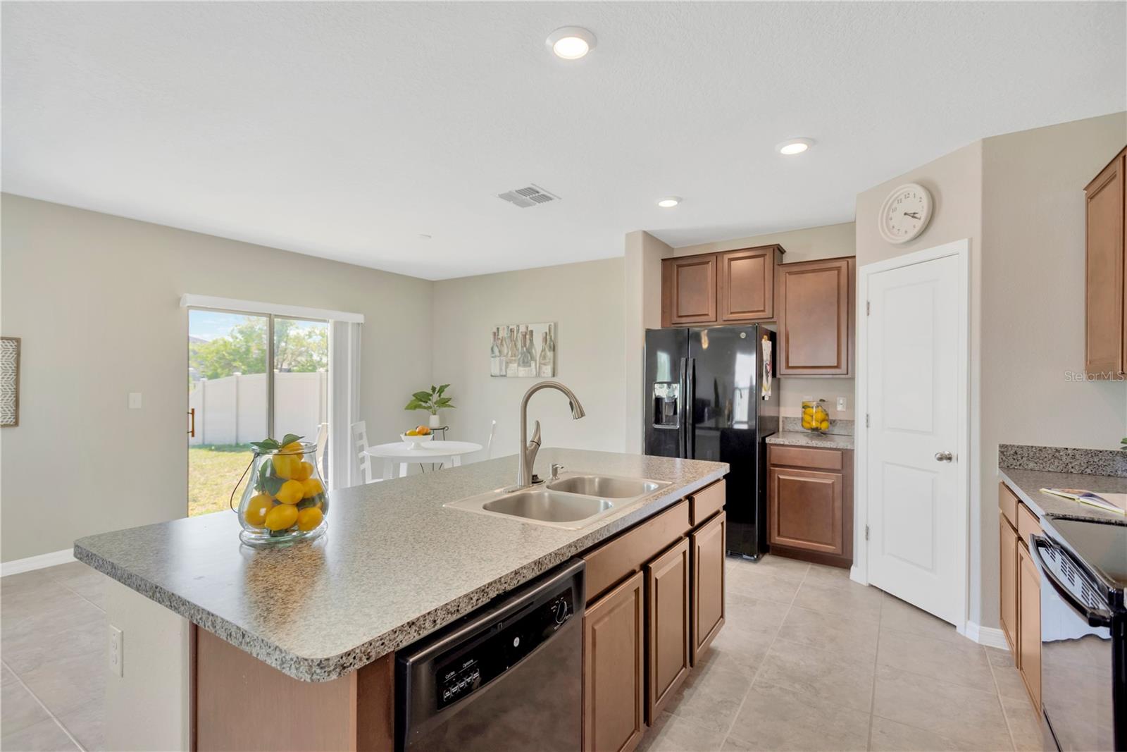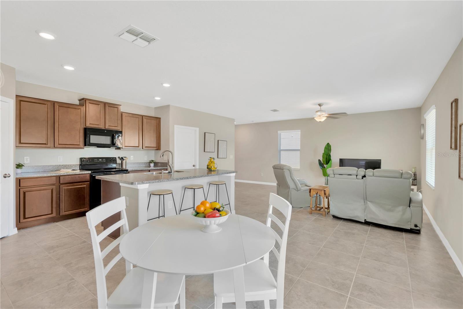 Welcome home! The popular Atlanta floorplan built by Lennar is a dream 2-story home located in The Summit at Fern Hill neighborhood. When you enter the home look up and notice the soaring ceilings! Perfectly placed windows and a wide hallway give the home a bright cheerful entrance. The flooring on the entire first floor is 18x18 tile, easy to maintain and durable for years to come. You will love the open floorplan, where the kitchen, dining and family room blend seamlessly. The cook in the family is sure to enjoy the kitchen with ample counter space (including a large center island), plenty of cabinets and a corner pantry for storage. The kitchen includes all appliances and features 36” staggered Andover Nutmeg raised panel square cabinets with laminate countertops. Enjoy a casual breakfast at the kitchen island on a barstool or take your meal in the more formal dining room. You’ll have a great view of the pond through your sliding glass doors no matter where you sit. The spacious backyard is fully fenced and features a stunning water view. Bring the kiddos and pups and let them play freely while you soak up the sun. A perfect size half bath is located on the first floor for convenience. Upstairs you will find the master suite, three additional bedrooms and a loft. The bonus loft space in the center of it all is perfect as a work from home office, kiddo play area or cozy reading nook. A convenient second-floor laundry room will save you from lugging endless loads up and down the stairs. Full size washer & dryer included. Both the master and secondary baths have Andover Nutmeg cabinets with laminate countertops. The master ensuite features dual sinks and large walk-in closet. All bedrooms and common areas upstairs have ceiling fans with lights, blinds and carpet flooring. Additional features that enhance the home’s appeal include a water softener, 600lb capacity storage racks and epoxy flooring in the garage. All appliances and big ticket items including HVAC and roof are only 6 years old. The Fern Hill neighborhood has a low HOA and offers a resort-style pool, clubhouse, playground, and dog park. In addition, this home weathered last year’s hurricanes like a champ – no flood zone here! The home is conveniently located near shopping, dining, major highways I75 & 301, and close access to both Tampa and Sarasota. Welcome home!